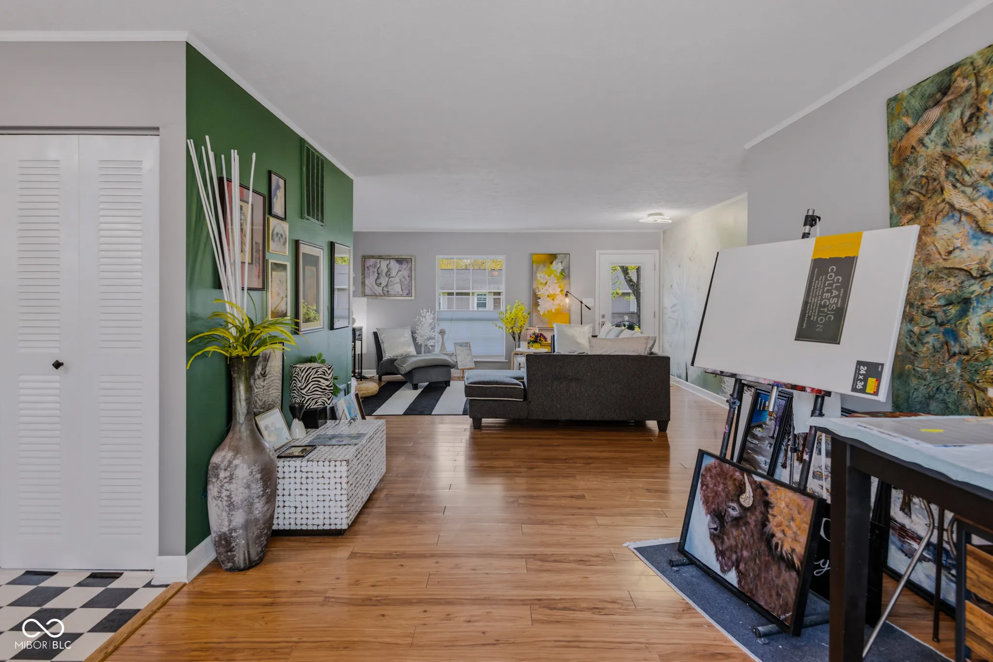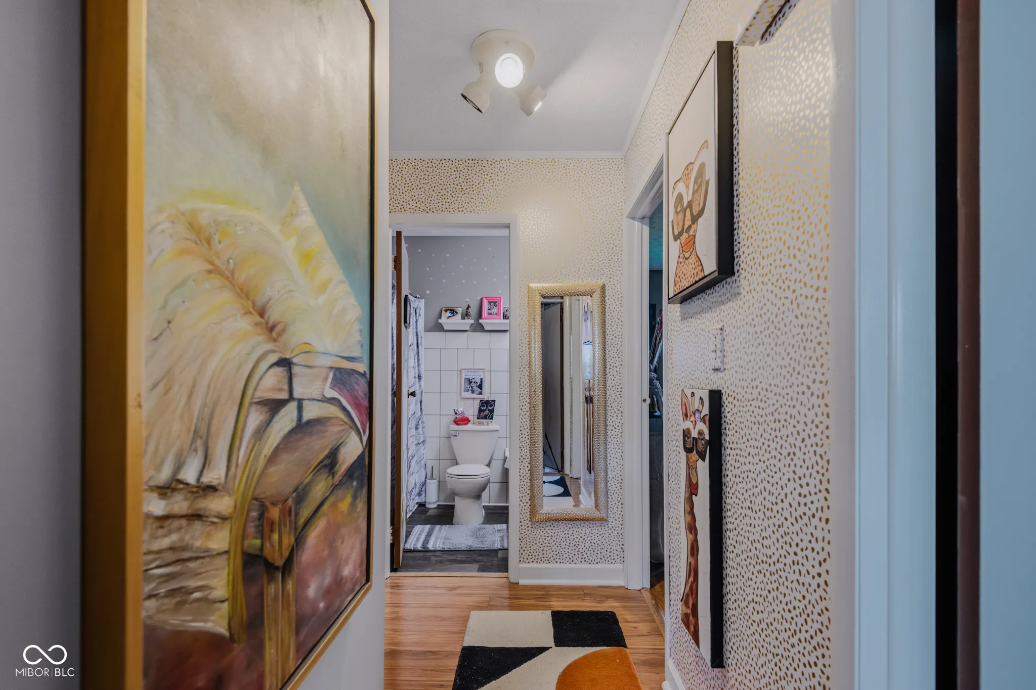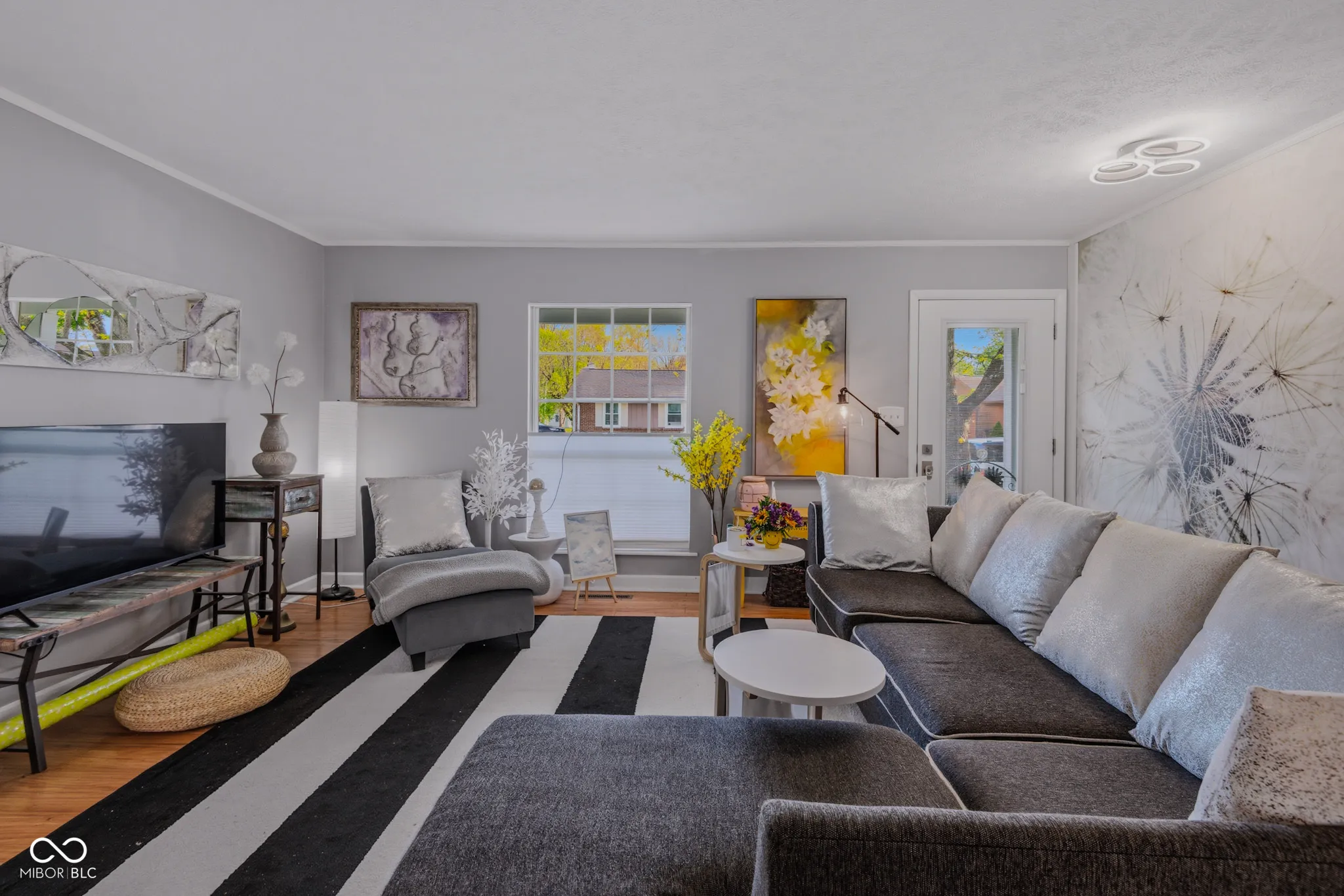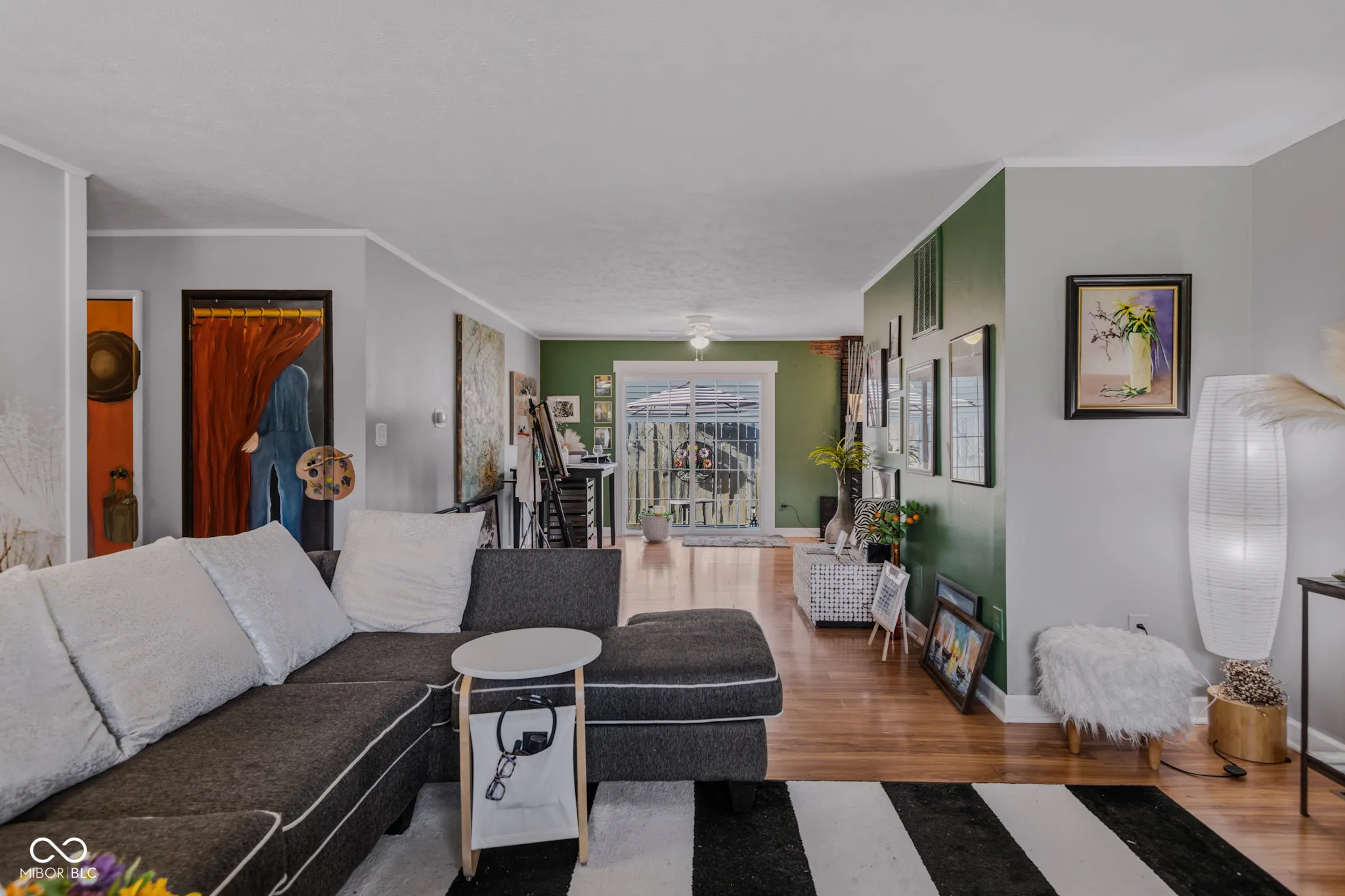 This lovely ranch home is a beautiful piece of art! In addition to the creative and colorful features added by the local artist owner, the open floor plan features big windows and glass doors that fill the space with natural light. 3 bedrooms and 2 full bathrooms. Gas log fireplace with a brick surround. Big, fully-fenced yard. This property has been well-maintained and updated: New roof in 2025! The 6-inch gutters have leaf guards. New LVP flooring in most rooms. Water heater was replaced in 2025. Quiet cul-de-sac location in Hartford Place is walking distance from the big park and playground at McCullough’s Run. Enjoy this quiet neighborhood from the 28-foot covered front porch. Attached garage, pull-down attic ladder, attic storage over the garage, plus a convenient storage shed. In 2024 the owner had the chimney cleaned and replaced the gas log set in the fireplace. Kitchen and laundry appliances remain with the home. You will love the character and modern updates in this home! Possession is available at closing.