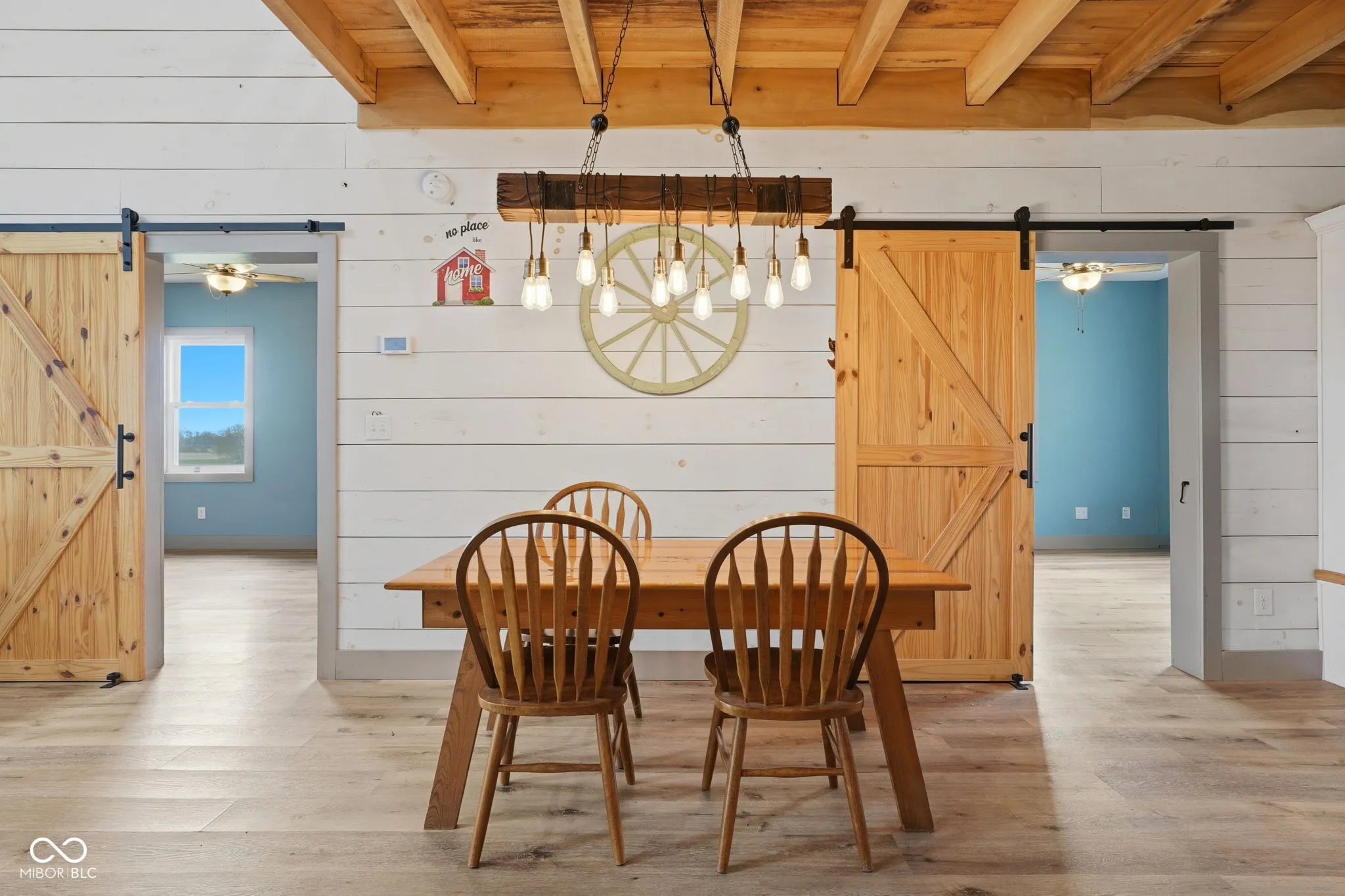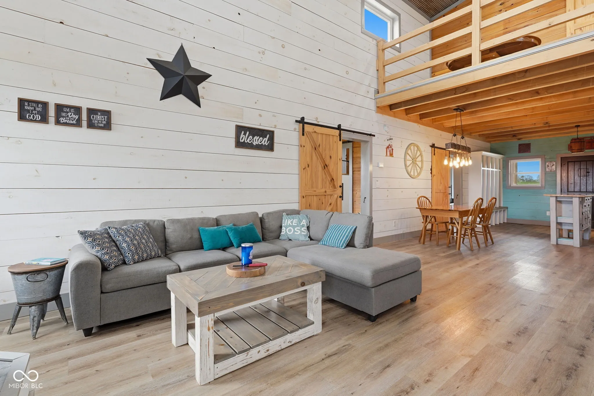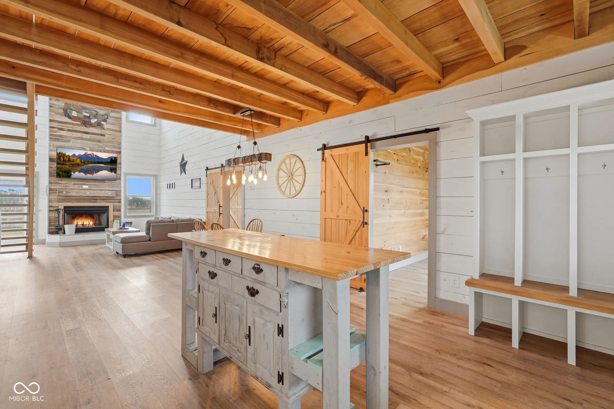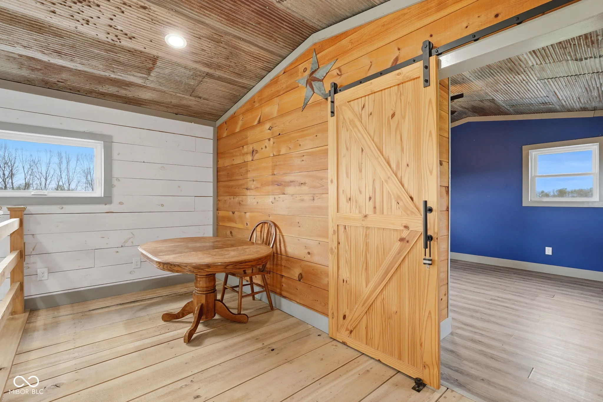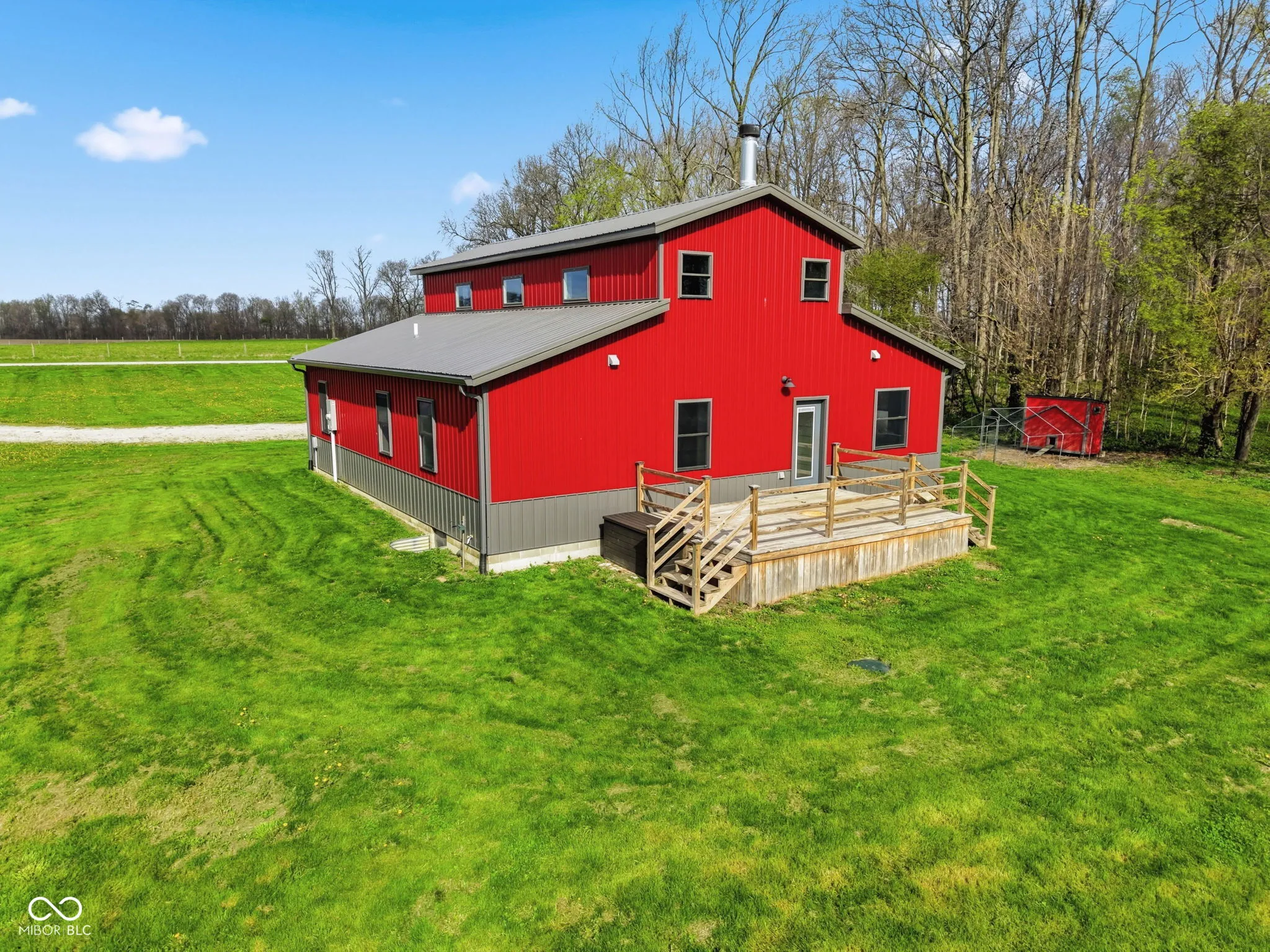 Welcome to your own slice of country living-where modern efficiency meets rustic charm. Built in 2022, this 2,000+ sq ft barndominium sits on 5 beautiful acres just inside Putnam County, offering the perfect blend of privacy, functionality, and style. Step inside to a stunning great room featuring soaring cathedral ceiling, a massive ceiling fan, and a floor-to-ceiling fireplace wrapped in native wood planks-creating a warm, inviting focal point. The open-concept design seamlessly connects the great room, dining area, and kitchen. This 4-bedroom, 2 full bath home also includes a dedicated office space-perfect for remote work or managing your day-to-day. Built with quality in mind, the Amish-crafted stick built 2×6 construction is paired with R-19 insulation, delivering both durability and energy efficiency. The interior showcases whitewashed shiplap from floor to ceiling, perfectly complemented by the home’s distressed metal siding on the ceiling for a true modern farmhouse/barndo aesthetic. Enjoy the best of both worlds outside with 5 acres-approximately 2 wooded and 3 cleared-offering room to roam, explore, or expand. Whether you’re dreaming of a hobby farm, outdoor entertaining space, or simply peace and quiet, this property delivers. Additional features include a tankless propane water heater and a high-efficiency HVAC system with heat pump and propane/electric backup-keeping comfort top of mind year-round. If you’ve been looking for a newer-built home with character, land, and a quiet rural setting-this one checks all the boxes.