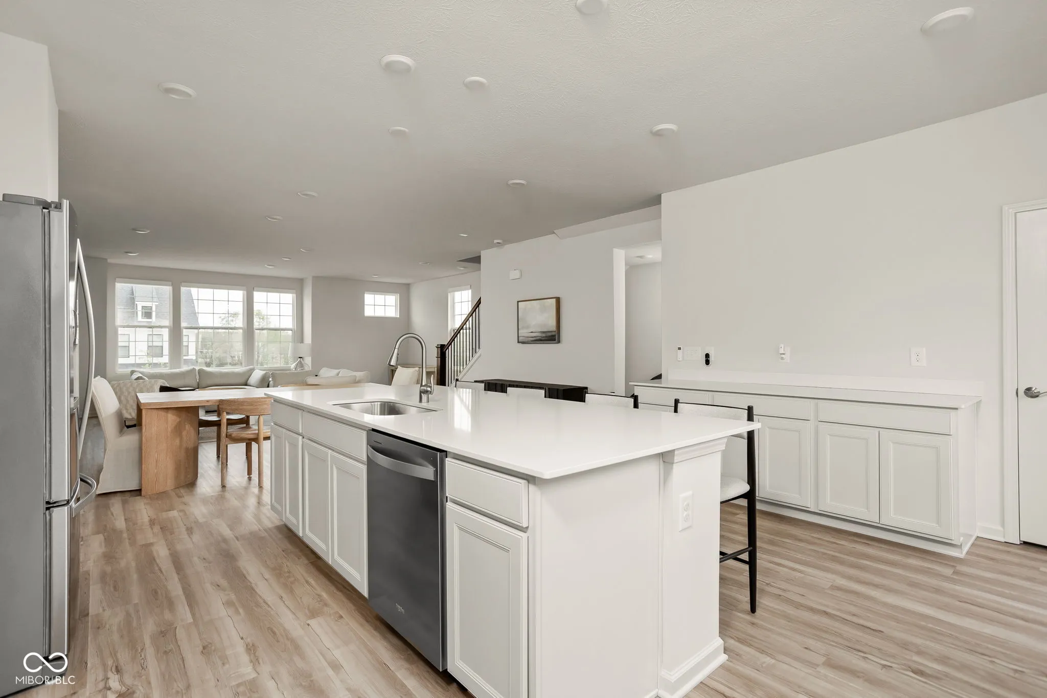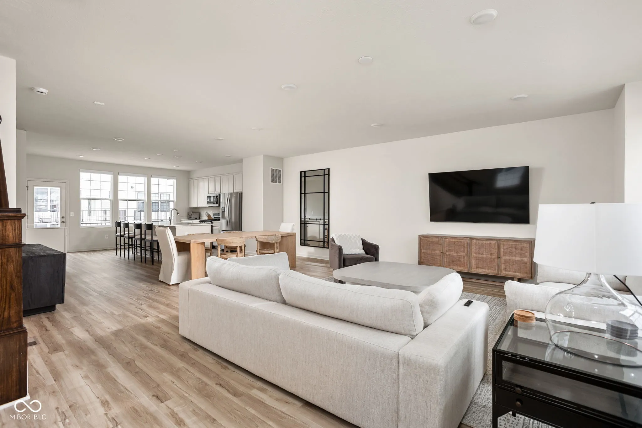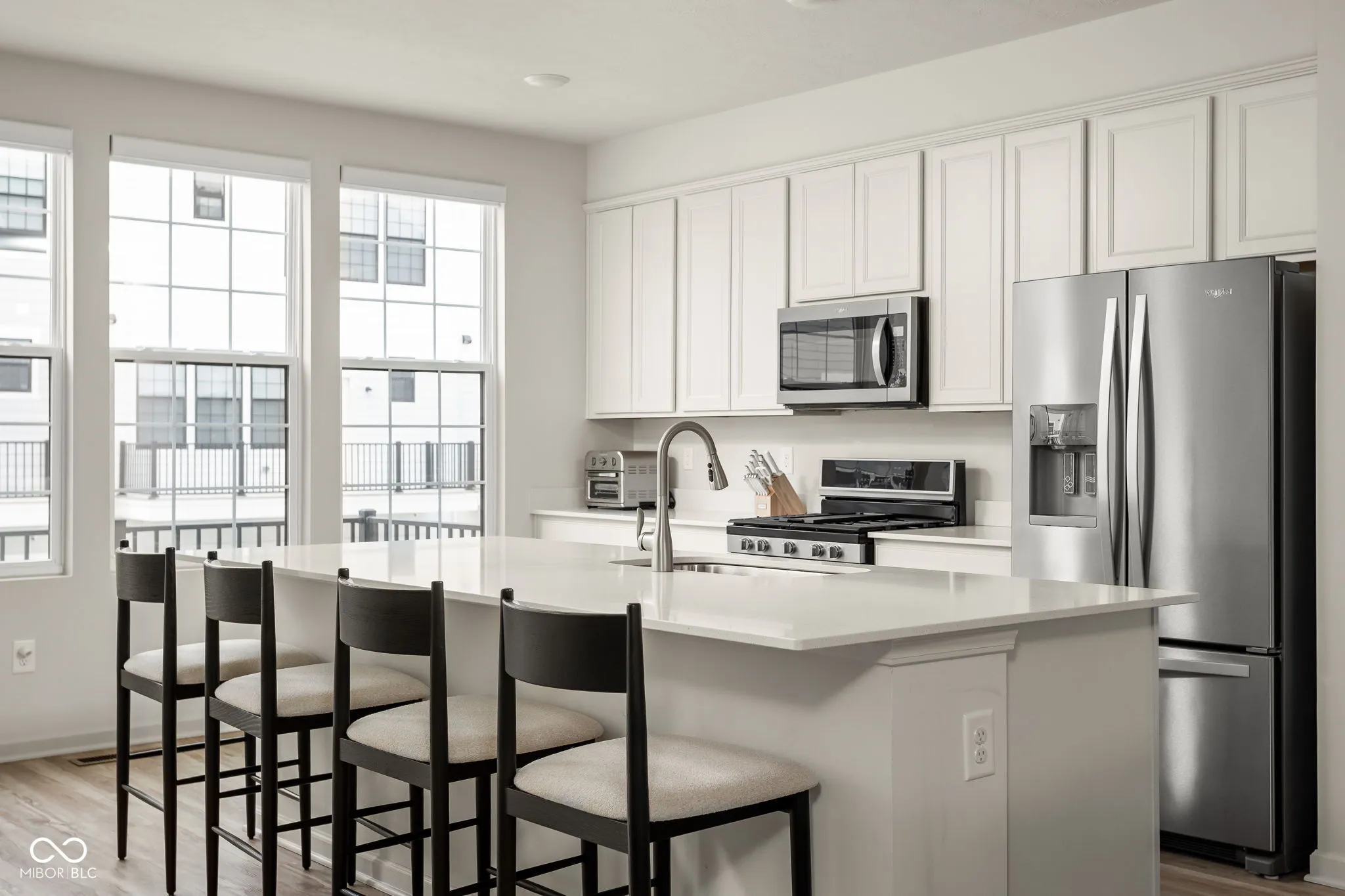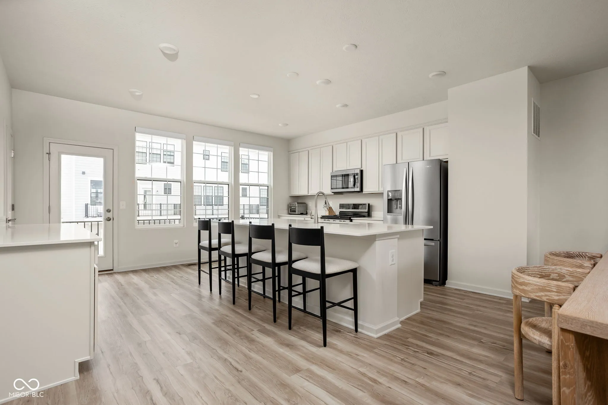 A standout end-unit with a pond view in the Towns at Appaloosa Crossing, this 2024-built townhouse offers the advantage of newer construction, a functional three-level layout, and abundant natural light-all in a highly convenient Zionsville location. The home includes 3 bedrooms, 2 full baths, 2 half baths, and an open main living space that seamlessly connects the kitchen, dining, and family room. The kitchen is well-designed with white cabinetry, a large center island, a gas range, and a walk-in pantry, along with access to a private deck for outdoor living. As a corner unit, the home is filled with natural light thanks to additional windows throughout, all equipped with custom mechanical shades. Upstairs, the primary suite features tray ceilings, a wall of windows, a spacious layout, and a well-appointed bath with a large walk-in shower, double vanities, and a generous walk-in closet. Two additional bedrooms offer flexibility for guests, a home office, or everyday living. The lower level adds valuable flexibility, currently used as an office but easily suited for a workout space, hobby area, playroom, or the option to enclose for a fourth bedroom. The two-car garage is finished with epoxy floors and provides extra storage space. Ideally located with quick access to shopping, dining, and the interstate, this home combines low-maintenance living with everyday convenience.