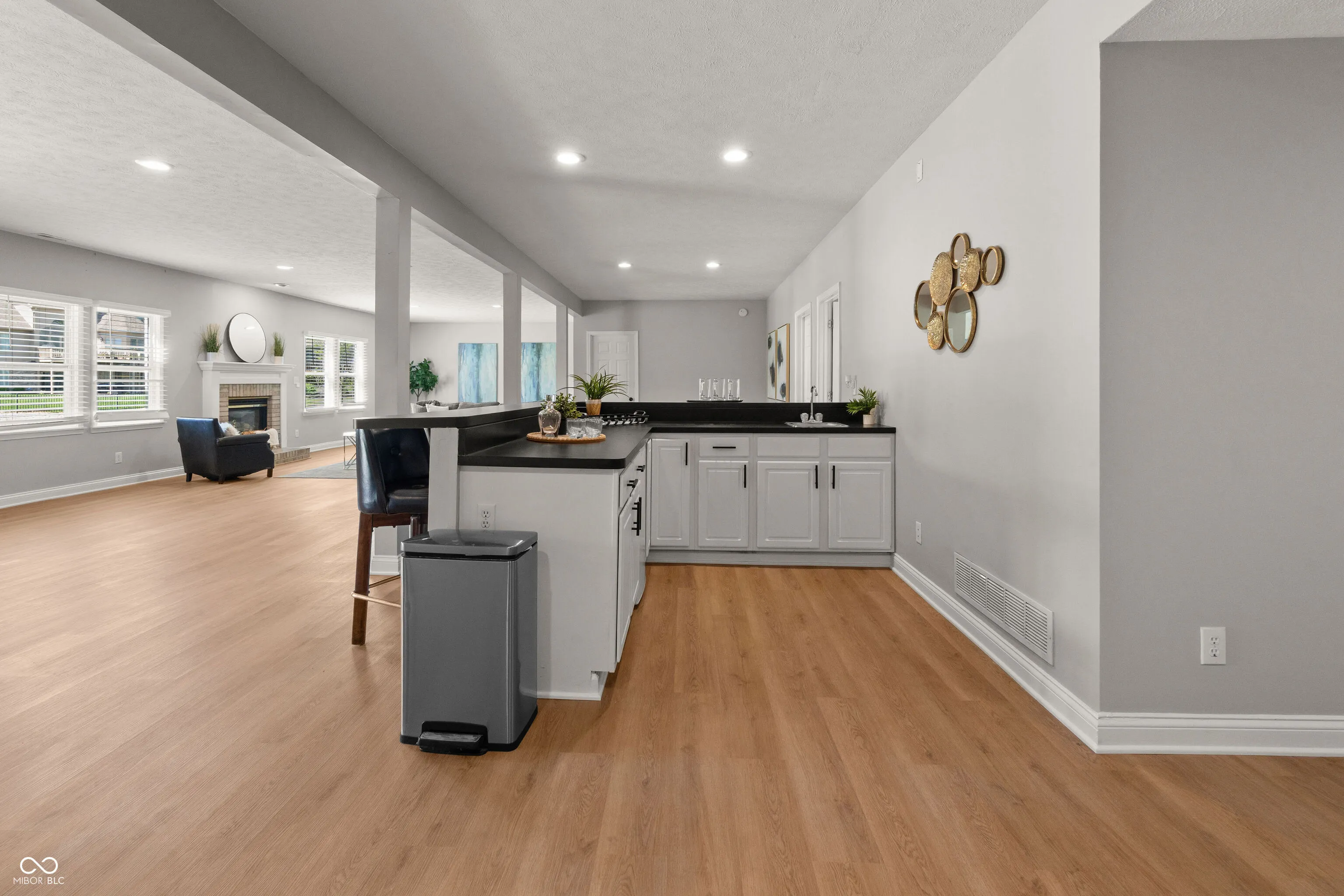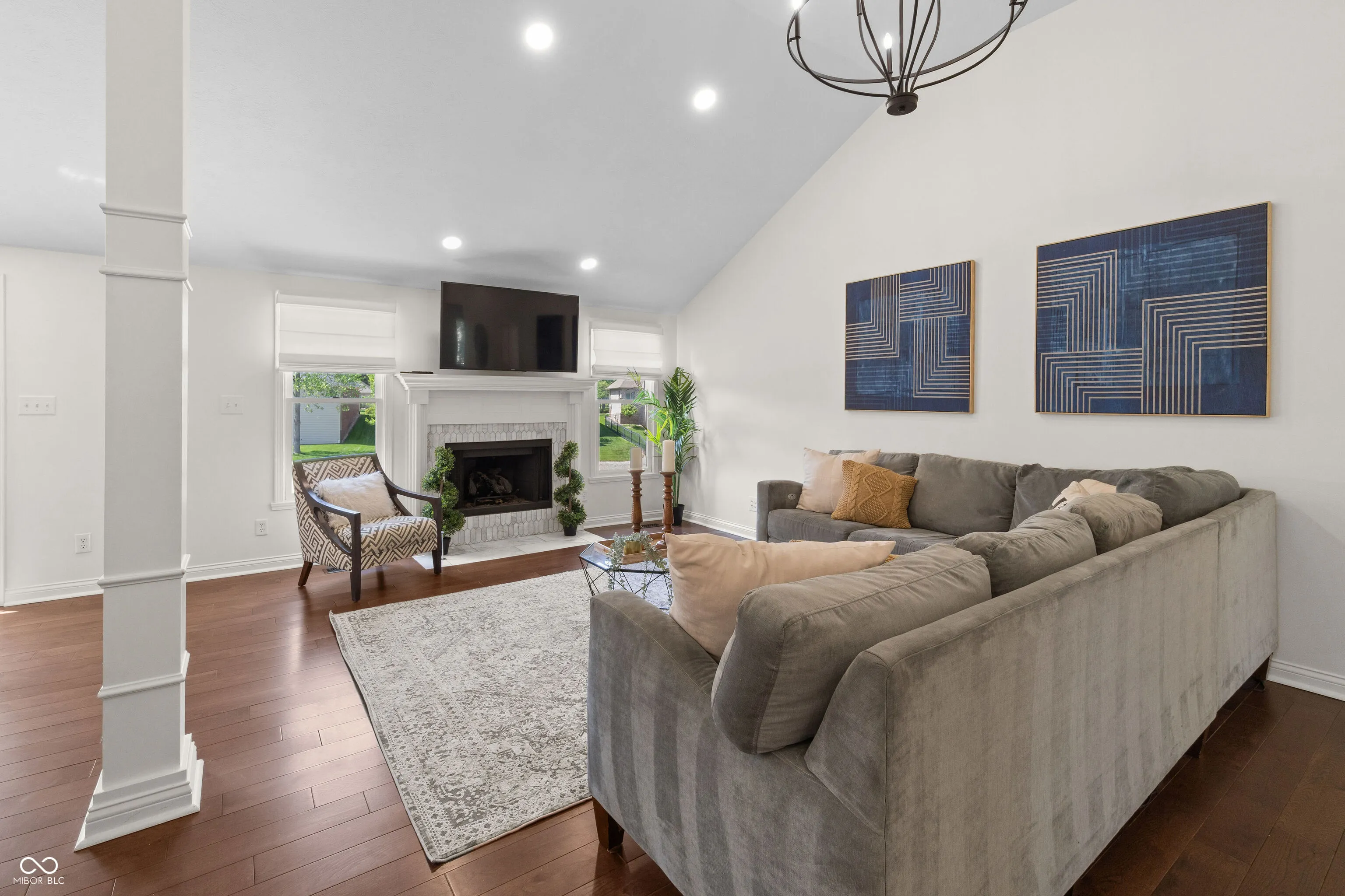 Discover your waterfront oasis in the highly desirable Carmel Waterstone Lakes community! Situated on a tranquil cul-de-sac, this beautifully updated home offers captivating water views and direct access to the water from your backyard. Imagine relaxing on your decks or screened-in patio, watching the local wildlife. This surprisingly spacious home boasts a desirable open-concept main level with soaring vaulted ceilings, a custom kitchen featuring a large 10-foot island and mini bar, a walk-in pantry, and professional-grade appliances – an entertainer’s dream! The main floor also offers a convenient layout with a master suite, a dedicated office, and two additional bedrooms, providing flexibility for various living arrangements. Enjoy custom lighting, updated bathrooms, and elegant hardwood floors throughout this level. The fully finished lower level, with a direct walk-out to the water, expands your living space with a second fireplace, a generous bar area, and an open layout ready for your personal touch. This versatile space offers a 4th bedroom as well. Brand new tankless water installed. A convenient 3-car garage with walk-up attic storage completes this exceptional property, which is also within easy walking distance of the community’s tennis courts, clubhouse pools, and scenic lakefront walking paths. Don’t miss this incredible opportunity to embrace lakeside living in Carmel!