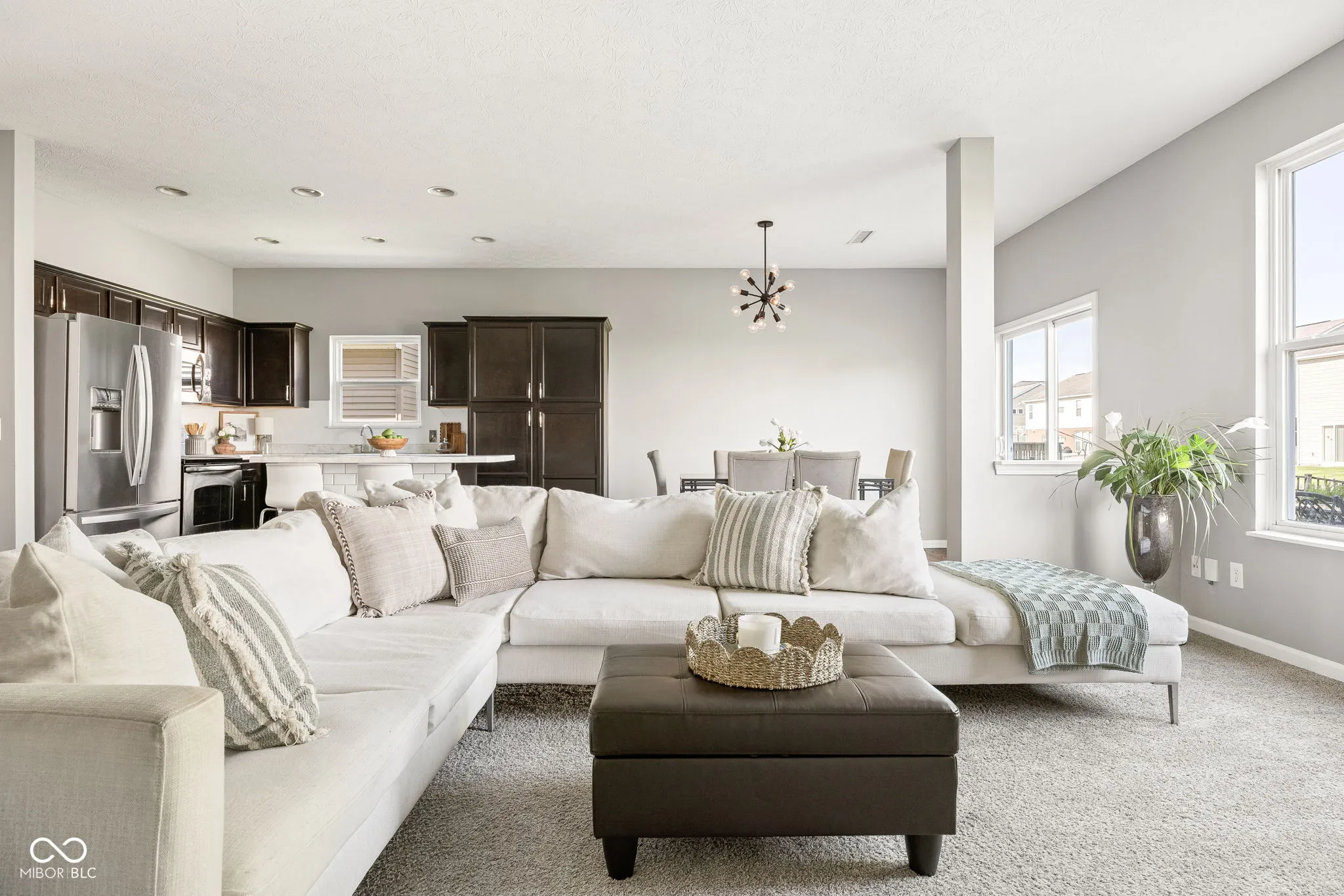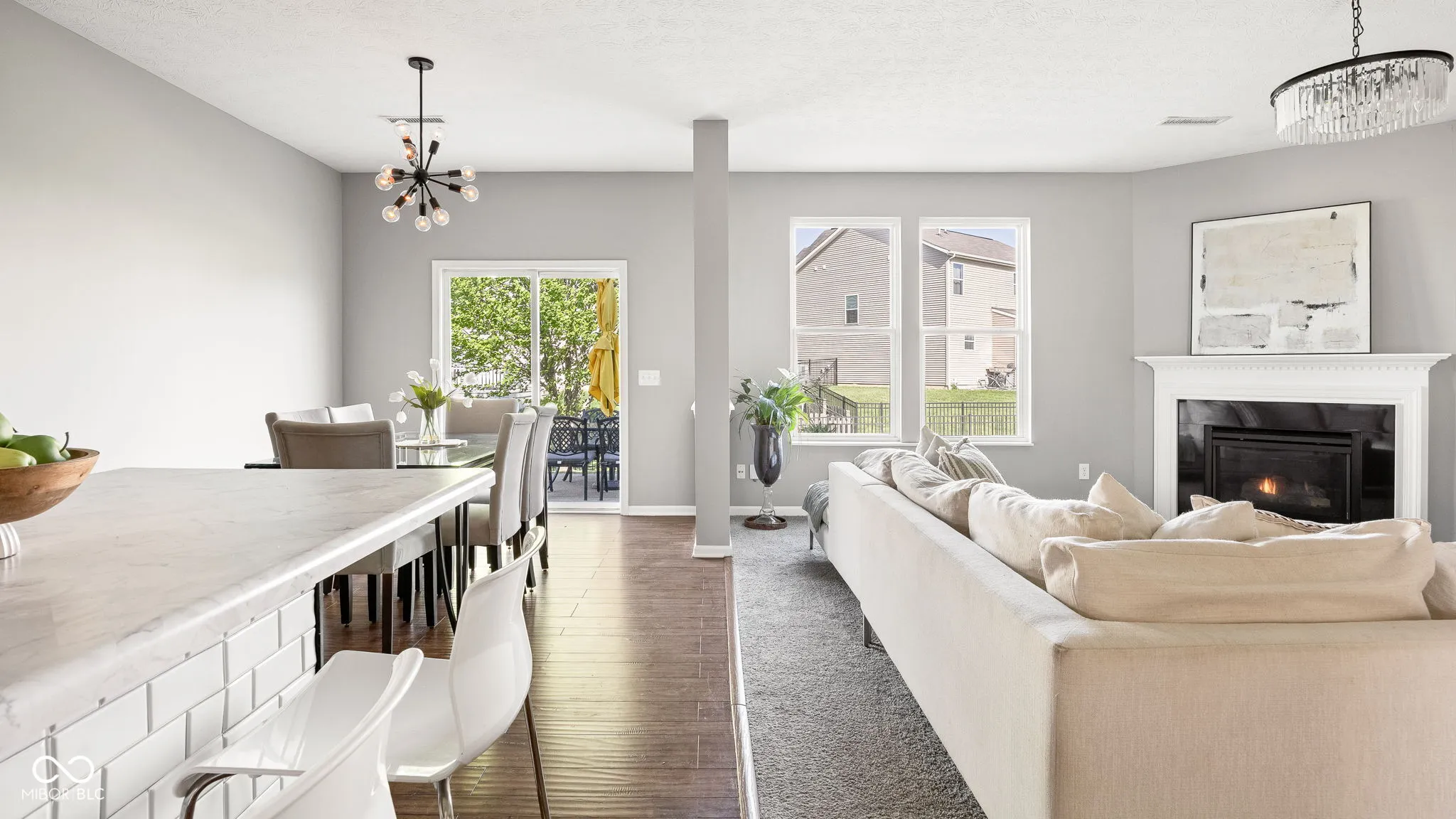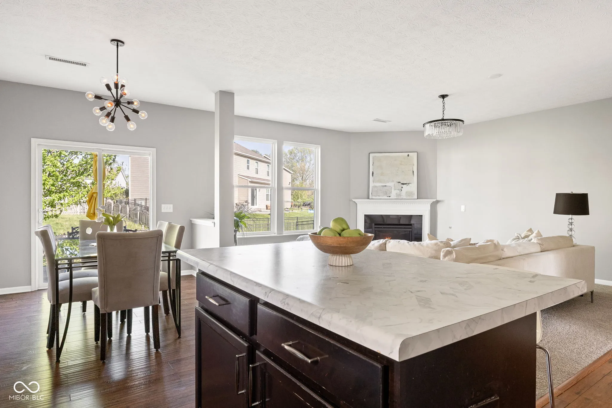 Ideally located in Westminster of Fishers, just minutes from Hamilton Town Center with shopping, dining and quick access to I-69 for an easy commute. Step inside to a bright, open-concept layout featuring 9′ ceilings and an easy, natural flow throughout the main level. The great room offers a cozy gas fireplace and opens to the kitchen and dining area, which you’ll love for entertaining and everyday living. The kitchen features stainless steel appliances, ample cabinetry, a center island and a separate dining area. A front flex room will adapt to your needs. A main level bedroom adds even more flexibility, whether for guests, a home office or a quiet retreat. Upstairs, a spacious loft provides a second living area, playroom or media space. The primary suite is designed for comfort with tray ceilings, dual walk-in closets, double vanities and a separate tub and shower. Fresh paint adds a clean, updated feel throughout. Out back, enjoy a fully fenced yard with patio space ideal for relaxing or hosting. All set within a desirable neighborhood offering amenities like a pool, playgrounds and a basketball court. This home blends comfort, flexibility, and location in a sought-after Fishers community!