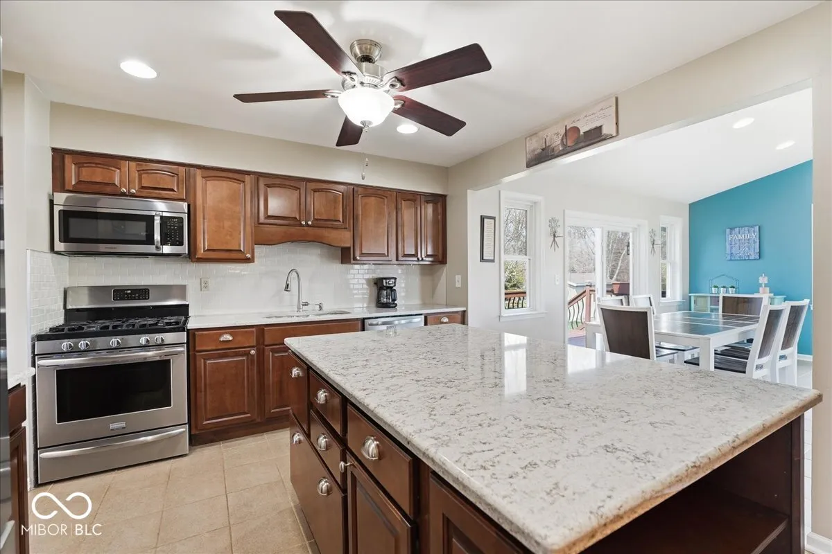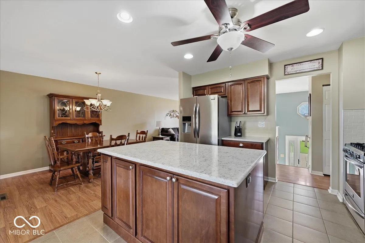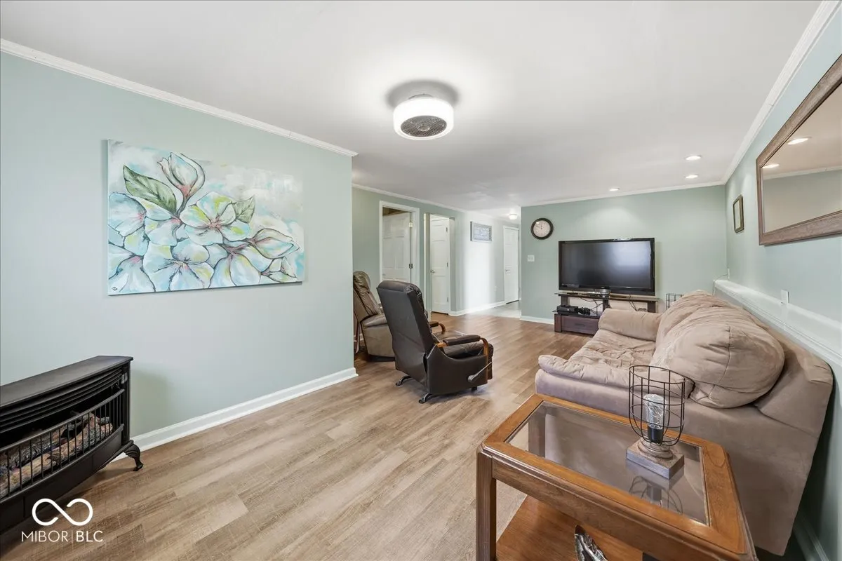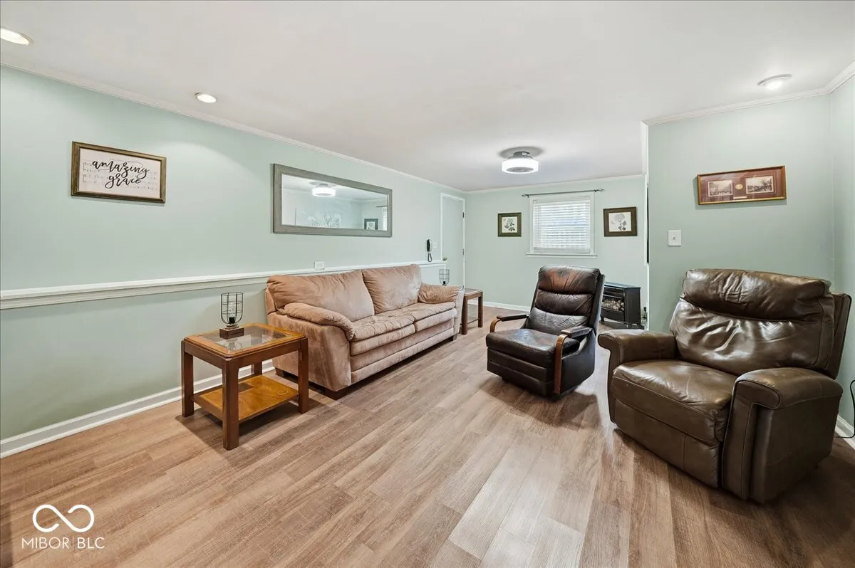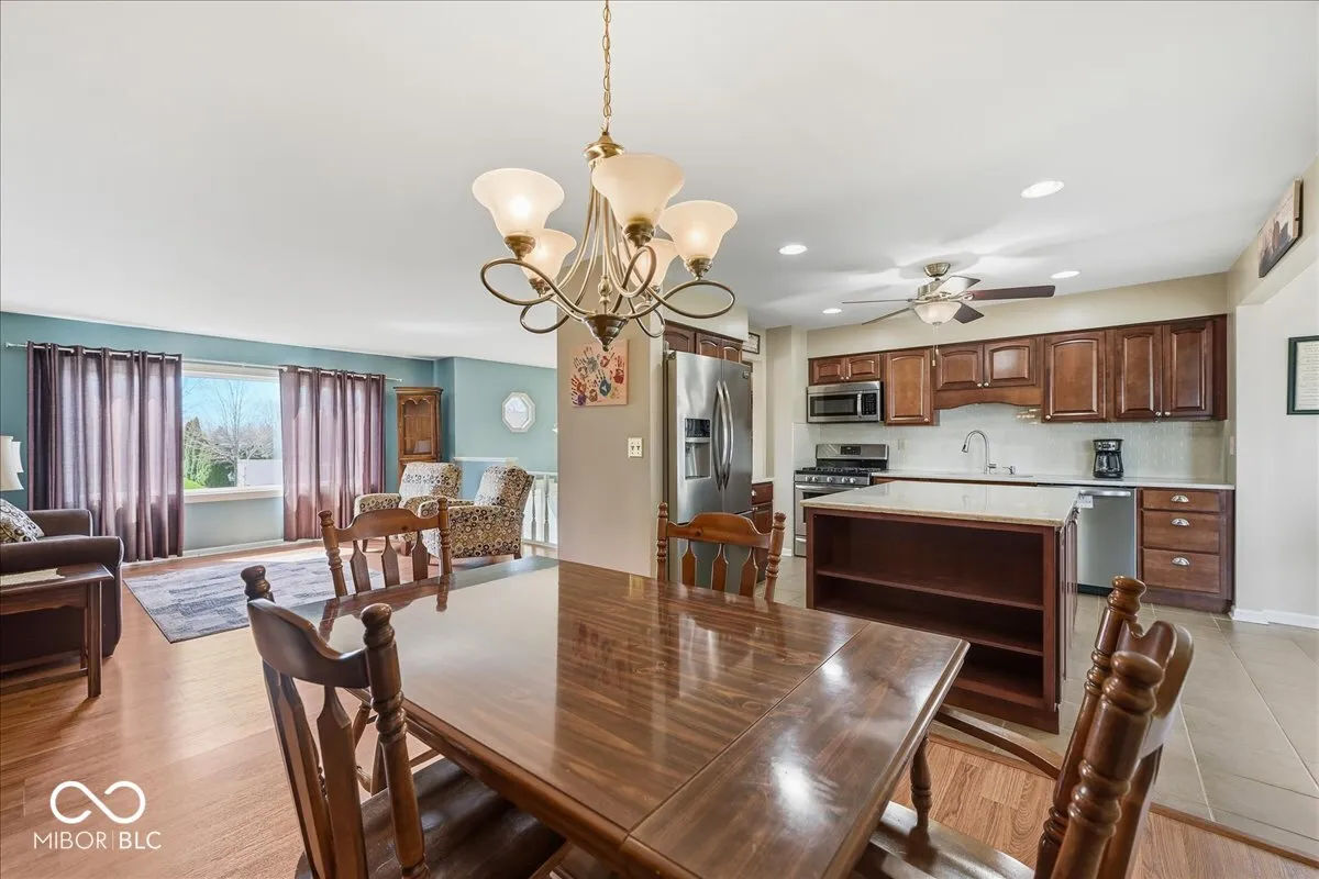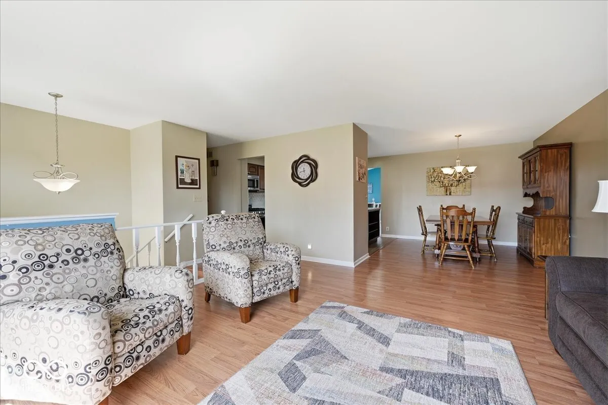 Must-see 5-bedroom, 3 full bath bi-level on over half an acre offering space (inside and outside), functionality, and updates throughout. Enjoy multiple living areas including a great room, formal dining room, breakfast room, family room, and a finished basement- all perfect for both everyday living and entertaining. The updated kitchen with trendy brown cabinets, stainless steel appliances, backsplash plus island for extra prep space & storage serves as the heart of the home. The open-concept layout seamlessly connects the kitchen to surrounding spaces. Walls of windows in the breakfast room and family room bring in loads of natural light and overlook the expansive backyard. The finished basement features a rec room, full bath, and two bedrooms. The 5th bedroom offers ideal flexibility for a home office, guest space, or hobbies. Updates include laminate flooring, carpet, paint, vanities, and mechanicals-providing peace of mind and modern comfort. Relax on the upper deck or barbecue on the large patio. Situated on a .54-acre lot with mature trees and no HOA, the property also includes a shed with concrete floor, parking pad, and an oversized 22×30 garage for ample storage or workspace. Extra storage under house with an exterior entrance. Located in Lake Central Schools. See attached list of improvements and dates. This home truly combines space, updates, and location.