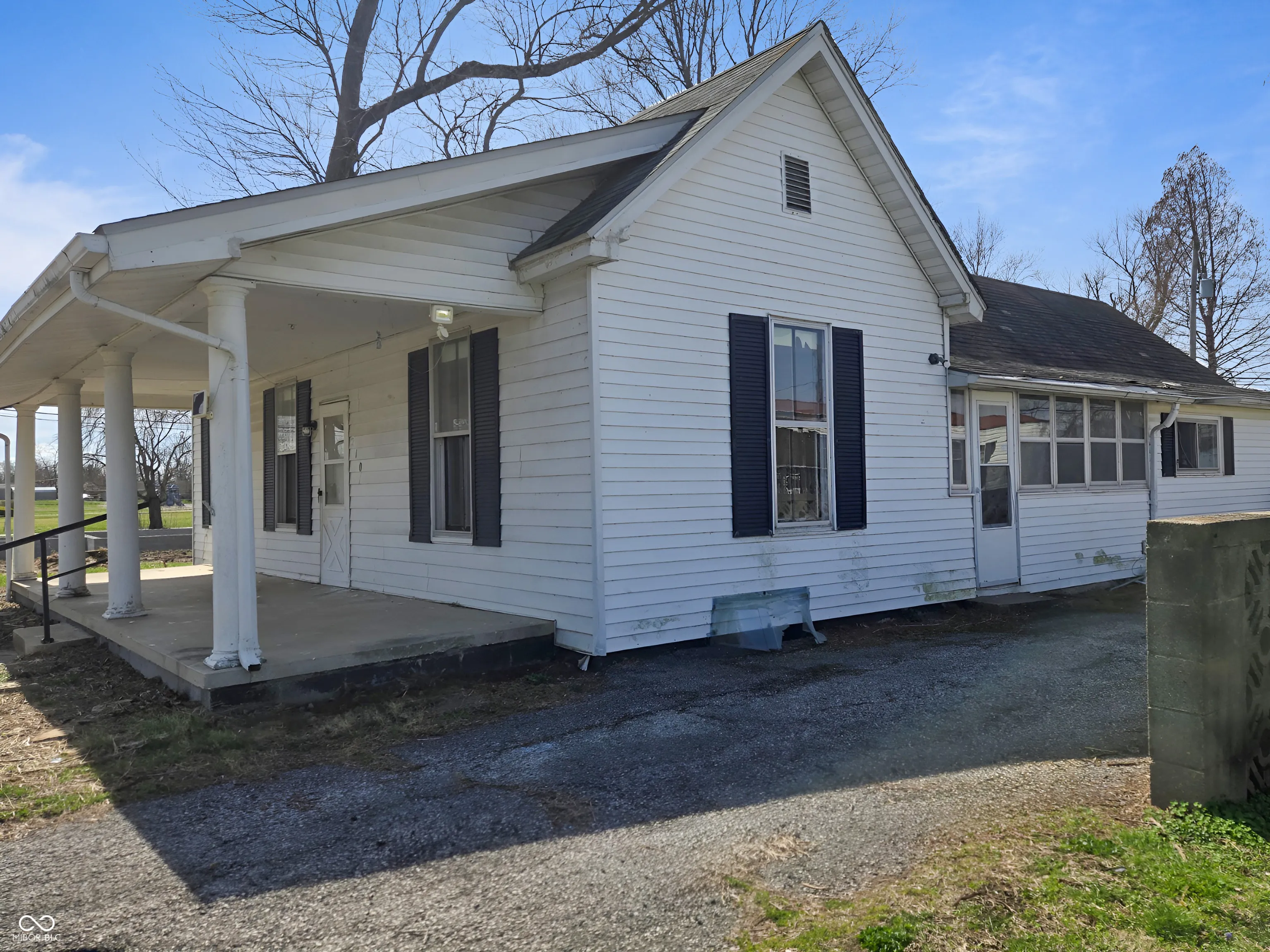 Charming one-story home with a covered front porch and striking stone chimney, set on a spacious lot with mature trees. Inside, you’ll find a character-filled living area featuring a floor-to-ceiling stone fireplace, exposed wood beams, and abundant natural light. The generous kitchen offers room to customize, while the home’s flexible layout and spacious rooms provide great potential. With some updates already started, this property is a fantastic opportunity for buyers or investors to add value and make it their own.