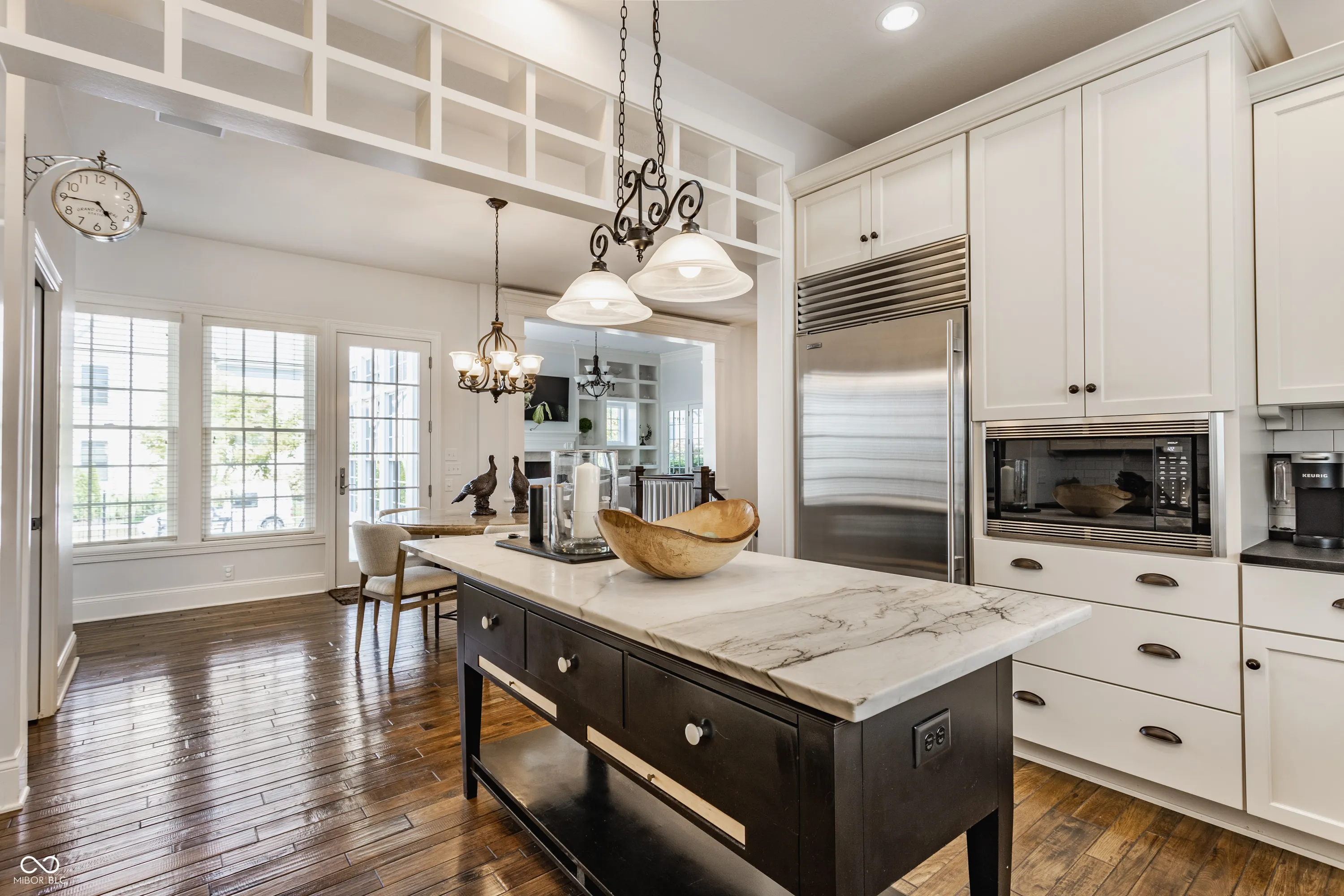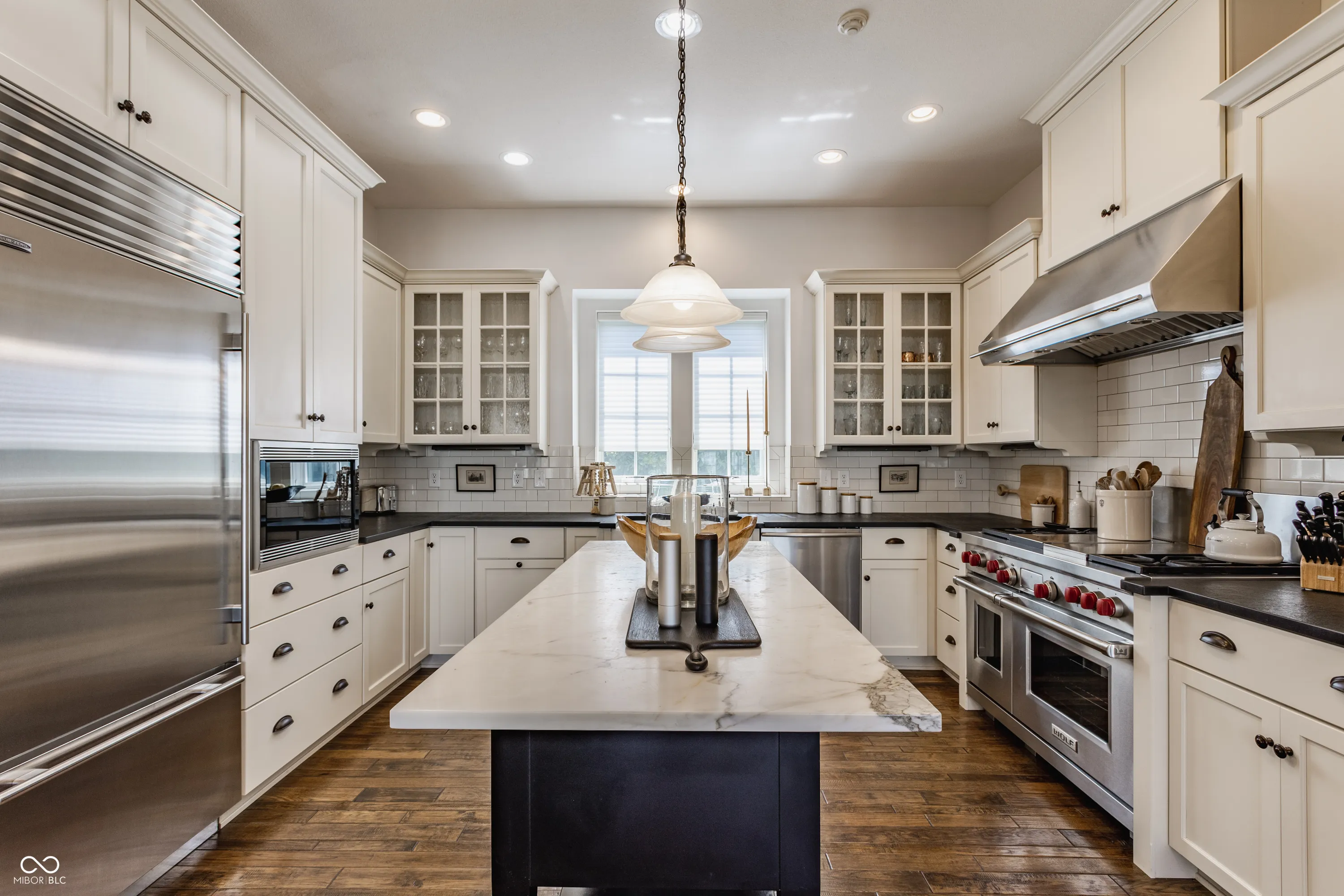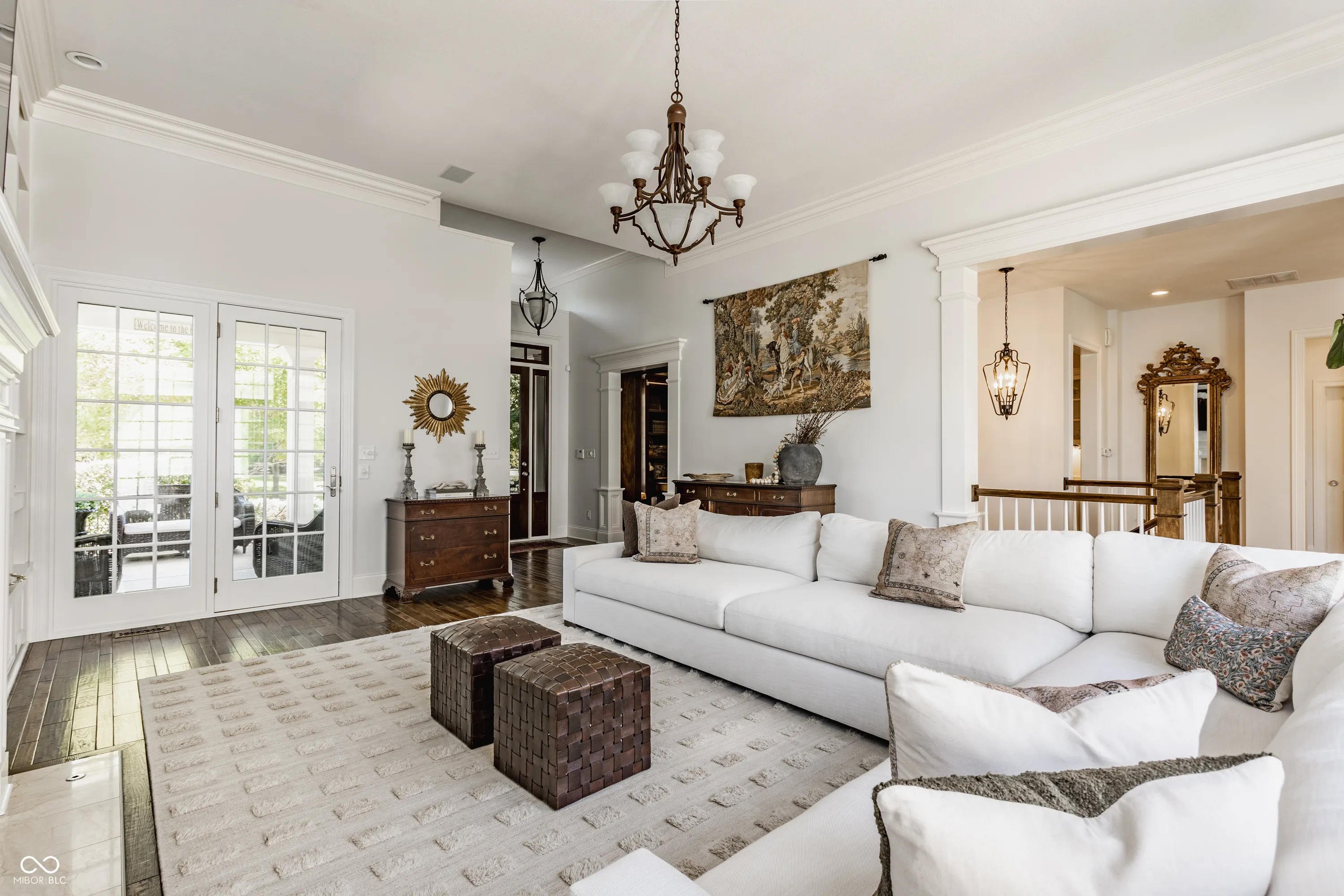 Exuding timeless elegance and bespoke sophistication, this extraordinary residence in the prestigious Village of WestClay is a masterclass in refined design and impeccable craftsmanship. Every detail has been thoughtfully curated, showcasing elevated finishes and a seamless blend of luxury and comfort.A sweeping, gracious front porch sets a captivating tone, offering an idyllic setting for both elegant entertaining and relaxed enjoyment of the charming, vibrant neighborhood. Inside, an artfully designed floor plan unfolds, effortlessly balancing expansive main-level living with intimate, thoughtfully appointed spaces. A distinguished library, adorned with dramatic floor-to-ceiling bookshelves, creates a warm and inspiring retreat for the discerning bibliophile. Tucked discreetly behind a paneled wall, a hidden office provides a private, serene workspace. The grand great room makes a striking impression, featuring custom built-ins, a welcoming gas fireplace, and seamless access to both the front porch and side patio-creating an ideal flow for indoor-outdoor living. At the heart of the home, the gourmet kitchen is a true culinary showpiece. Outfitted with premier appliances, including a Wolf gas range with dual ovens, Sub-Zero refrigerator, and Wolf microwave, this space is both functional and exquisite. Leathered granite countertops, a marble-clad center island, farmhouse sink, and an expansive walk-in pantry complete this exceptional chef’s domain. The main-level primary suite offers a private sanctuary of comfort and sophistication, featuring direct patio access, a spa-inspired ensuite bath, and a generously proportioned walk-in closet. The lower level is designed for elevated entertaining and leisure, boasting a full wet bar with dual beverage refrigerators, a dedicated home theater for cinematic experiences, and a temperature-controlled wine cellar for the avid collector. Perfectly positioned within the highly desired Village of WestClay.