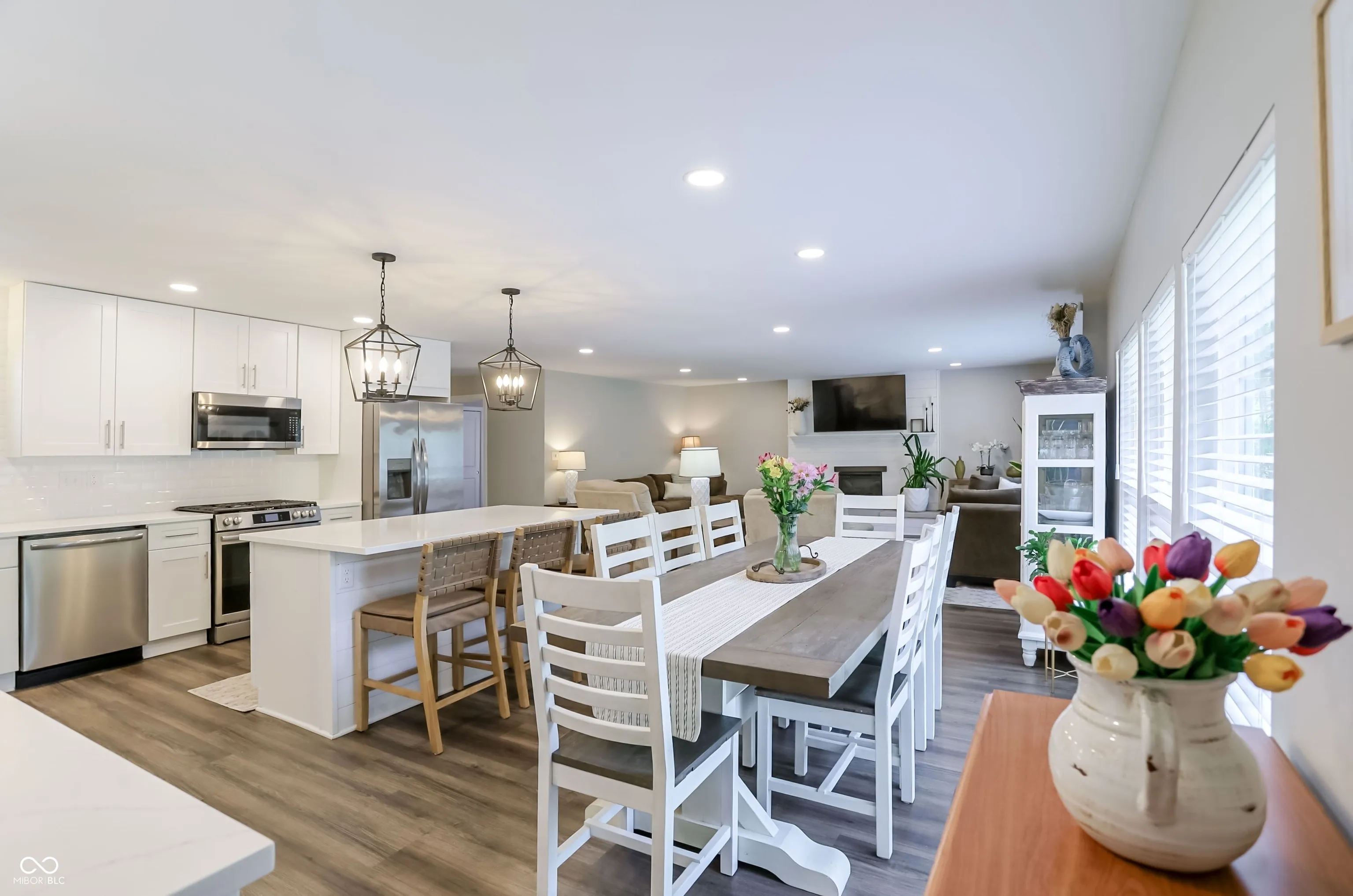 This gorgeous home makes a striking first impression the moment you walk into this stunning, move-in ready 4-bedroom, 3-bath home. Iconic mid-century design meets fresh, modern style and is thoughtfully designed for both comfort and functionality. The versatile floor plan features multiple living spaces-perfect for everyday living, relaxing, or entertaining guests. The home was completely remodeled from top to bottom in 2025 and high-end finishes are found throughout the entire home. You will love the amazing kitchen with large island, plenty of cabinet space, multiple counter tops, coffee bar, and bar/cabinet to display all sorts of items. The basement has plenty of space for entertaining and the 4th bedroom is currently being used as a work-out room. Both the living room and basement have fireplaces! The layout offers flexibility to suit a variety of lifestyles, while large, inviting spaces create a warm and welcoming feel throughout. Step outside to a beautifully designed outdoor entertaining area, ideal for hosting everything from quiet evenings to lively gatherings. The outdoor covered patio will certainly be a favorite place to spend your time. Relax outside and watch TV/movies/sporting events! This home is nestled on a private lot at the end of a cul-de-sac. It provides a rare sense of peace and seclusion while still being conveniently located. A true standout, this property effortlessly blends timeless mid-century charm with today’s modern updates-perfect for buyers seeking both character and style.
