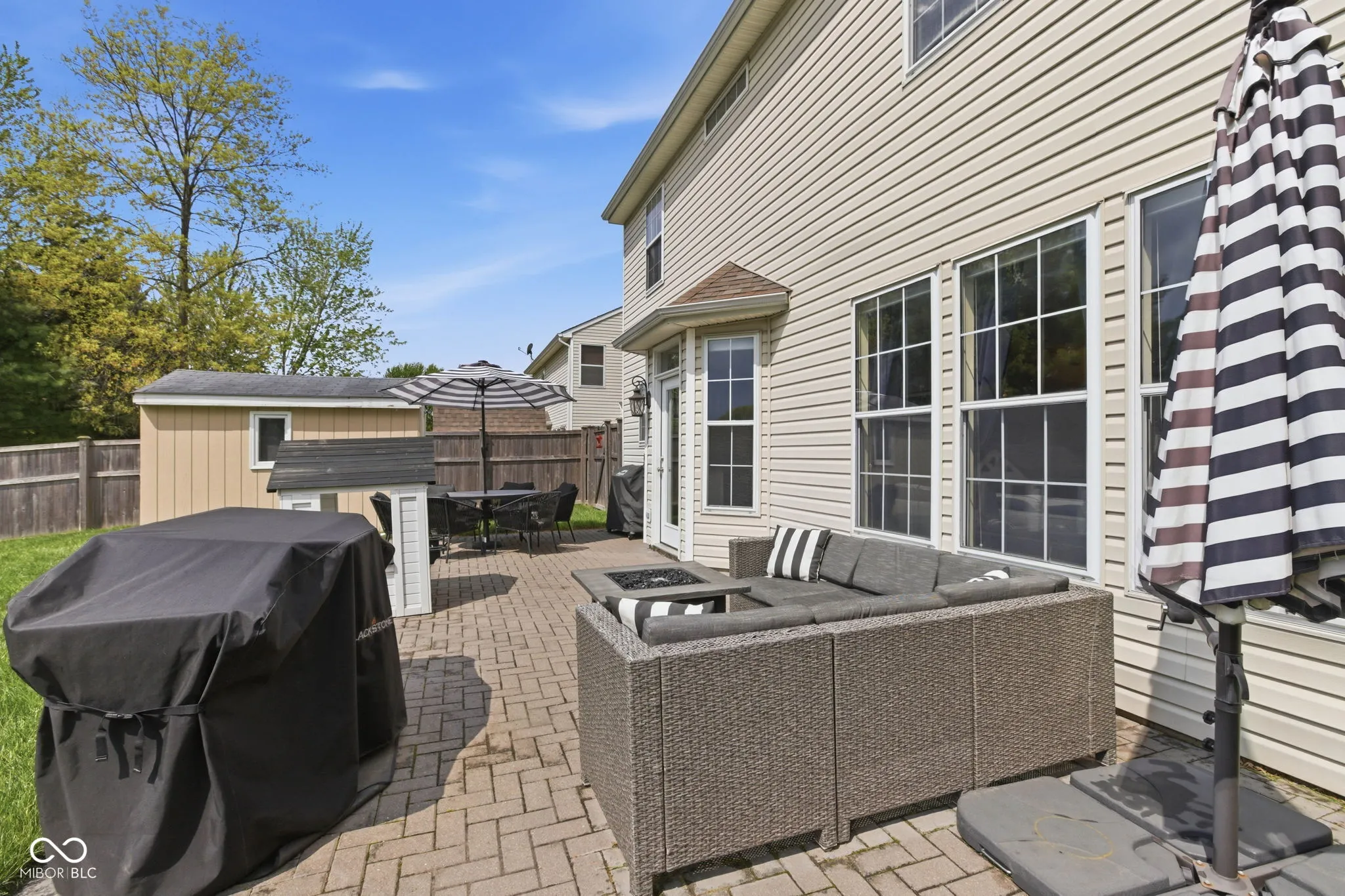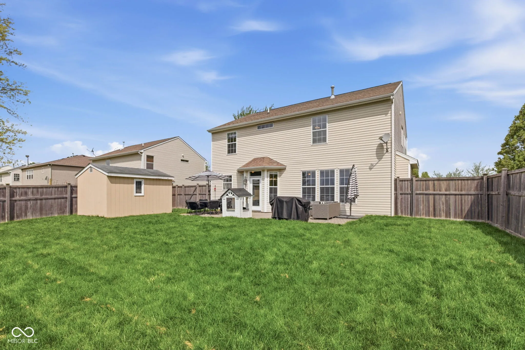 Warm and inviting, this beautifully maintained 4-bedroom home offers space, style, and a serene setting. The welcoming family room features a cozy gas fireplace flanked by custom built-in bookshelves-perfect for relaxing or entertaining. The updated center island kitchen is a standout, complete with all appliances, a walk-in pantry, and a sunny breakfast nook overlooking the backyard. A versatile formal dining room can easily serve as a living room or flex space to fit your needs. Upstairs, you’ll find four spacious bedrooms, including a large primary suite with cathedral ceilings, a walk-in closet, and a luxury bath featuring dual sinks, a separate shower, and a garden tub. Convenient upstairs laundry adds everyday ease and includes washer and dryer. Freshly painted trim throughout enhances the home’s move-in ready appeal. Step outside to enjoy a fully fenced yard with a paver patio and storage shed-all set against a peaceful, pastoral backdrop of open green space.