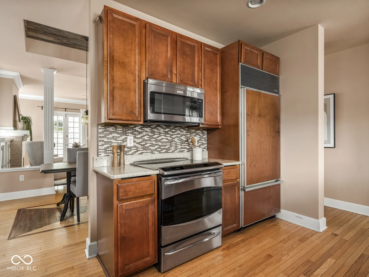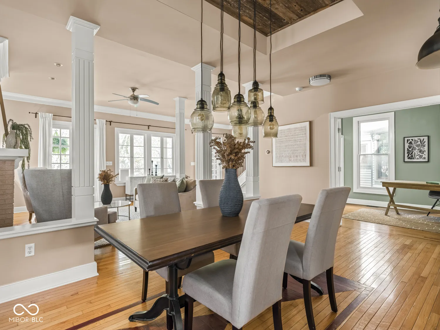 This historic home features a stunning stacked porch overlooking Herron-Morton Place’s iconic esplanade. Custom hardscaping and a gated front yard lead to charming double entry doors, creating a memorable first impression. Inside, a gracious foyer opens to light-filled living spaces showcasing hardwood floors, soaring ceilings, crown molding, and beautiful built-ins. A spacious main-level bedroom, located adjacent to a full bath, offers flexibility as a private guest suite or an ideal work-from-home space. At the heart of the home, the centrally positioned kitchen boasts a functional layout, high-end finishes, a large breakfast bar, and a Sub-Zero refrigerator. A cozy family room at the rear of the home provides the perfect setting to unwind. Upstairs, the expansive owner’s retreat impresses with a massive walk-in closet, a well-appointed ensuite bath, and access to a private upper porch – ideal for morning coffee, people watching, or relaxing evenings. Two additional bedrooms, a full bathroom, and a conveniently located laundry room complete the second level. A rear balcony leads to the third floor, offering incredible potential to be finished as additional living space or transformed into an income-producing apartment. Outside, the fully fenced backyard features a new paver patio and leads to a three-car garage. Perfectly nestled in a picturesque setting just minutes from downtown parks, trails, dining, and nightlife. This home offers a rare blend of historic charm, modern comfort, and unbeatable location.