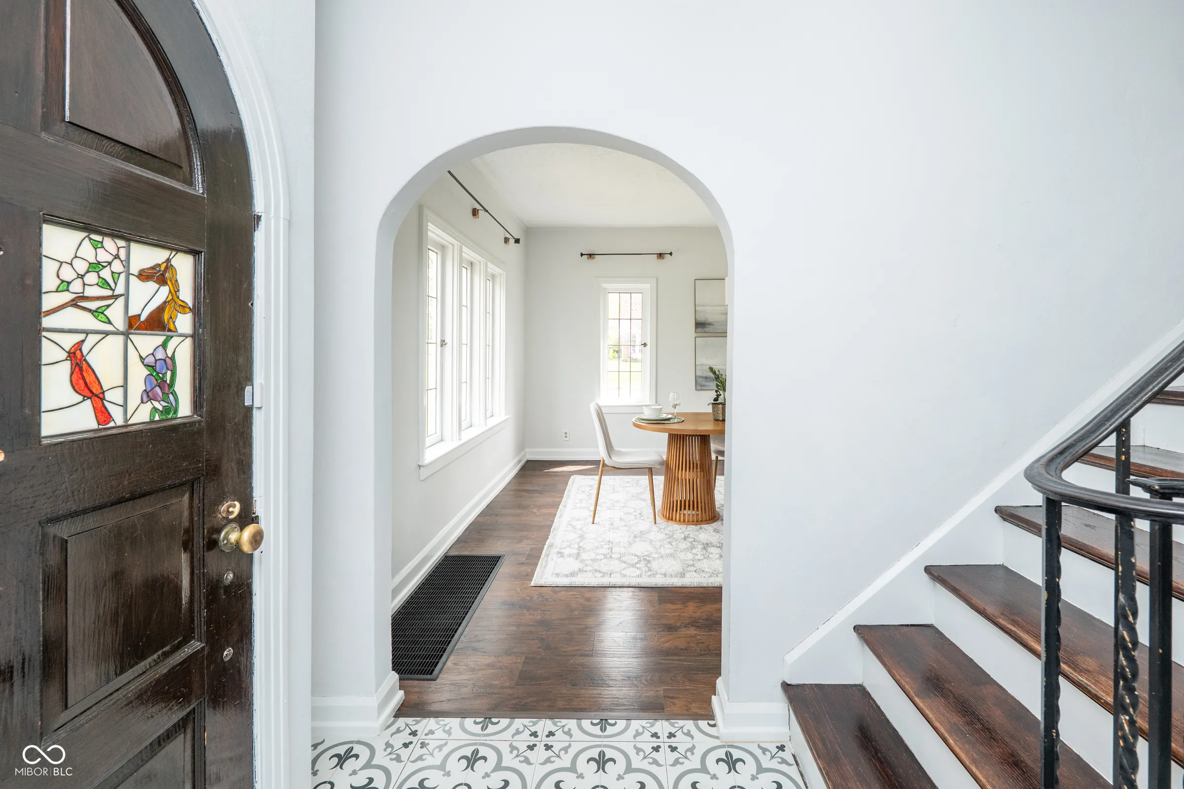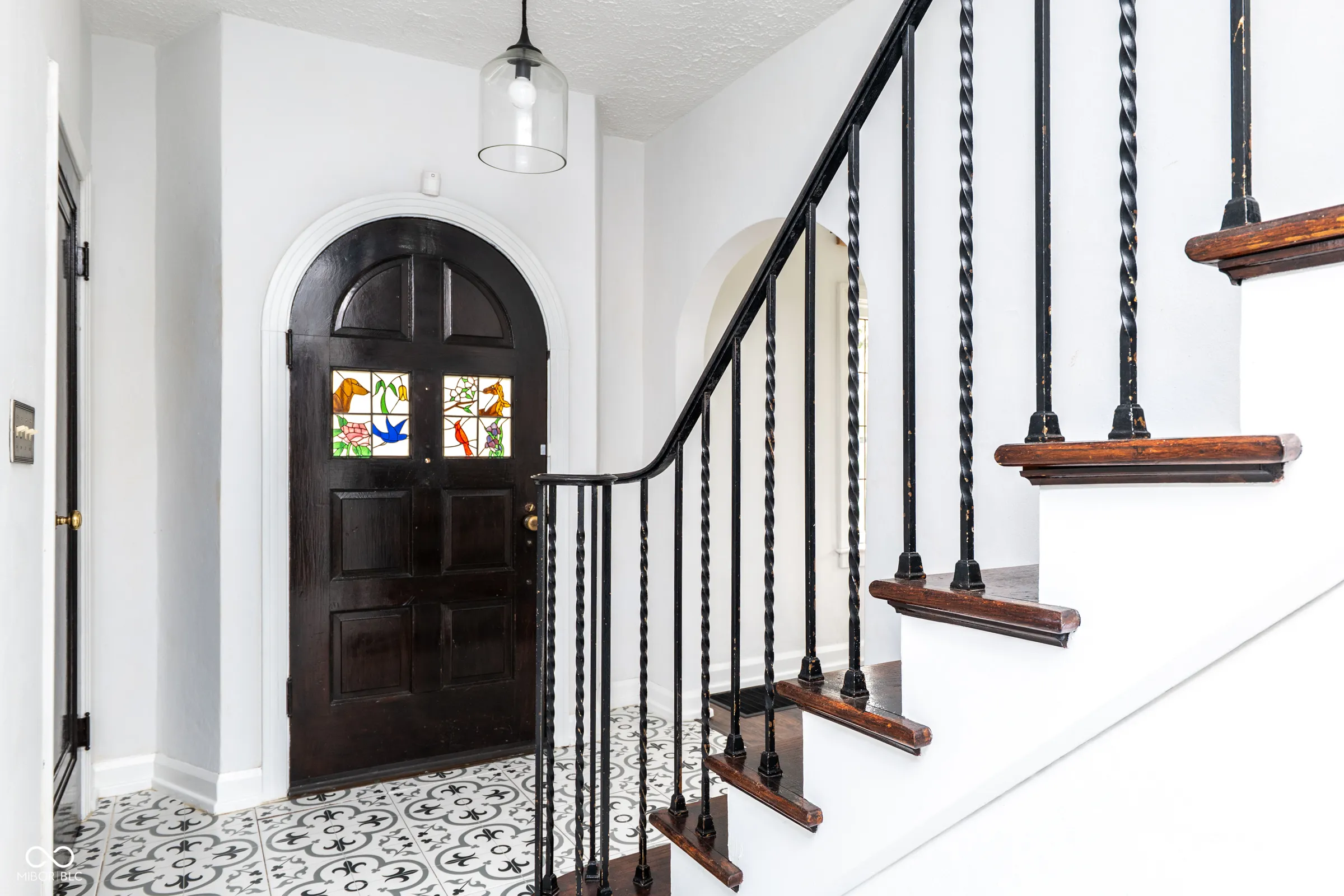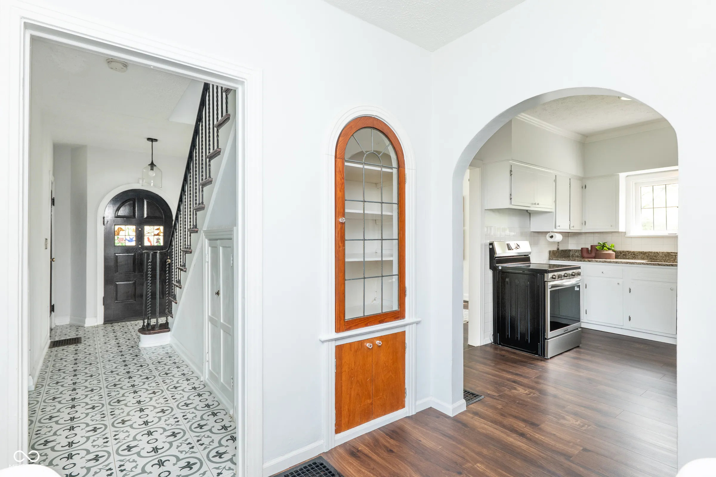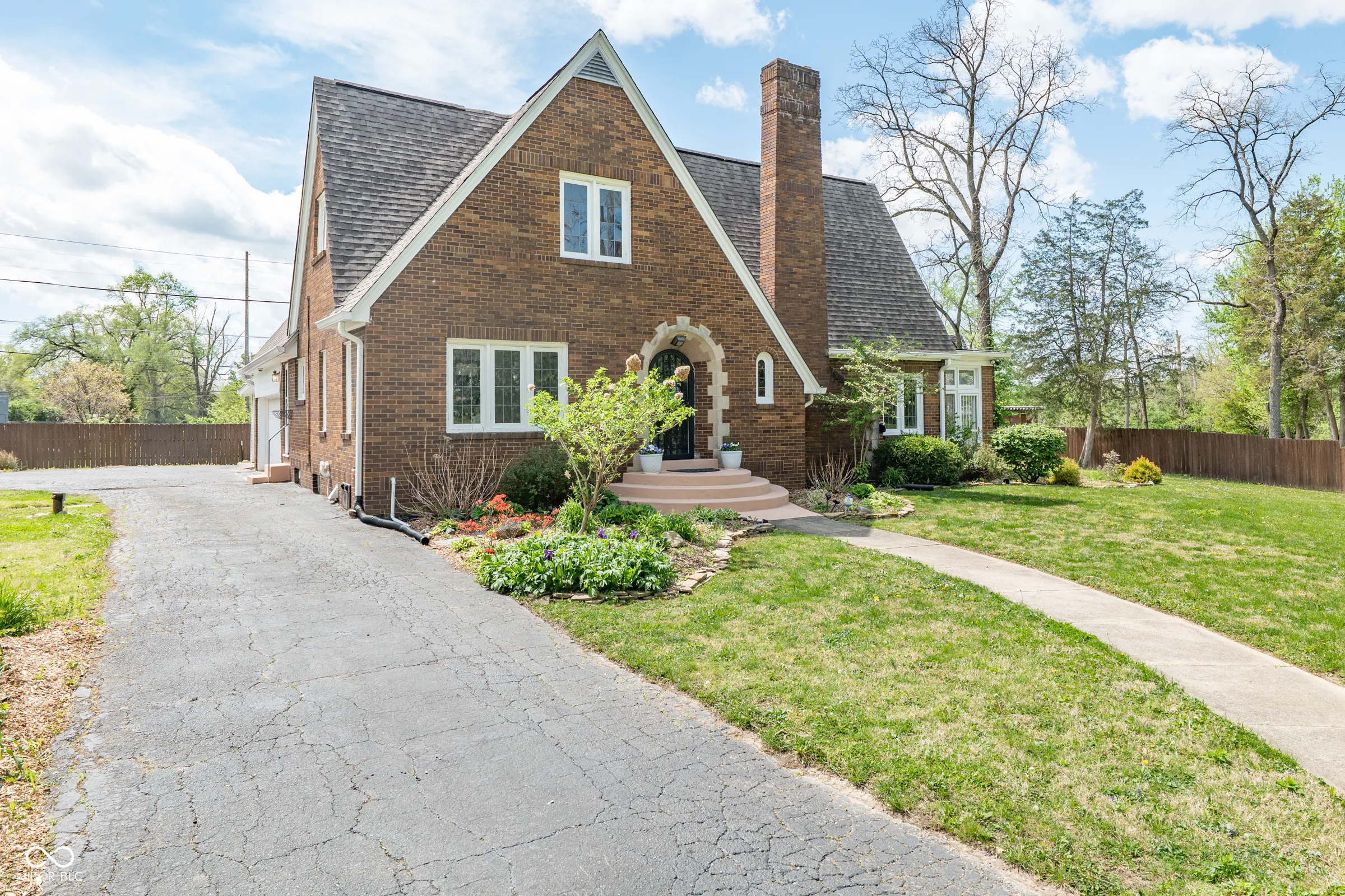 Step back in time without giving up a thing. Built in 1929 and thoughtfully updated for modern living, this stately English Tudor is one of just eight homes on the coveted Lick Creek Drive – a quiet, tucked-away address that feels a world apart while remaining minutes from everything Indianapolis has to offer. The limestone-trimmed arched entry, rich variegated brick, and steep gabled roofline announce something special before you even step inside. Nearly a century of character unfolds across three bedrooms and two and a half baths. Original leaded glass windows cast soft light through every room. Arched doorways, twisted wrought-iron balusters, stained glass panels, and a barrel-vaulted living room ceiling speak to craftsmanship that simply isn’t built anymore. Original hardwood floors – freshly refinished upstairs – run through many rooms, and the living room’s limestone fireplace anchors the space with quiet elegance. The layout flows beautifully: a tile-floored foyer with a graceful staircase, a formal dining room, a sun-drenched kitchen with all-new appliances and new flooring, a breakfast nook, and an enchanting sunroom wrapped in original windows that opens to the backyard. A charming built-in china cabinet nods to the home’s heritage. Recent updates give you total peace of mind: fresh interior paint throughout, newly refinished upstairs hardwood floors, new kitchen and breakfast nook flooring, all-new kitchen appliances, a one-year-old well pump, UV filter and pressure tank, and fresh landscaping. Outside, the .43-acre lot offers space to breathe – a three-car garage, a garden she-shed, and mature trees frame a property that feels like a private retreat. Homes like this don’t come along often. This one has been loved.
