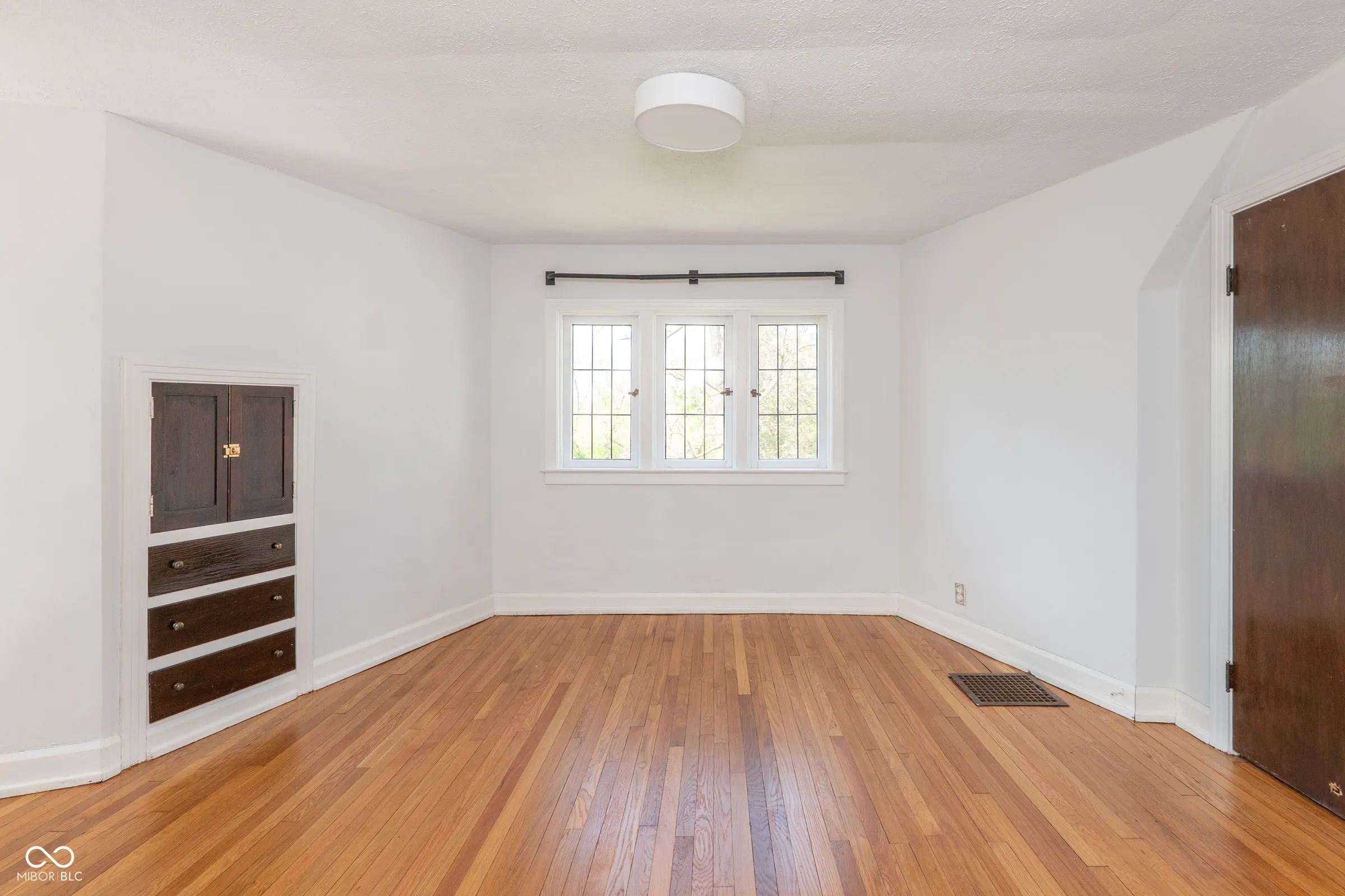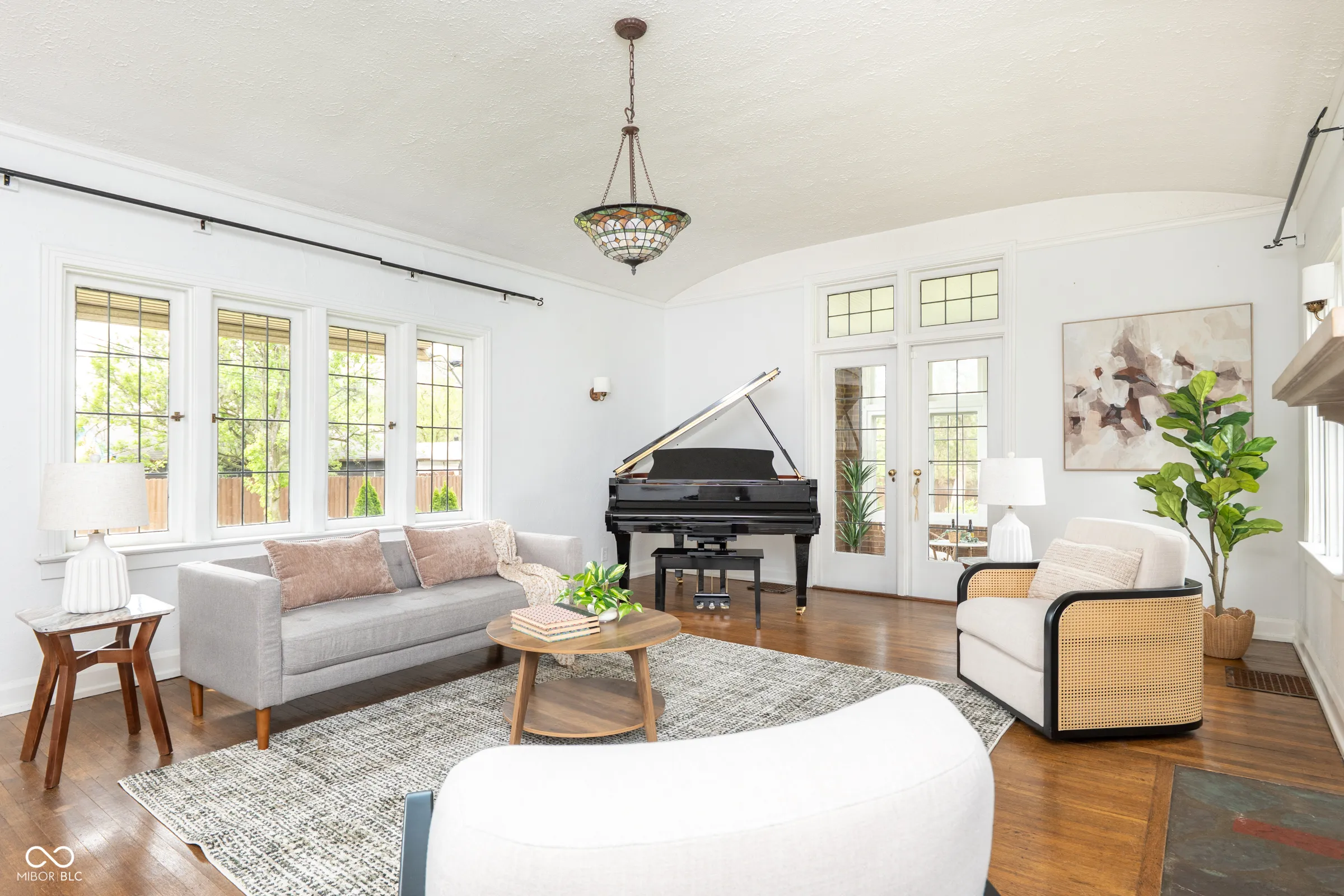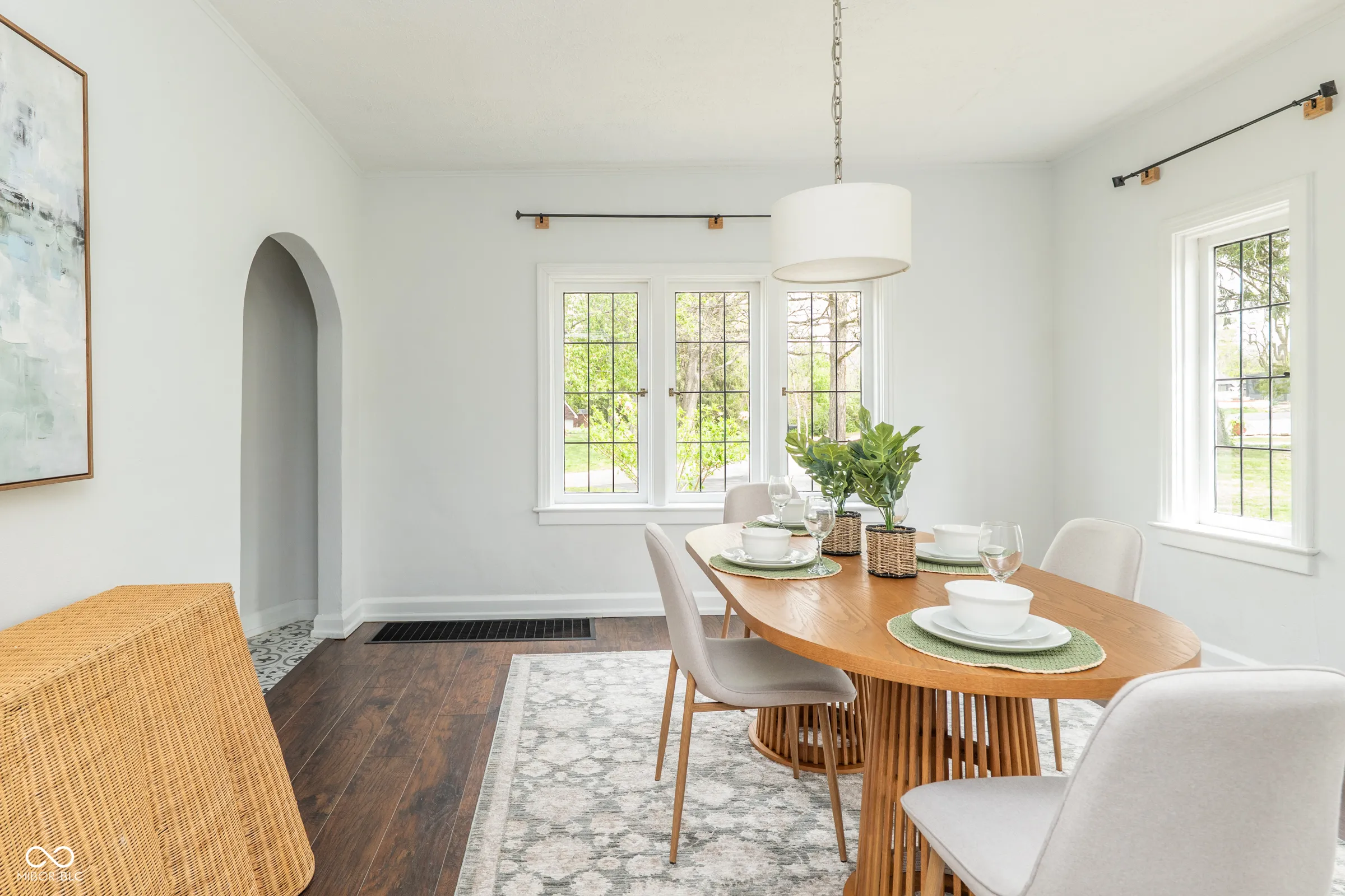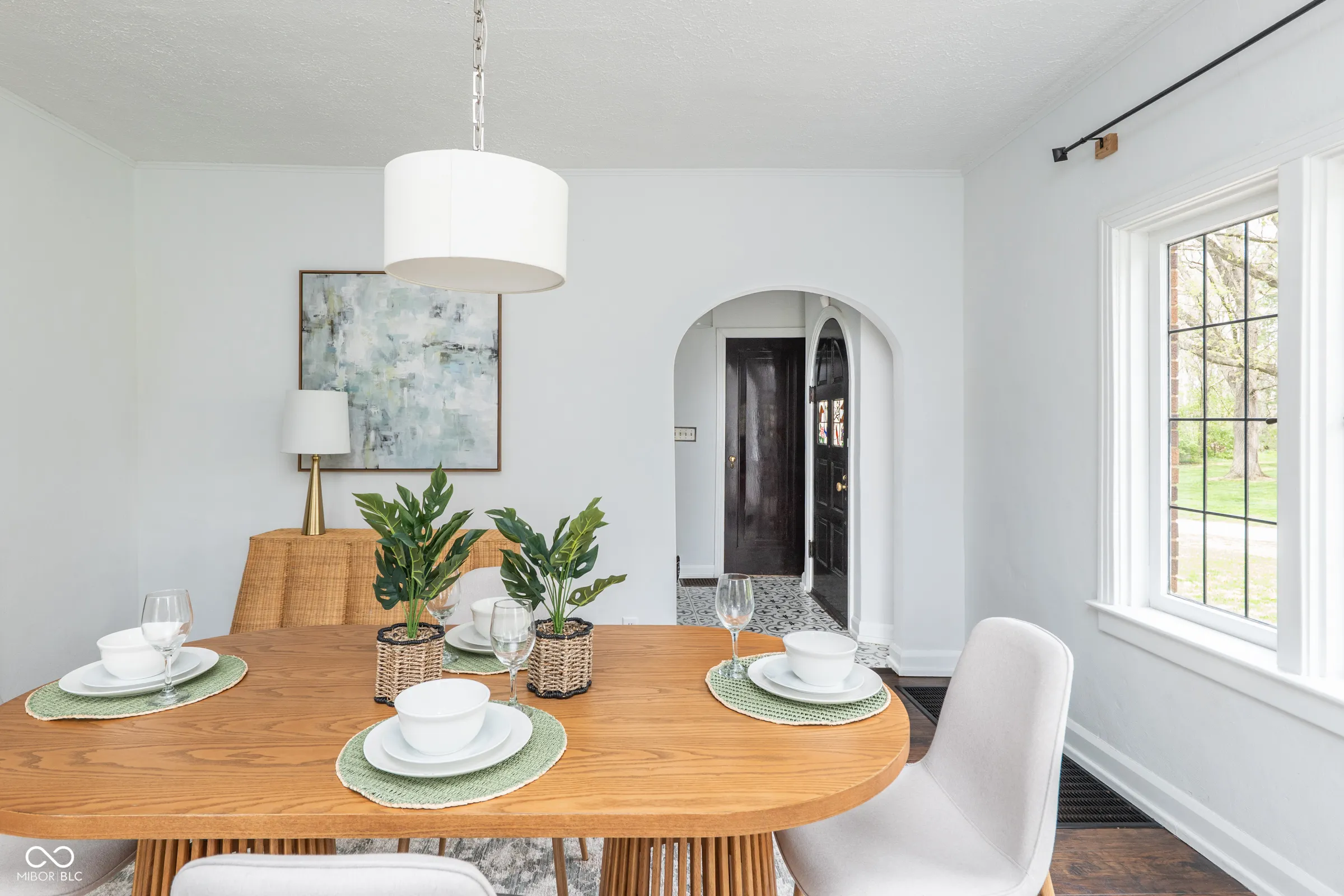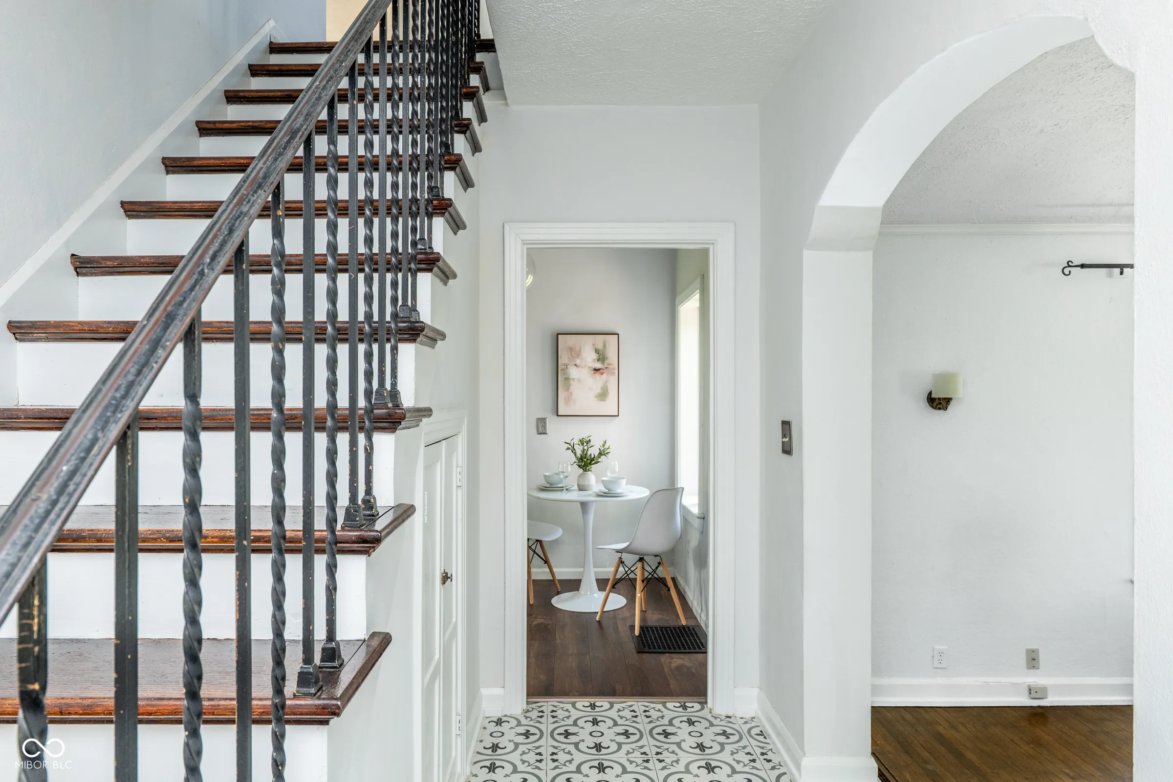 Step back in time without giving up a thing. Built in 1929 and thoughtfully updated for modern living, this stately English Tudor is one of just eight homes on the coveted Lick Creek Drive – a quiet, tucked-away address that feels a world apart while remaining minutes from everything Indianapolis has to offer. The limestone-trimmed arched entry, rich variegated brick, and steep gabled roofline announce something special before you even step inside. Nearly a century of character unfolds across three bedrooms and two and a half baths. Original leaded glass windows cast soft light through every room. Arched doorways, twisted wrought-iron balusters, stained glass panels, and a barrel-vaulted living room ceiling speak to craftsmanship that simply isn’t built anymore. Original hardwood floors – freshly refinished upstairs – run through many rooms, and the living room’s limestone fireplace anchors the space with quiet elegance. The layout flows beautifully: a tile-floored foyer with a graceful staircase, a formal dining room, a sun-drenched kitchen with all-new appliances and new flooring, a breakfast nook, and an enchanting sunroom wrapped in original windows that opens to the backyard. A charming built-in china cabinet nods to the home’s heritage. Recent updates give you total peace of mind: fresh interior paint throughout, newly refinished upstairs hardwood floors, new kitchen and breakfast nook flooring, all-new kitchen appliances, a one-year-old well pump, UV filter and pressure tank, and fresh landscaping. Outside, the .43-acre lot offers space to breathe – a three-car garage, a garden she-shed, and mature trees frame a property that feels like a private retreat. Homes like this don’t come along often. This one has been loved.