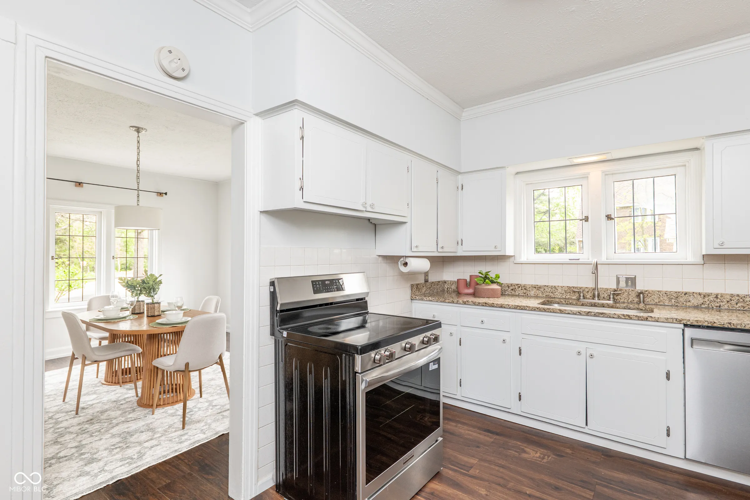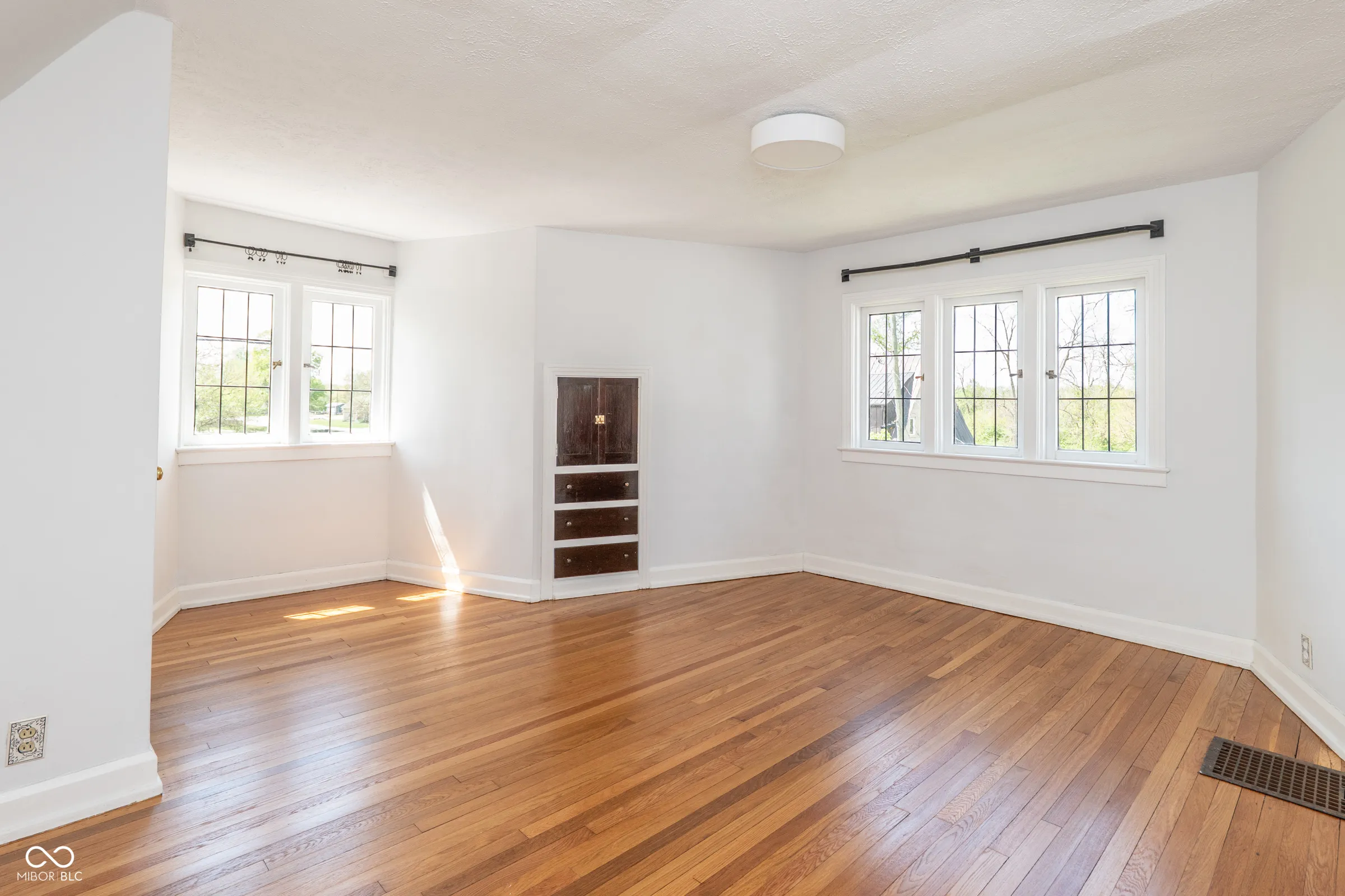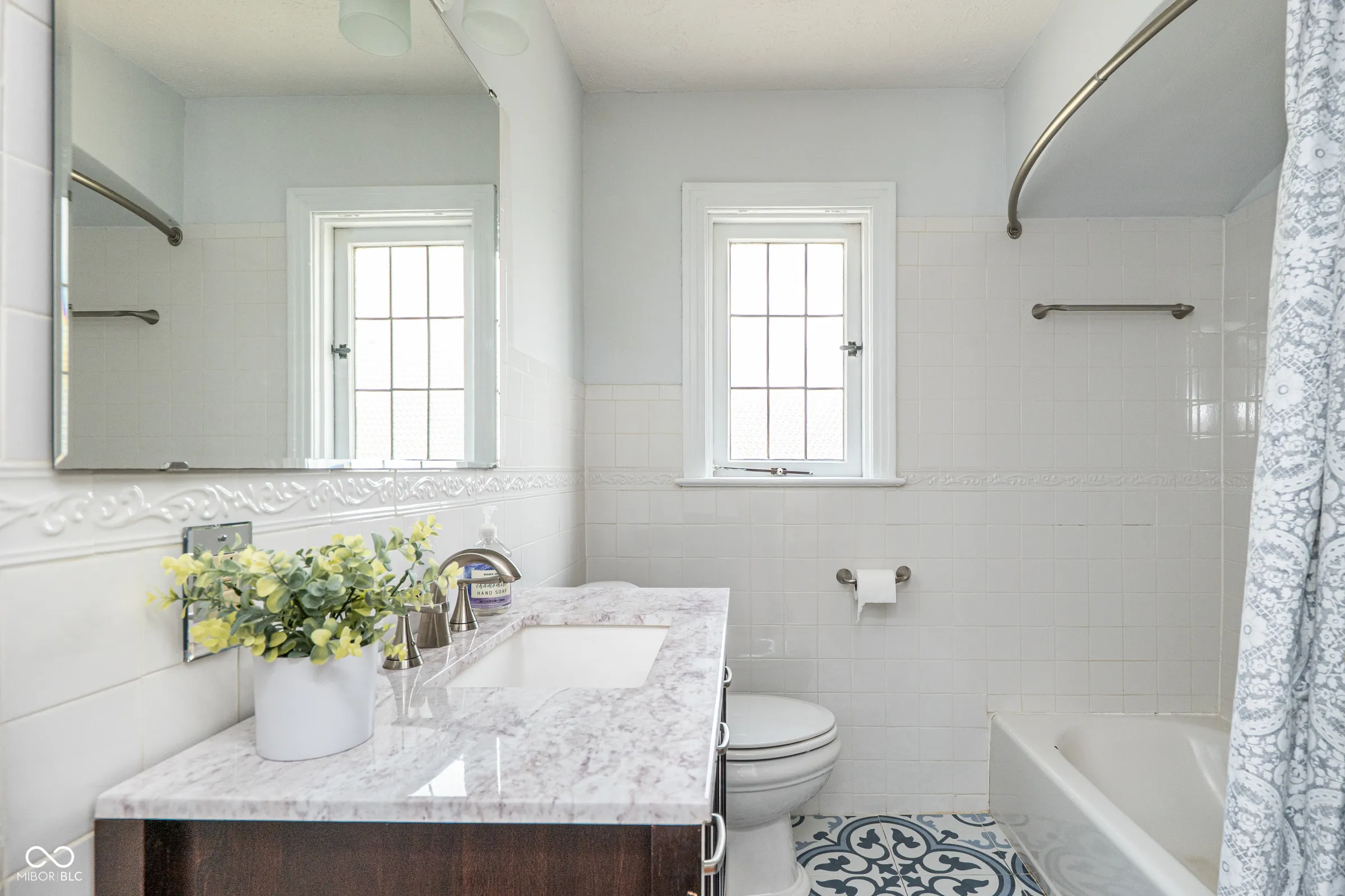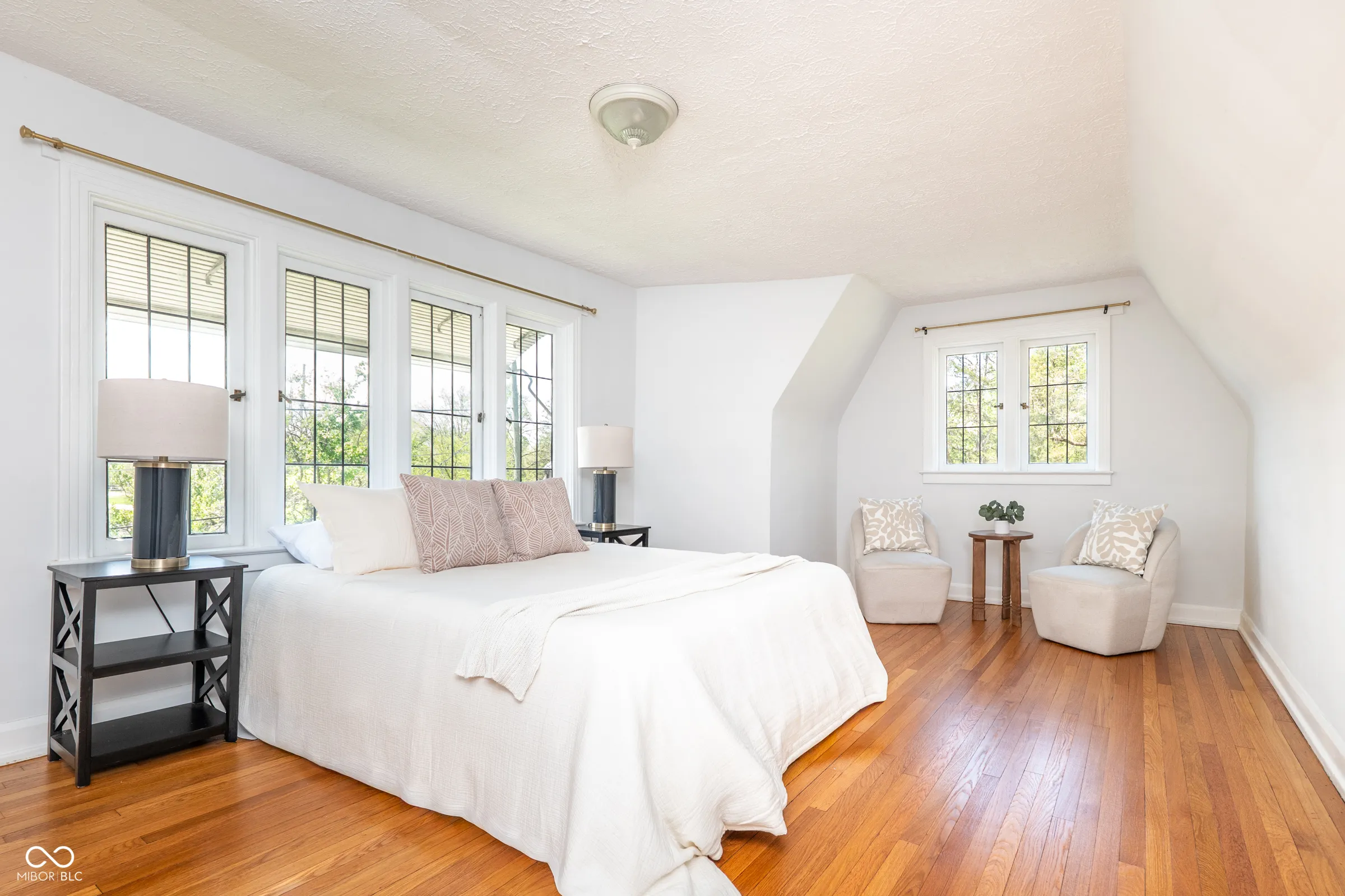 Step back in time without giving up a thing. Built in 1929 and thoughtfully updated for modern living, this stately English Tudor is one of just eight homes on the coveted Lick Creek Drive – a quiet, tucked-away address that feels a world apart while remaining minutes from everything Indianapolis has to offer. The limestone-trimmed arched entry, rich variegated brick, and steep gabled roofline announce something special before you even step inside. Nearly a century of character unfolds across three bedrooms and two and a half baths. Original leaded glass windows cast soft light through every room. Arched doorways, twisted wrought-iron balusters, stained glass panels, and a barrel-vaulted living room ceiling speak to craftsmanship that simply isn’t built anymore. Original hardwood floors – freshly refinished upstairs – run through many rooms, and the living room’s limestone fireplace anchors the space with quiet elegance. The layout flows beautifully: a tile-floored foyer with a graceful staircase, a formal dining room, a sun-drenched kitchen with all-new appliances and new flooring, a breakfast nook, and an enchanting sunroom wrapped in original windows that opens to the backyard. A charming built-in china cabinet nods to the home’s heritage. Recent updates give you total peace of mind: fresh interior paint throughout, newly refinished upstairs hardwood floors, new kitchen and breakfast nook flooring, all-new kitchen appliances, a one-year-old well pump, UV filter and pressure tank, and fresh landscaping. Outside, the .43-acre lot offers space to breathe – a three-car garage, a garden she-shed, and mature trees frame a property that feels like a private retreat. Homes like this don’t come along often. This one has been loved.