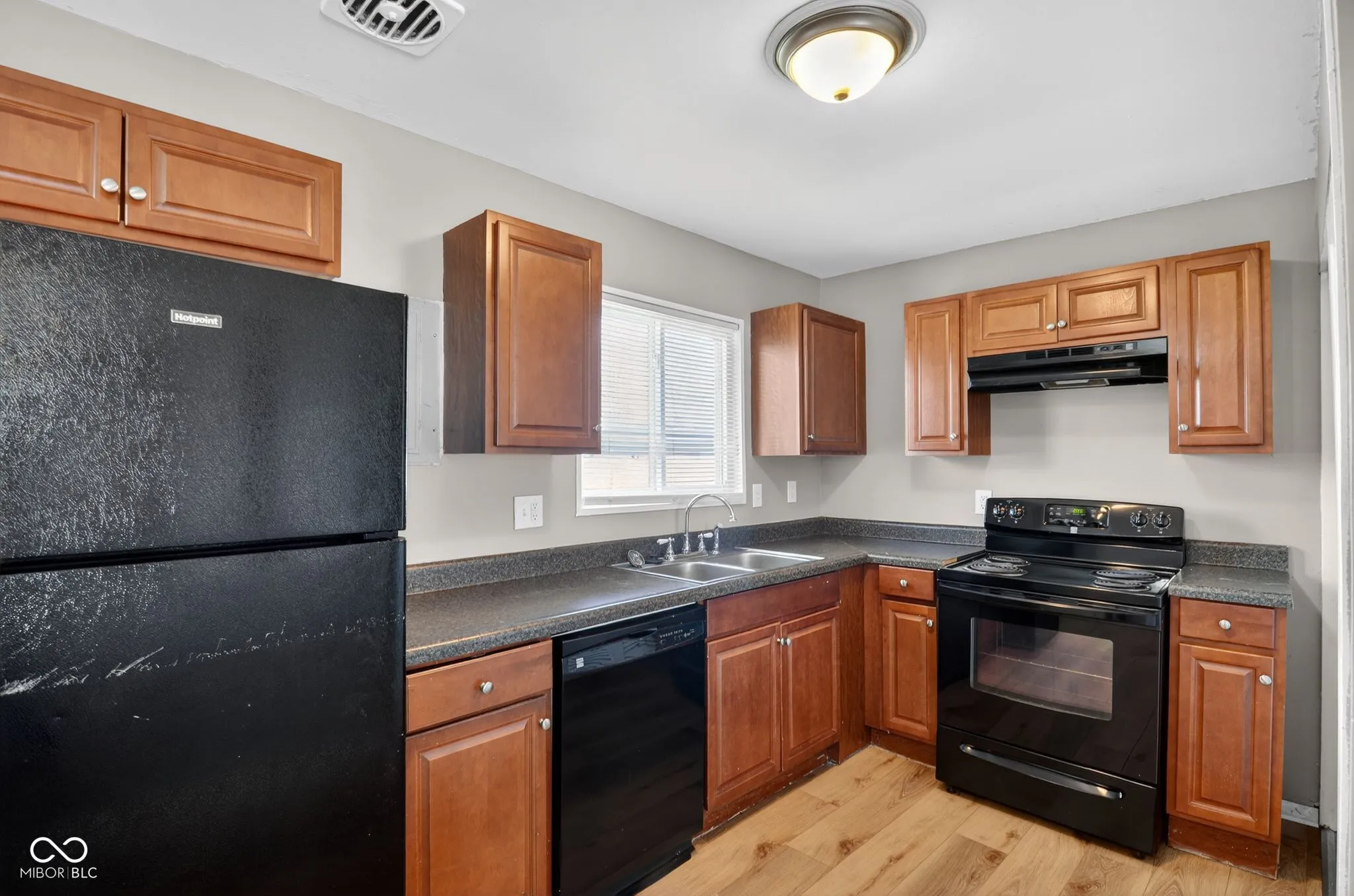 Discover this move-in-ready ranch-style home at 296 Ticen St, offering the perfect blend of modern updates and functional living in the heart of Beech Grove. The inviting interior features a spacious open-concept living and dining area highlighted by beautiful dark wood-look flooring, neutral grey tones, and abundant natural light. The updated kitchen is equipped with rich wood cabinetry, a full black appliance package, and a convenient breakfast bar that overlooks the main living space. This well-maintained home includes three comfortable bedrooms with plush carpeting and a clean, updated bathroom. Also includes an attached garage, providing ample space for parking, a workshop, or additional storage. Outside, the large, level, and fully fenced backyard-complete with mature trees-offers a private oasis for outdoor activities and gatherings. Situated in a quiet, established neighborhood just minutes from local schools and the vibrant Main Street corridor, this home provides excellent value and classic charm.