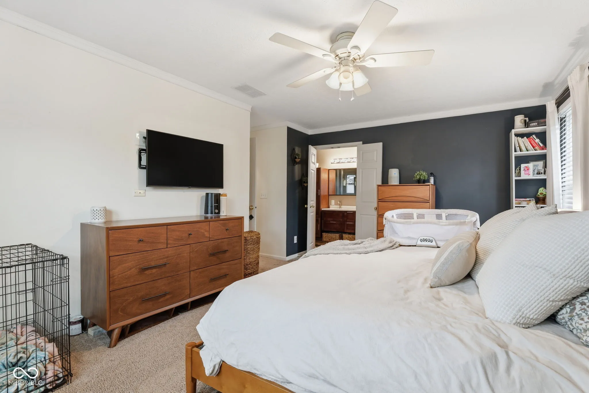 Nestled gracefully in the Coppermill subdivision on a corner lot, this beautiful 2-story house is waiting to be made into your next home. Prepare to be charmed by the heart of this residence, where an open floor plan invites a sense of spaciousness and ease. The living room, with its beautiful fireplace, opens up to the kitchen fully equip with an island, beautiful appliances, and views of the wonderful outdoor space. Additional entertaining space is jsut around the corner with a formal dining room that leads directly into the family room. All of which are built to entertain. Making your way upstairs you will find the two spacious bedrooms complete with a bathroom to be shared. Onto the primary suite that comes complete with a double sink, walk in closet, and plenty of space to unwind. Headed back downstairs you will find a fully finished two car garage complete with insulation, a Mini-Split system, epoxy flooring, and plenty of room for storage. Making it the perfect place to knock out all of those projects you’ve been waiting to get to. The neighborhood is in perfect proximity to Eagle Creek Park as well as all other major amenities to make this house a home. Schedule a Showing Today!!