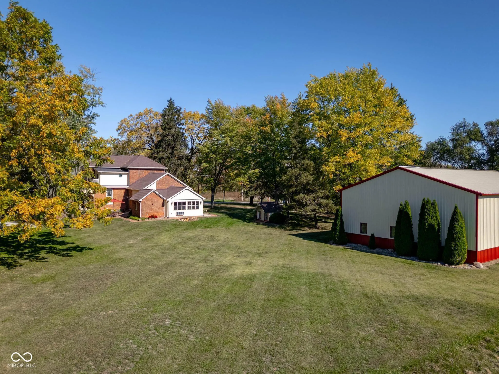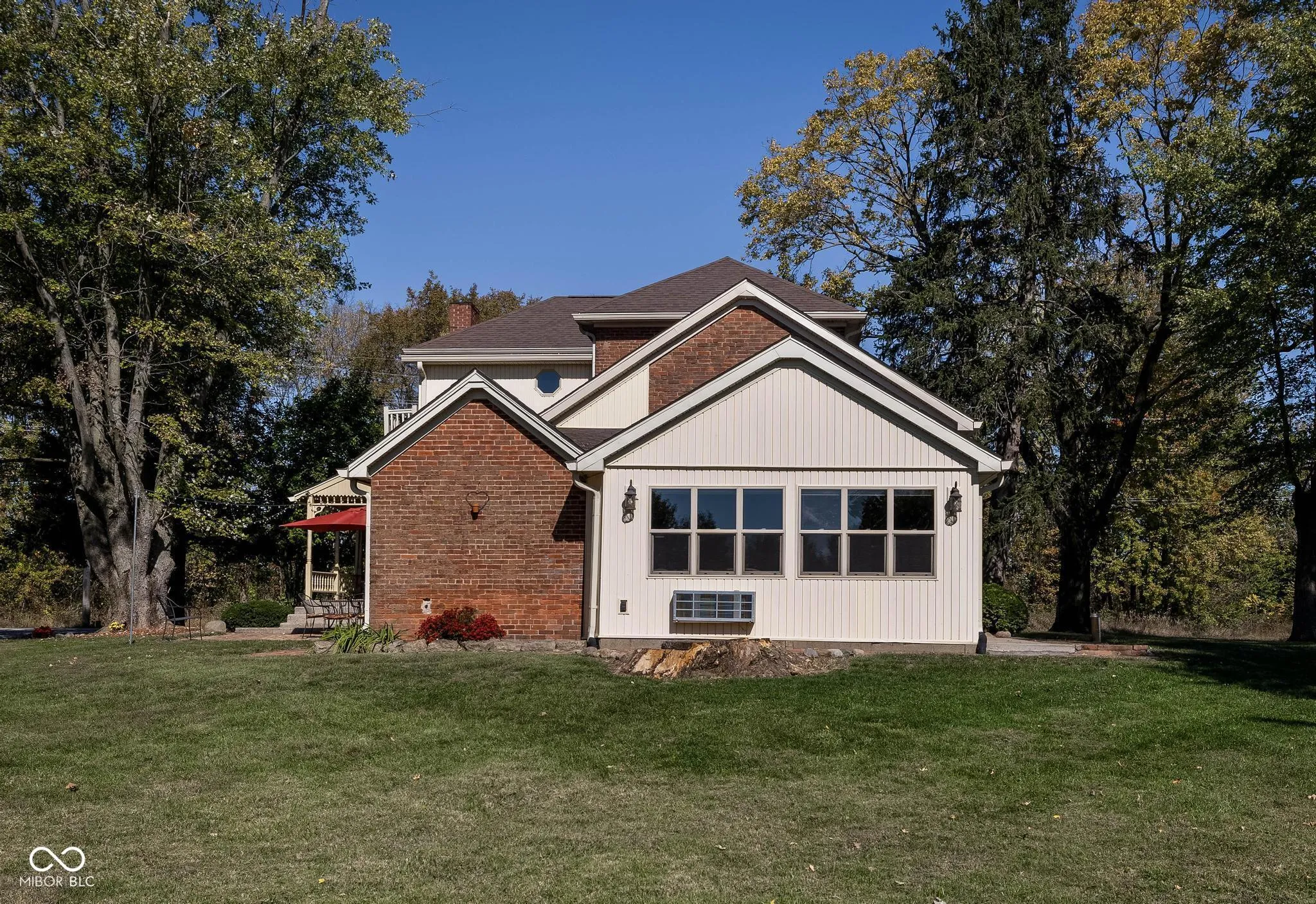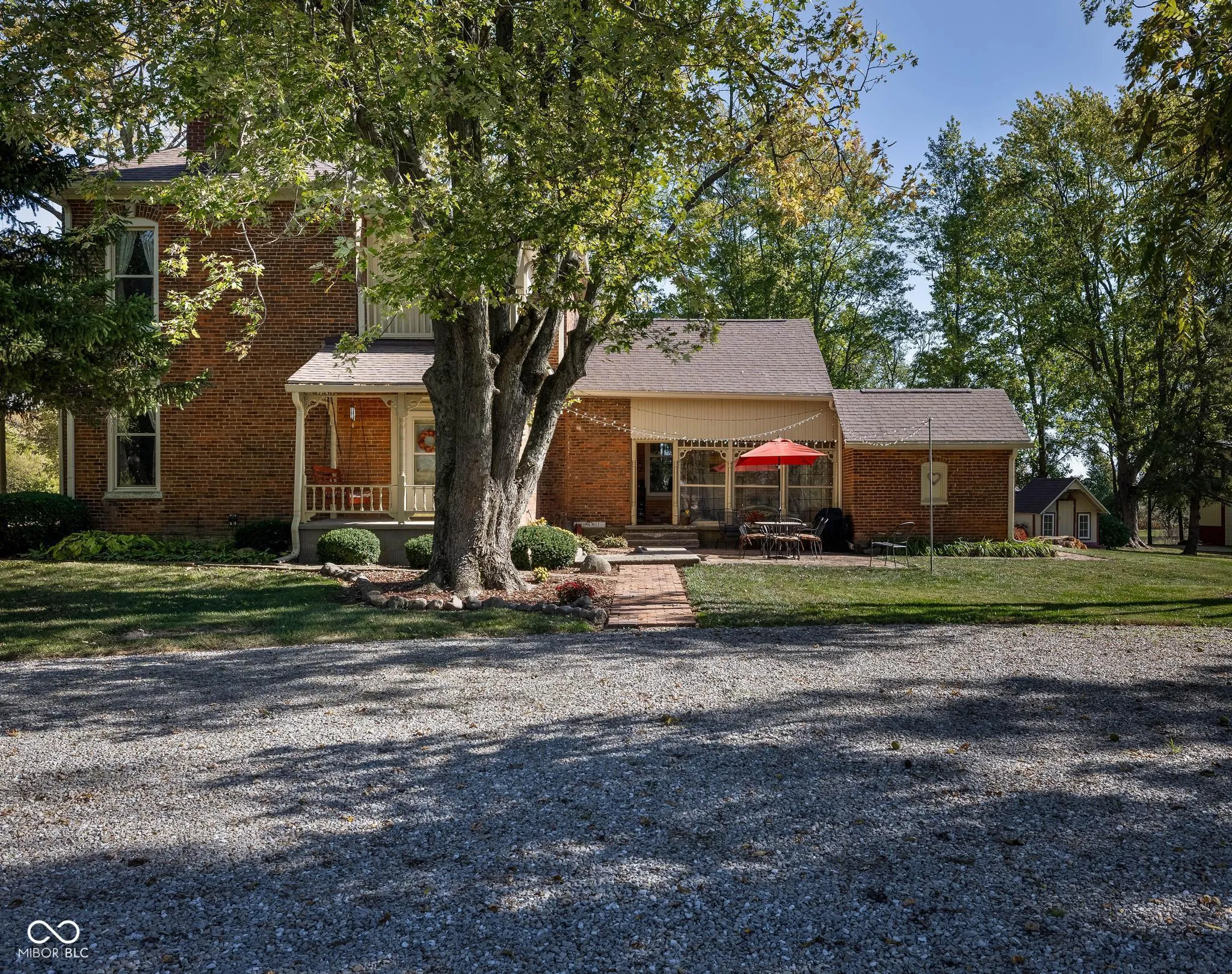 Step into timeless elegance with this beautifully restored 4-bedroom, 2.5-bath brick estate, where historic charm meets modern comfort. Built in 1876 and meticulously maintained, this remarkable home offers soaring 10-foot ceilings on the main level & 9-foot ceilings upstairs, creating a bright, open, grand living environment. Rich in character, the home showcases warm hardwood floors, detailed woodwork, & intricate millwork throughout. The kitchen blends style and function w/ quartz countertops & custom solid oak cabinetry, offering both beauty & durability. The dining room serves as a true centerpiece, featuring a custom-built cabinet with leaded glass display doors & integrated lighting-expertly crafted to complement the home’s historic integrity. The spacious primary suite features a custom-built walk-in closet & a luxurious en-suite bath w/ garden tub & walk-in shower w/dual shower heads for a spa-like experience. A versatile fourth bedroom offers the flexibility to function as a private home office, ideal for remote work, guest space, or a quiet retreat-complete with a closet for full bedroom functionality. A large four-seasons room-complete w/its own heating and cooling system-provides the perfect year-round space for a family room, entertaining area, or relaxing retreat. Outside, a 2,560 sq ft pole barn w/concrete floor adds incredible versatility to the property, providing garage space for vehicles and easily accommodating a large RV, boat, or equipment. Barn also includes a dedicated workshop & 2 lofts, offering additional storage, workspace, or creative possibilities. Set on 5.25 scenic acres, this property offers unmatched tranquility with mature trees, a winding creek, and a natural spring. The setting provides both privacy and natural beauty-ideal for those seeking a peaceful escape without sacrificing convenience. Located just 15 minutes from Greenfield, Fortville, and Pendleton, and approximately 35-40 minutes to downtown Indianapolis.