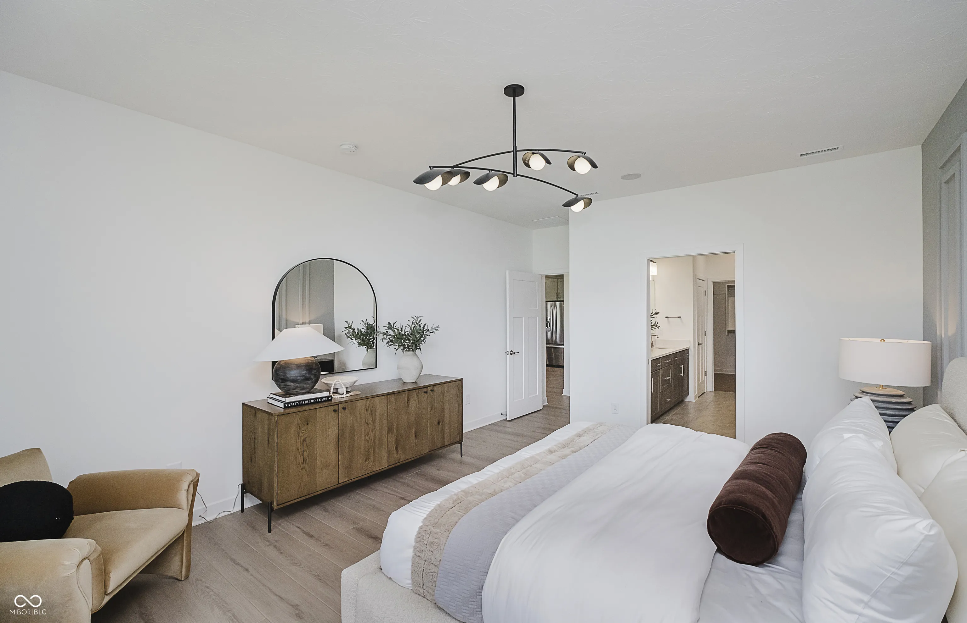 Discover the charm of the Palmary floorplan by Pulte Homes, available in the sought-after Kimblewick by Del Webb, a distinguished age-restricted community. This thoughtfully designed home offers a modern kitchen featuring creamy white cabinetry, Calacatta Elysio 3cm Quartz countertops, built-in gas appliances, and a spacious island perfect for cooking and gathering. The kitchen flows effortlessly into the gathering room with fireplace and cafe dining area, creating an open and inviting space for daily living and entertaining. Step outside to the covered patio, ideal for outdoor relaxation or hosting guests. The luxurious owner’s suite is a private retreat, complete with a tiled shower, double-sink vanity, and a generous walk-in closet. Versatility is key with the flex room with doors situated just off the foyer, this space can easily be transformed into an extra bedroom, a quiet study, or a home office, catering to your specific needs. Additional bedroom with convenient full bath is located in the front home to provide separation from the Owner’s Suite. Luxury vinyl plank flooring spans the home, combining durability with timeless beauty. The HOA includes full cable and high-speed internet in the monthly dues, offering exceptional value and added convenience for residents in this community. The 13,000 sq. ft. clubhouse serves as the community’s social and recreational hub, featuring both indoor and outdoor pools, patio lounge areas, and a range of fitness options including a state-of-the-art gym, tennis and pickleball courts, and a golf simulator. Outdoor enthusiasts will appreciate the trails, parks, and activity spaces that promote community connection and exploration. Conveniently located south of 151st Street, Kimblewick offers luxury living, nature’s tranquility, and easy access to the neighborhood’s amenities. Photos of similar model.