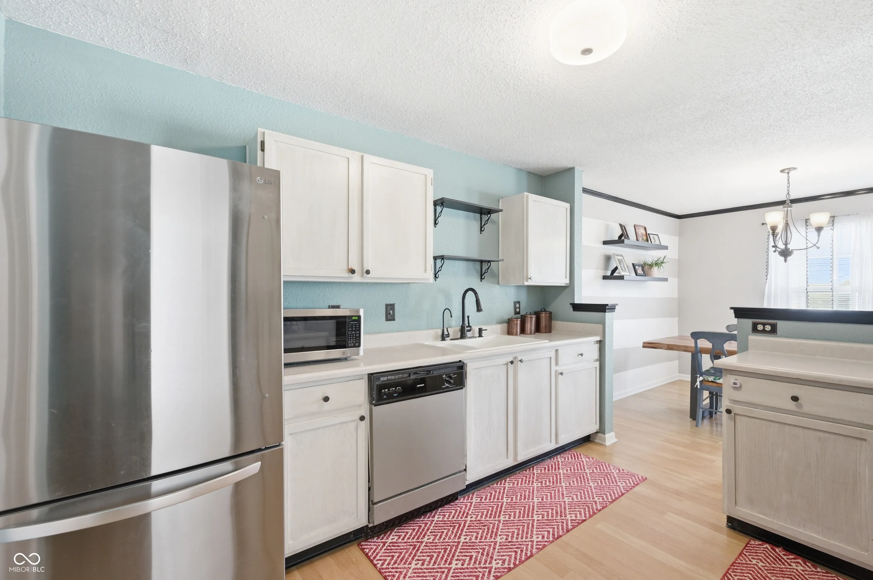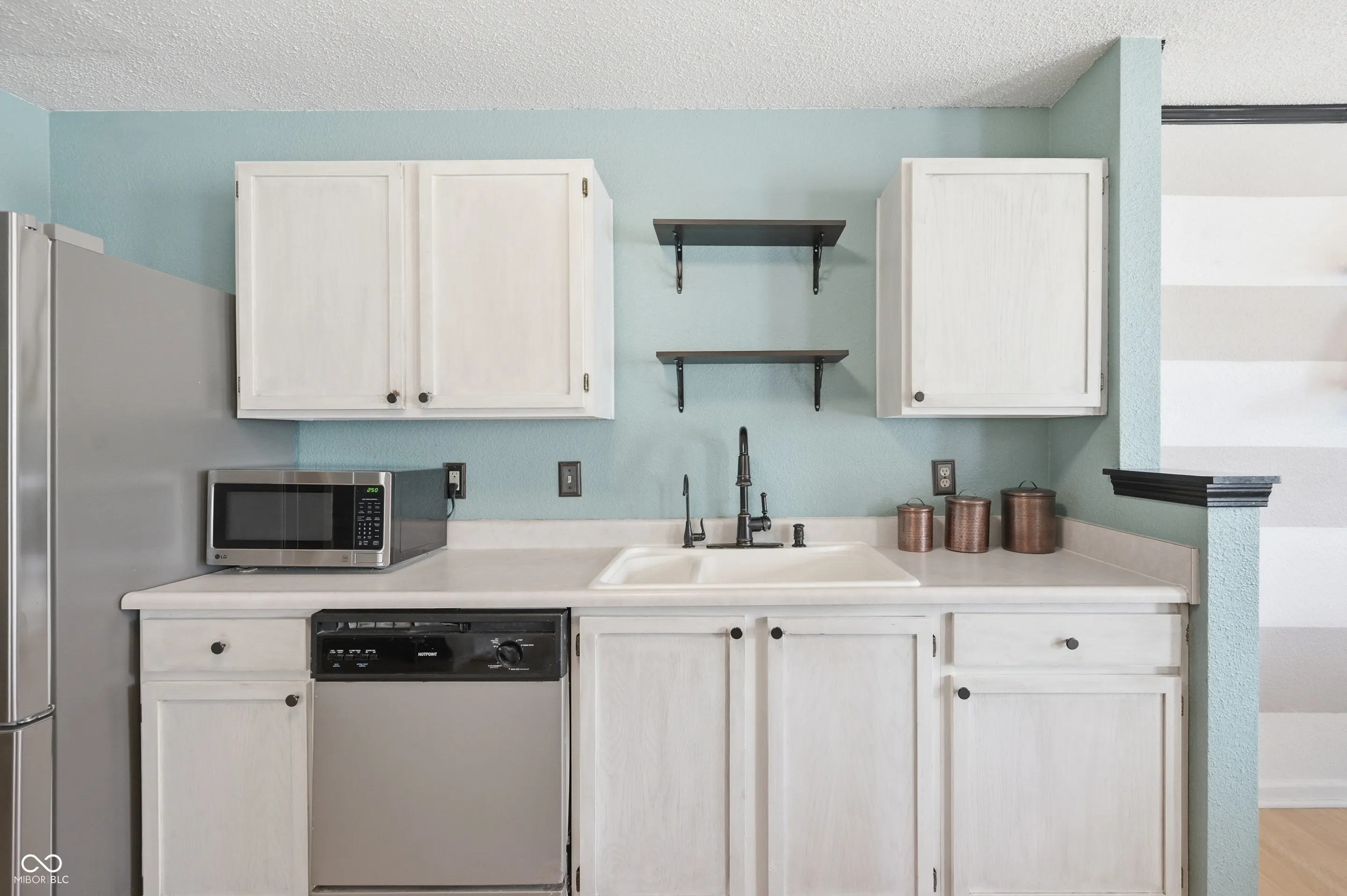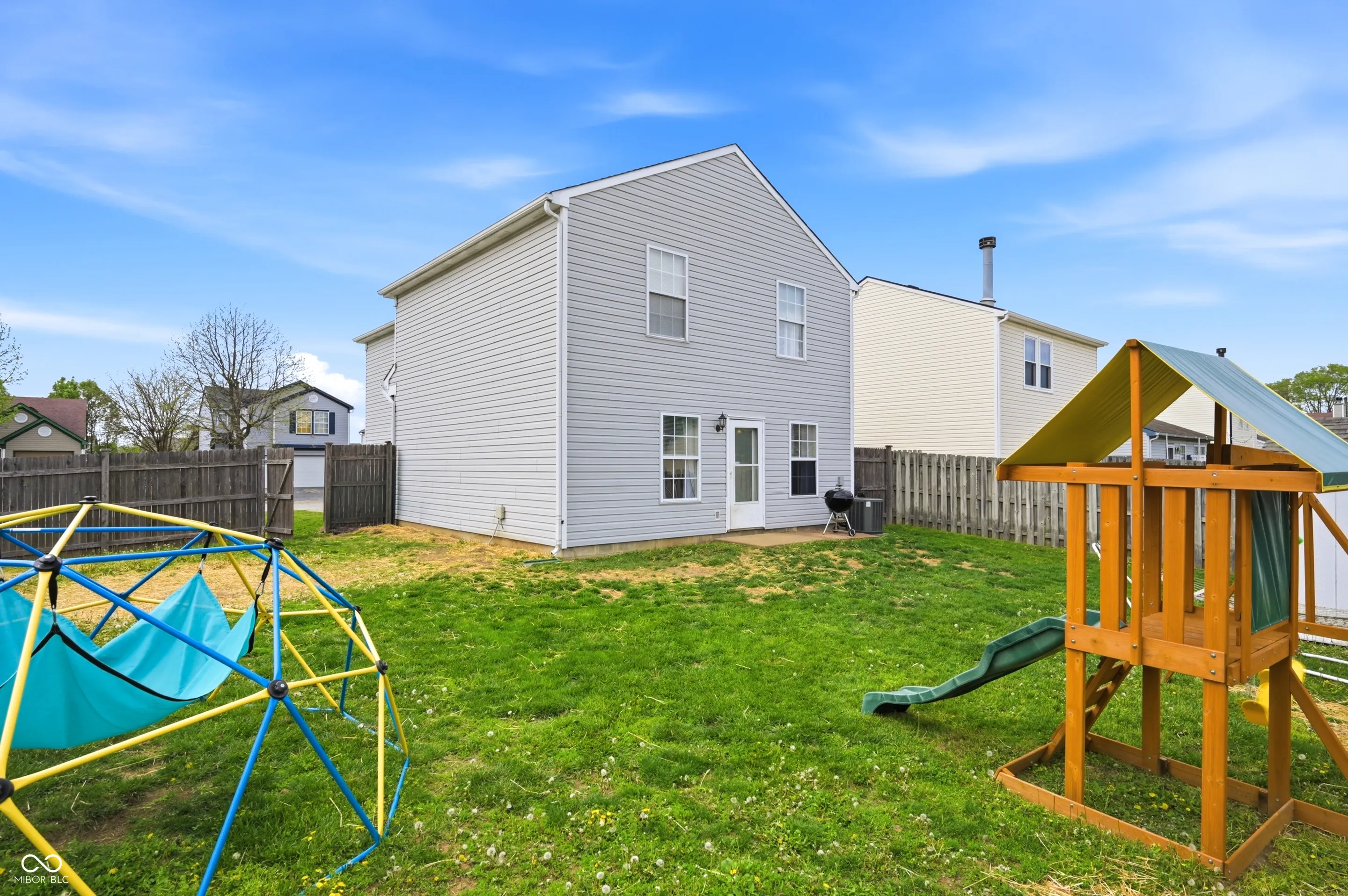 Welcome home to this exceptionally maintained 3 bedroom, 2.5 bath twostory in Greenwood’s desirable Clearbrook Lakes. From the charming curb appeal and covered entry to the bright, open main level, this 1,646 sq ft home is designed for easy everyday living. A large living room welcomes you with neutral paint, updated lighting and plenty of natural light. The eatin kitchen features painted cabinetry, solidsurface counters, stainless steel appliances, open shelving and a convenient future breakfast bar that flows into the dining area with statement stripe accent wall. Upstairs, the expansive primary suite offers laminate wood flooring, a ceiling fan and room for a sitting area or home office. Two additional generously sized bedrooms – share a full hall bath. All baths are nicely updated, including a crisp main bath with long vanity and a refreshed powder room on the main level. A dedicated laundry/mechanical room keeps chores out of sight. Outside, enjoy one of the neighborhood’s larger lots: a fully fenced backyard with concrete patio, play set area and storage shed – perfect for pets, gardening and play. Located minutes from US31, I65, shopping and dining, and served by Greenwood Community schools, this home combines space, style and convenience at an outstanding value. Don’t miss this movein ready opportunity!
