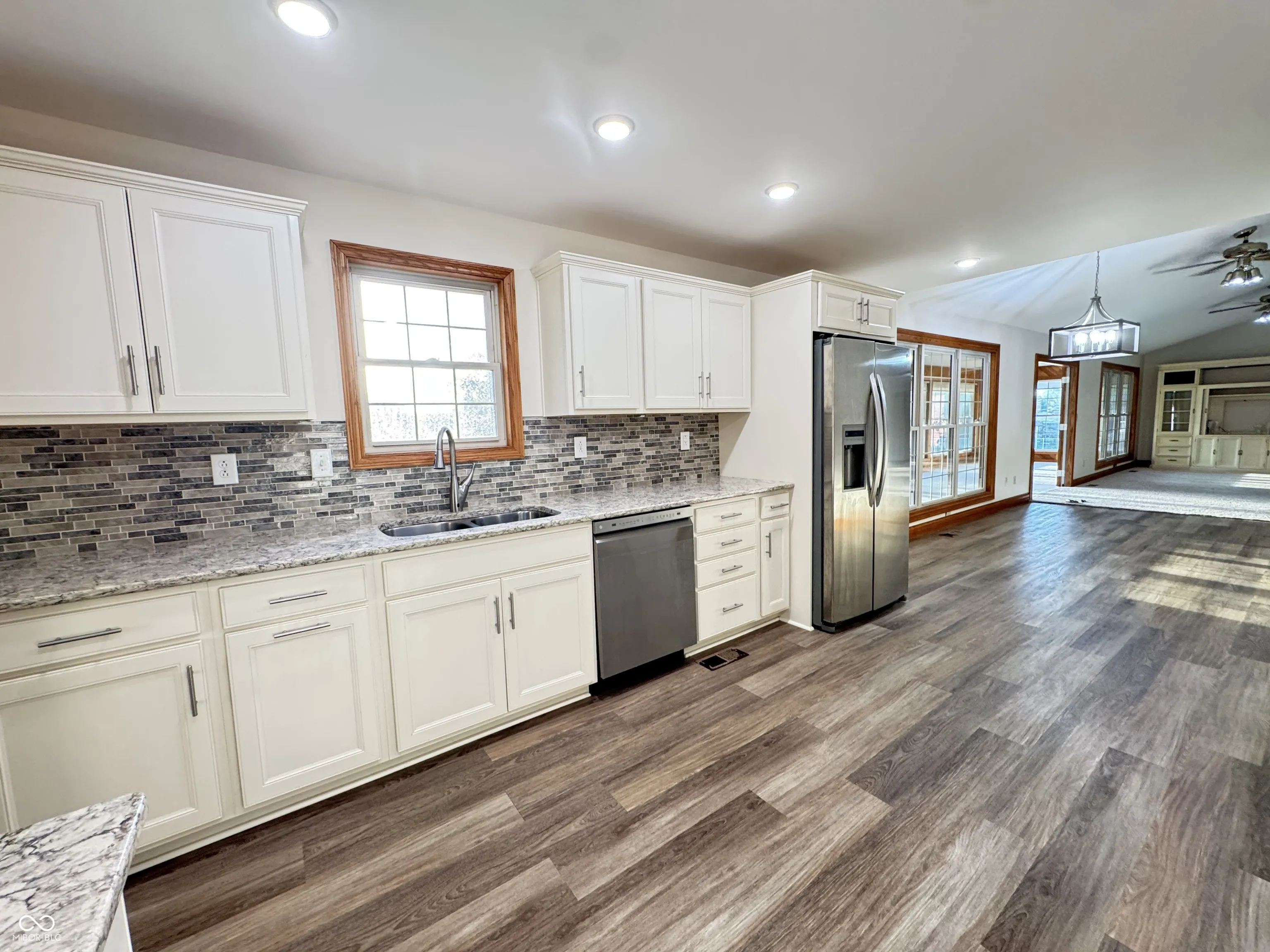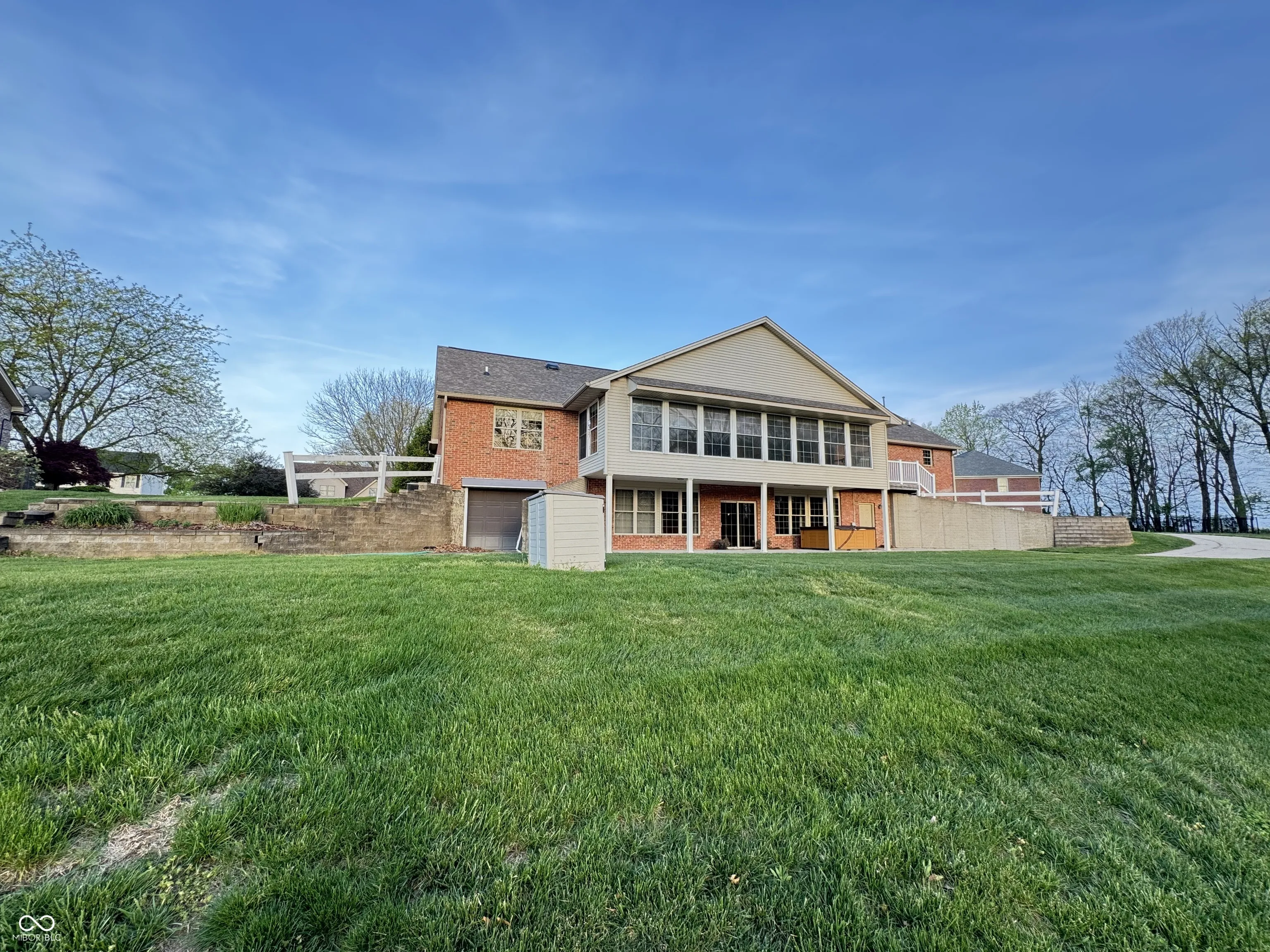 WELCOME HOME to a STUNNING, BRICK, LAKESIDE BEAUTY in a well established neighborhood sitting pretty on almost an acre of ground! You will love the half circle driveway which provides plenty of guest parking when you entertain. Upon entering the expansive living area, your eyes will spot the massive sunroom and pull you in to the views and calming feel. Encompassing well over 5,000 (+/-) square feet, featuring an open floor plan creating a sense of boundless freedom. The vaulted ceiling elevates the space, offering an airy atmosphere perfect for comfortable living. The heart of this home is truly found in its well-appointed kitchen, showcasing a stylish backsplash, elegant stone countertops and Shaker cabinetry. The office has perfect views of the lake, large, double door storage area & easy access to a full bath. The main floor features 3 spacious, bedrooms, HUGE closets, and their own full bathrooms featuring gorgeous, granite vanities & tile flooring for enhanced comfort and privacy. The primary suite closet is 11’x10′!! If you need even more bedrooms there are 2 BONUS rooms on the lower level! The laundry room comes complete with a washer & dryer and conveniently located on the main floor. And as if that is not enough, a quick trip down stairs reveals the FULL WALKOUT basement complete with a massive rec area, 2 private bonus/bed rooms, full bath, another kitchen, mechanical area, massive storage room and access to the downstairs garage. This area is perfect for the lawn mower, gardening tools AND your fishing equipment close to the water! Family time, relaxation, entertaining and fun all await you!