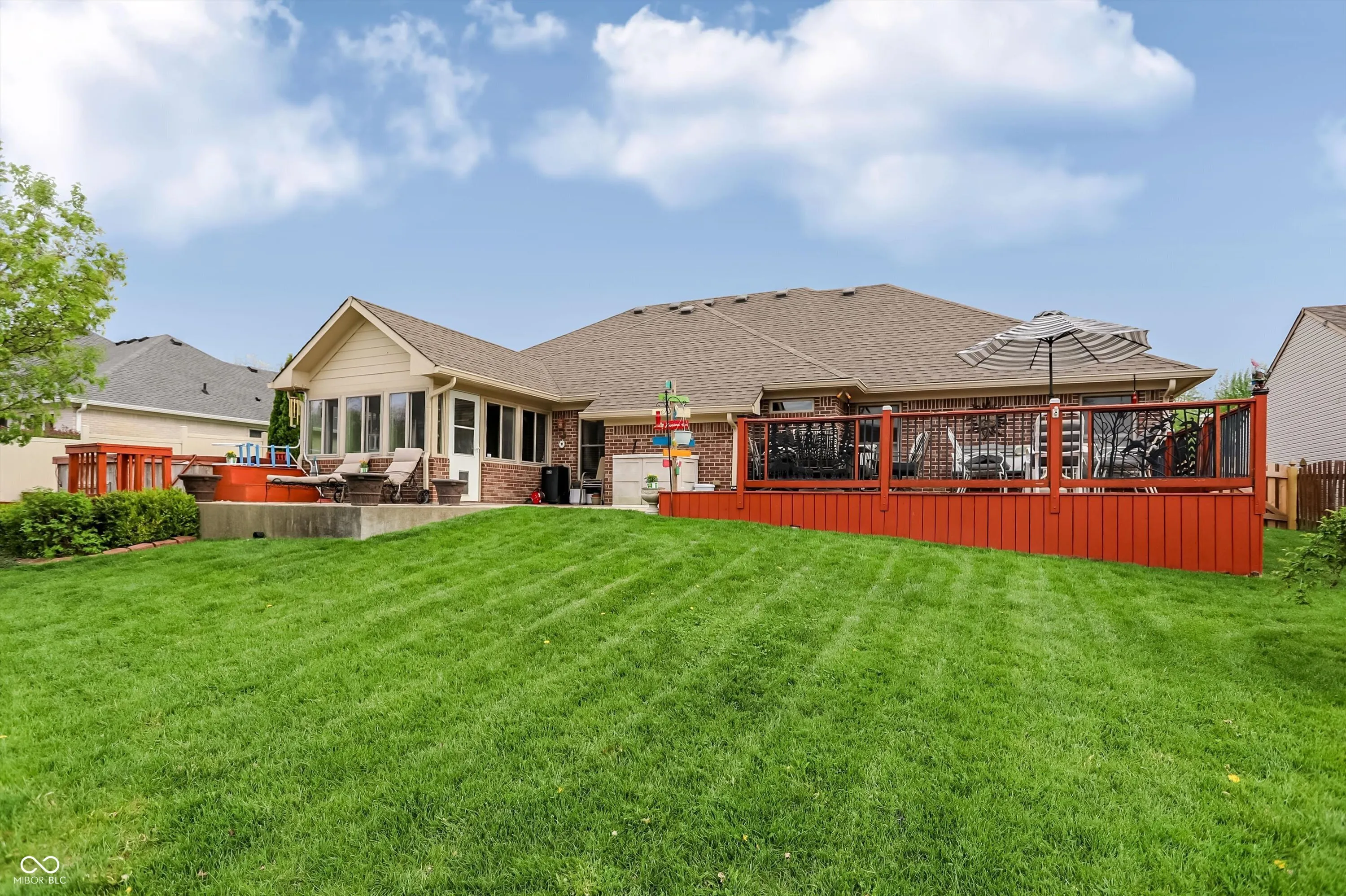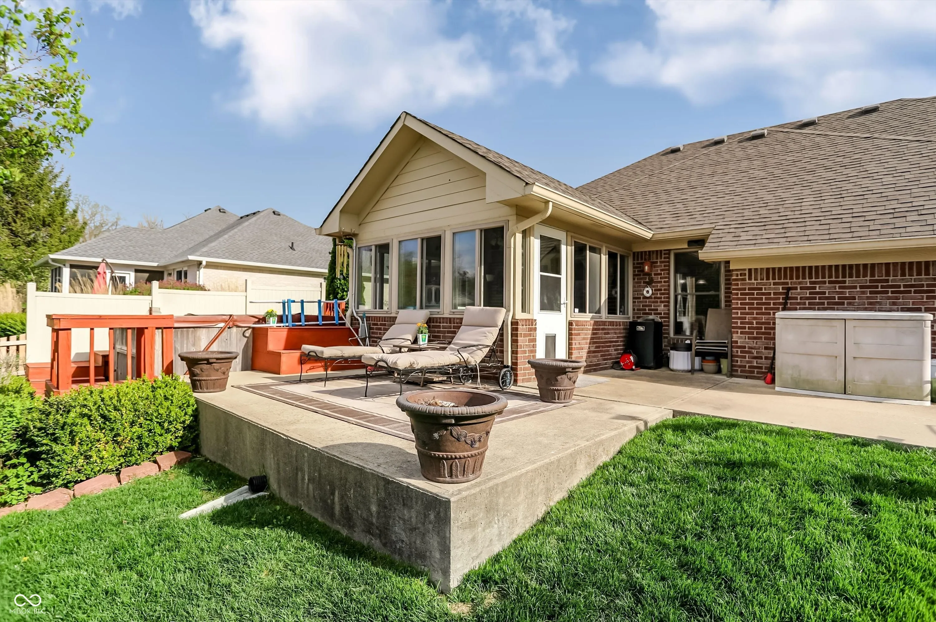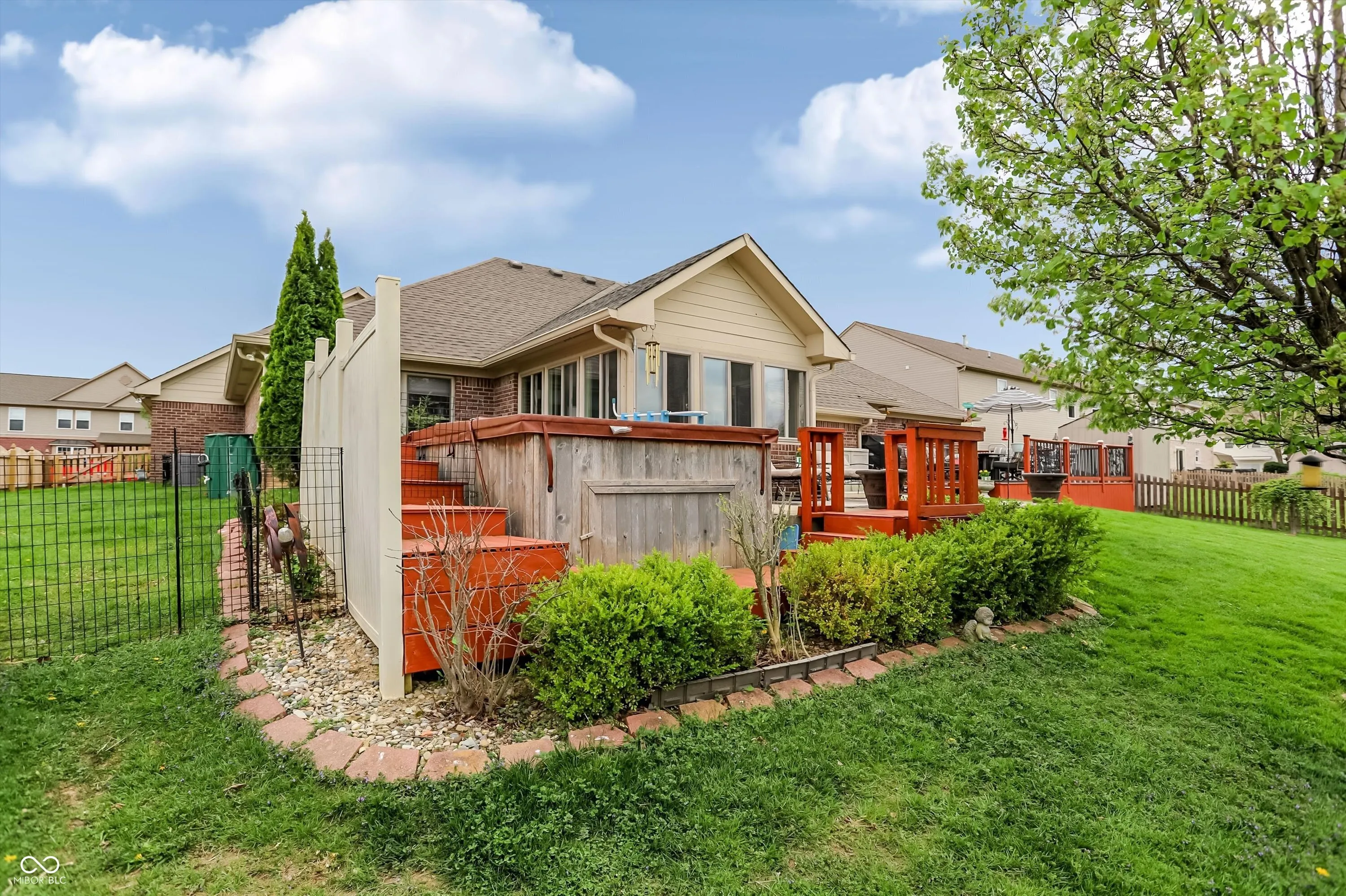 An exceptional opportunity awaits at 8130 Grassy Meadow CT, INDIANAPOLIS, IN, USA, a truly attractive property presented in great condition, designed for those who appreciate serene living and sophisticated comfort. The living room creates an immediate impression with its soaring vaulted ceiling, inviting residents to relax by the warmth of the elegant fireplace, fostering an atmosphere of peaceful repose and gracious entertaining. Culinary aspirations find their perfect setting in the thoughtfully designed kitchen, featuring gleaming stone countertops, a practical kitchen peninsula, and a convenient kitchen bar, all complemented by a stylish backsplash and the efficiency of a double oven and stovetop, making every meal preparation a delightful experience. A sunroom provides a serene haven for quiet contemplation or vibrant conversation, offering a peaceful extension of the living space. A bedroom serves as an expansive sanctuary distinguished by a sophisticated tray ceiling, offering a sense of elevated design, and complemented by a generously sized walk-in closet providing ample storage for personal collections. The bathroom provides a spa-like escape, boasting a spacious double vanity for effortless morning routines, a rejuvenating walk-in shower, and a beautifully appointed tile tub, inviting moments of relaxation and personal care. Beyond the interior, a captivating outdoor living space unfolds, featuring both a welcoming patio and an expansive deck, perfect for alfresco dining and enjoying the tranquil water view, while a charming fire pit invites cozy gatherings and a soothing hot tub offers blissful relaxation, all thoughtfully complemented by a practical shed. The single-story residence, built in 2003 and encompassing 2332 square feet of living area on a generous 11900 square foot lot, presents an open floor plan enhancing the sense of spaciousness, alongside