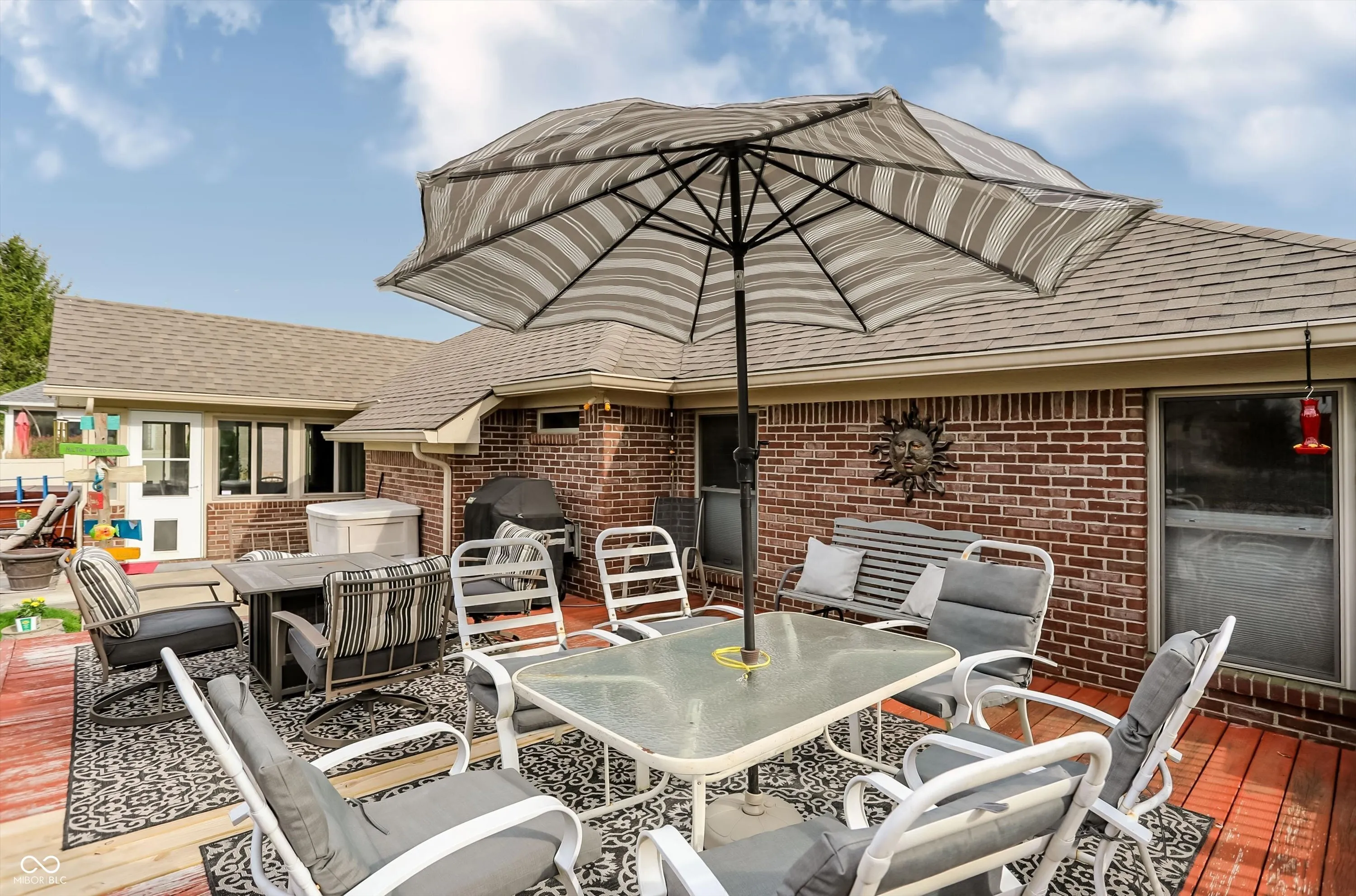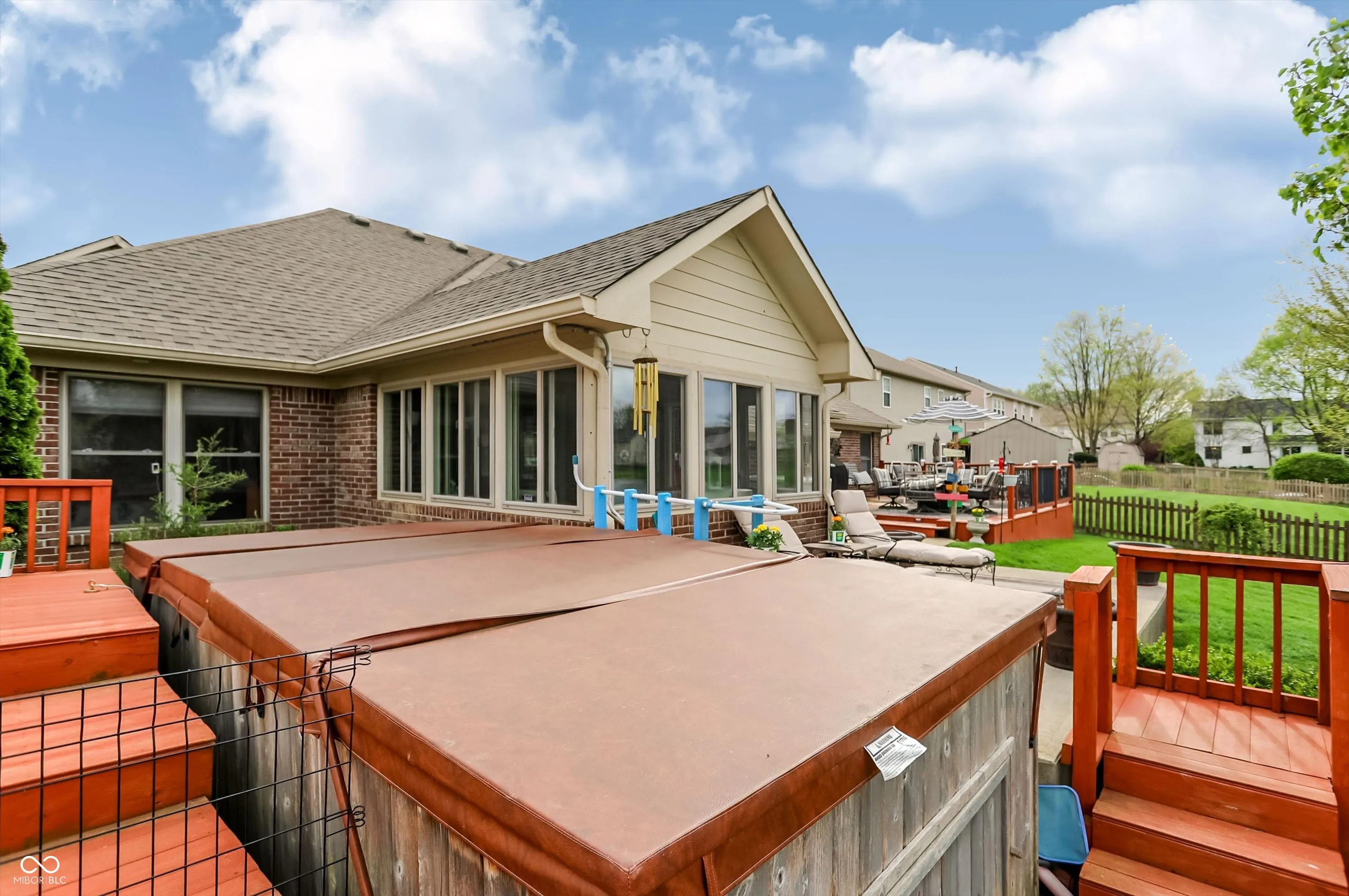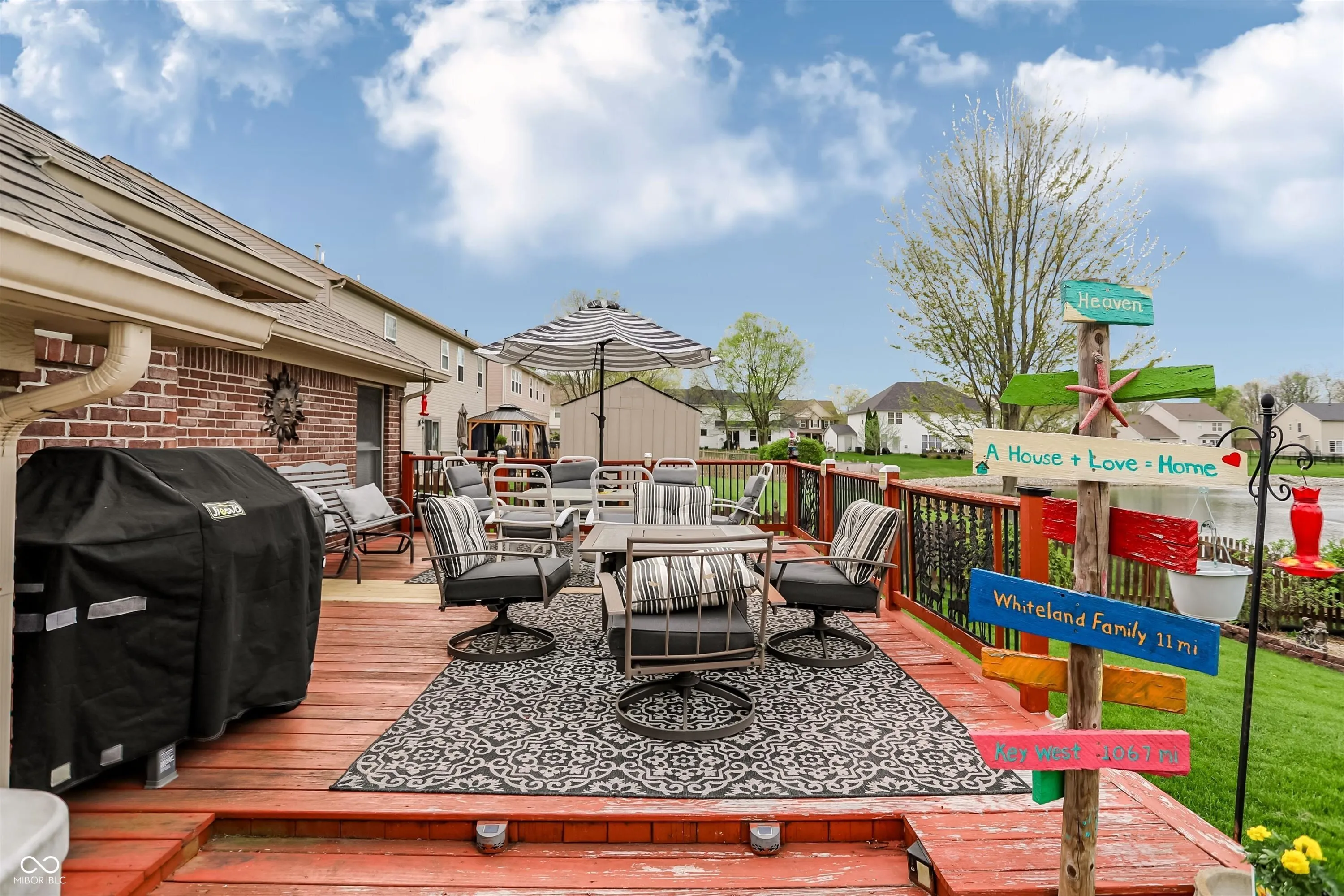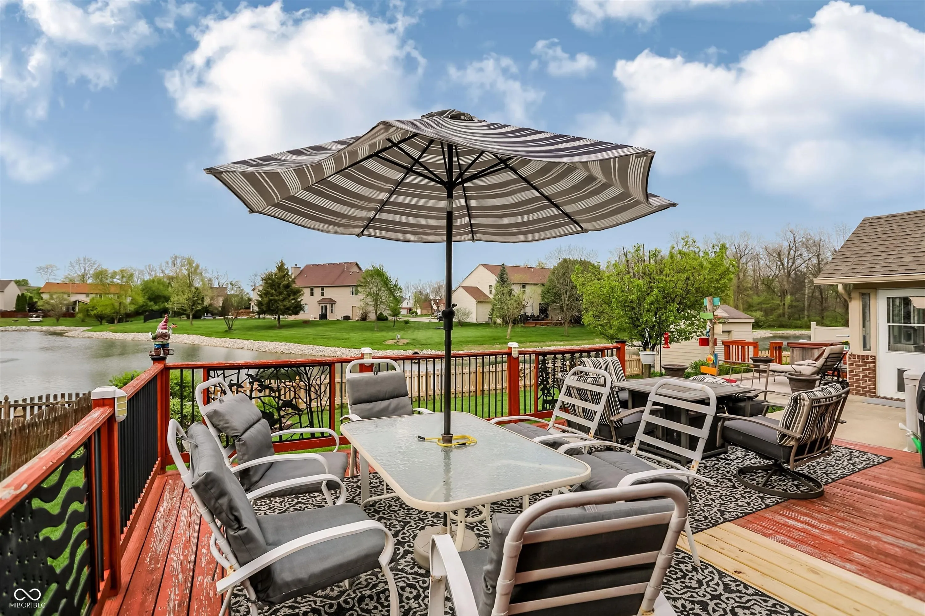 An exceptional opportunity awaits at 8130 Grassy Meadow CT, INDIANAPOLIS, IN, USA, a truly attractive property presented in great condition, designed for those who appreciate serene living and sophisticated comfort. The living room creates an immediate impression with its soaring vaulted ceiling, inviting residents to relax by the warmth of the elegant fireplace, fostering an atmosphere of peaceful repose and gracious entertaining. Culinary aspirations find their perfect setting in the thoughtfully designed kitchen, featuring gleaming stone countertops, a practical kitchen peninsula, and a convenient kitchen bar, all complemented by a stylish backsplash and the efficiency of a double oven and stovetop, making every meal preparation a delightful experience. A sunroom provides a serene haven for quiet contemplation or vibrant conversation, offering a peaceful extension of the living space. A bedroom serves as an expansive sanctuary distinguished by a sophisticated tray ceiling, offering a sense of elevated design, and complemented by a generously sized walk-in closet providing ample storage for personal collections. The bathroom provides a spa-like escape, boasting a spacious double vanity for effortless morning routines, a rejuvenating walk-in shower, and a beautifully appointed tile tub, inviting moments of relaxation and personal care. Beyond the interior, a captivating outdoor living space unfolds, featuring both a welcoming patio and an expansive deck, perfect for alfresco dining and enjoying the tranquil water view, while a charming fire pit invites cozy gatherings and a soothing hot tub offers blissful relaxation, all thoughtfully complemented by a practical shed. The single-story residence, built in 2003 and encompassing 2332 square feet of living area on a generous 11900 square foot lot, presents an open floor plan enhancing the sense of spaciousness, alongside