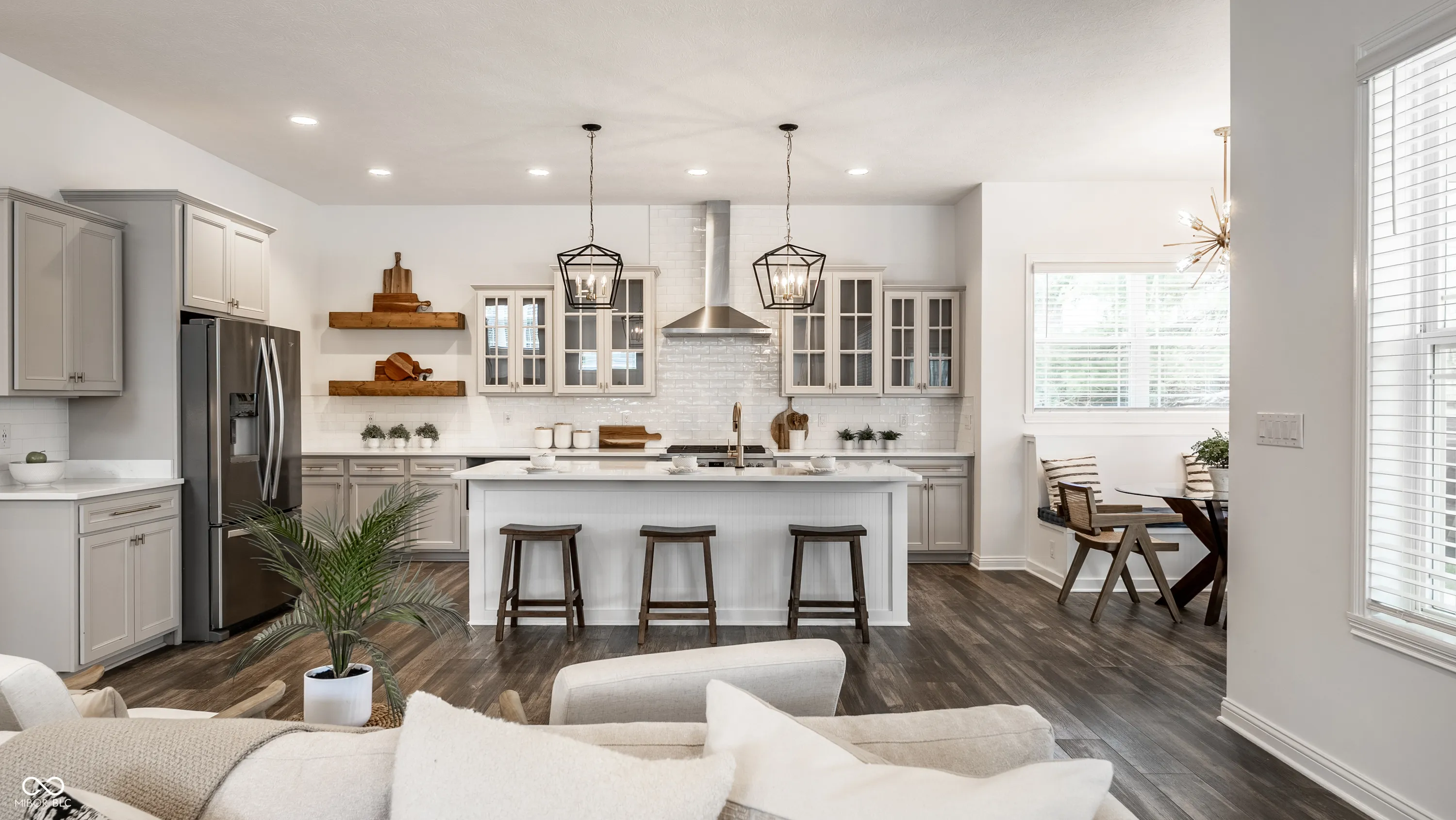 Welcome to your dream home in the heart midtown in Forest Hills-where modern luxury meets the charm of a walkable, historic neighborhood. Built in 2020, this stunning 5-bedroom, 3.5-bath home offers the perfect blend of thoughtful design, high-end finishes, and everyday functionality. Step inside to a light-filled first floor with 10 ft. ceilings featuring expansive windows, a spacious great room, private office with built-in shelving & desk, formal dining room, and a beautifully designed kitchen that opens seamlessly to the main living area-perfect for entertaining. The kitchen boasts a large walk-in pantry, butler’s pantry with beverage fridge, and a cozy breakfast nook with built-in banquette seating. A convenient mudroom with custom lockers and storage connects directly to the oversized 3-car garage. Upstairs, you’ll find 4 generously sized bedrooms, including an incredible primary suite with built-in cabinetry, a large walk-in closet, and a spa-like bath featuring a spacious shower and dual vanities. The upstairs laundry room offers ultimate convenience with access from both the primary suite and hallway. Spacious upper linen closet & hall bathroom with double sinks. The finished basement with 9-foot ceilings expands your living space with a family room, lounge/wine room, exercise room, fifth bedroom, full bath, and abundant storage. Enjoy outdoor living year-round with covered front and back porches. The private, fully fenced backyard is beautifully landscaped and equipped with an irrigation system. The covered back porch, complete with a fireplace and TV, creates the perfect setting for relaxing or entertaining. An additional overhead garage door provides direct backyard access. With incredible flow, timeless design, and all mechanicals just six years old, this home truly offers the best of new construction living in one of the most desirable neighborhoods. This is more than a home-it’s a lifestyle.