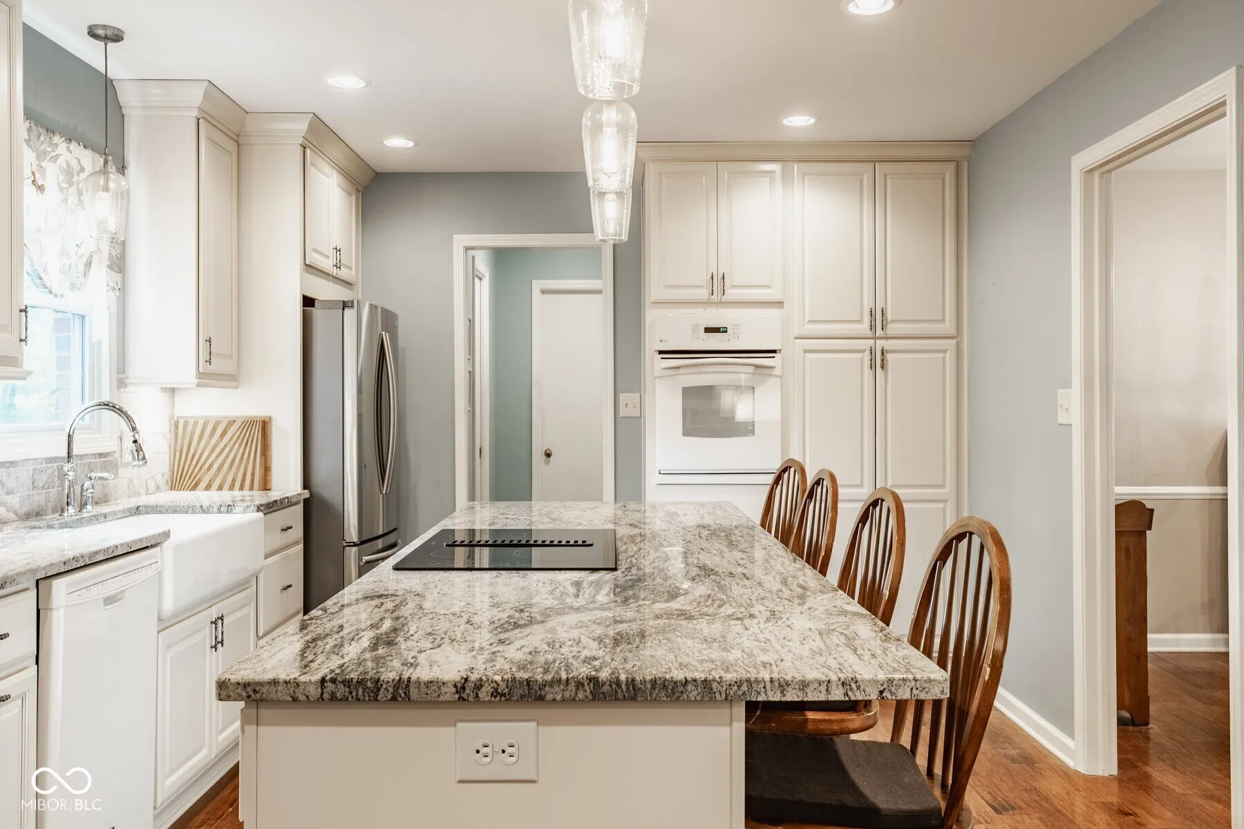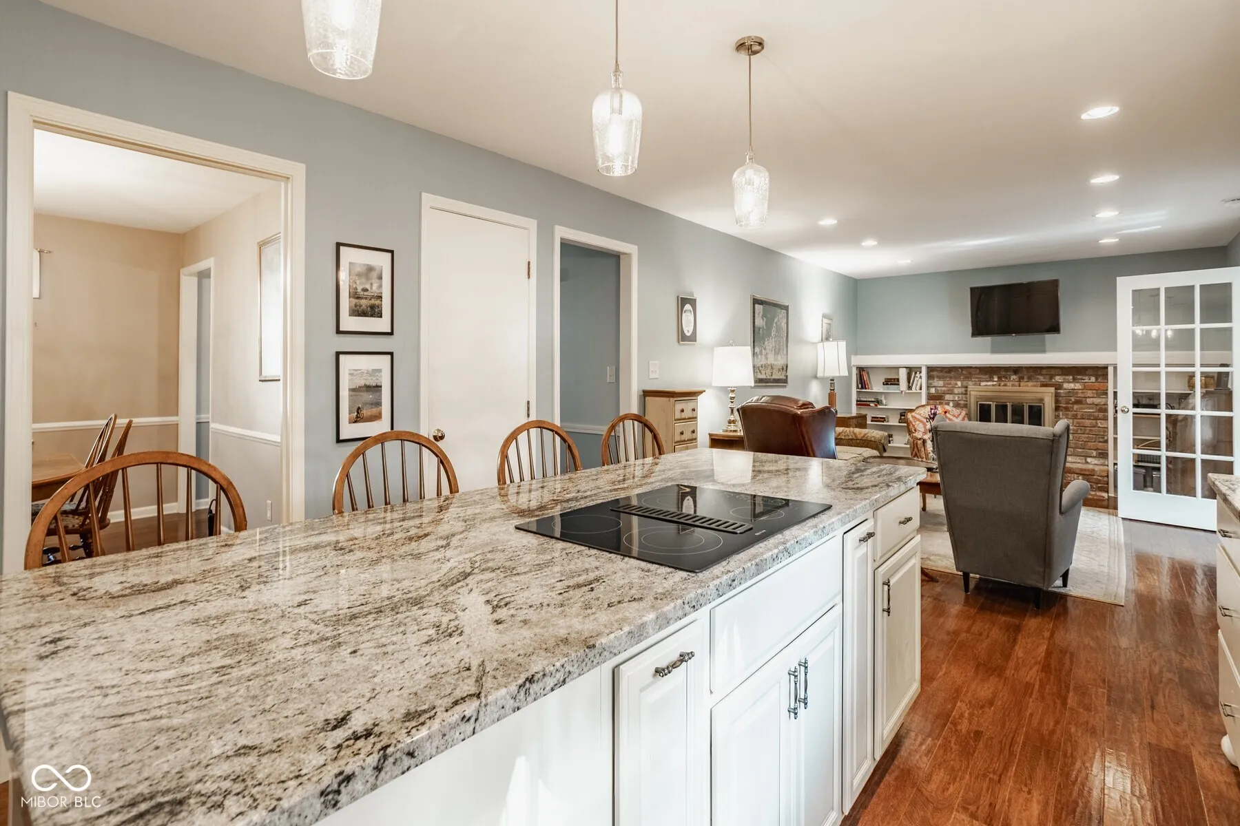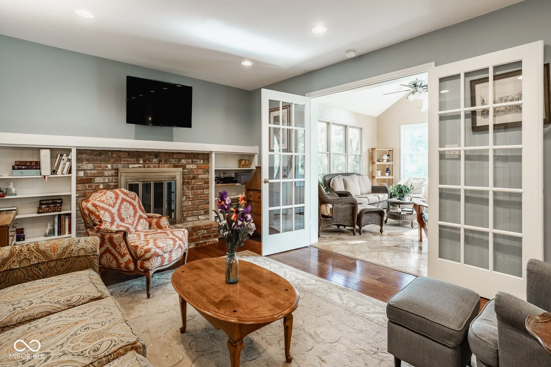 Welcome home to 10155 Briar Creek Lane, where classic charm blends with thoughtful updates on a spacious cul-de-sac lot in Carmel’s coveted Woodlands neighborhood. Enjoy valuable amenities and easy living with access to a community pool and tennis/pickleball courts, paired with convenient proximity to top-rated schools, shopping, dining, parks, and recreation. Inside this beautiful 4 bedroom/2.5 bathroom residence, a light-filled layout offers open sightlines and multiple gathering spaces. The updated kitchen features a 4-seater island, granite countertops, and custom white cabinetry. Connect seamlessly into a cozy living room with a brick fireplace and built-in bookshelves. A showcase, vaulted sunroom with 9 large windows and travertine tiled floors overlooks a vast, fully-fenced green backyard complete with a deck. The main level also includes a dedicated laundry room, half bath, and generous living and dining rooms ideal for everyday living and entertaining. Upstairs, the primary suite offers ample closet space and an updated vanity and shower. Three additional bedrooms with large closets and a full hall bath provide versatility for family, guests, or a home office. An unfinished basement offers excellent storage and potential for future living space. Additional highlights include landscaping, a two-car garage, and an oversized driveway with a basketball goal. Lovingly cared for and curated, 10155 Briar Creek Lane is ready for you.