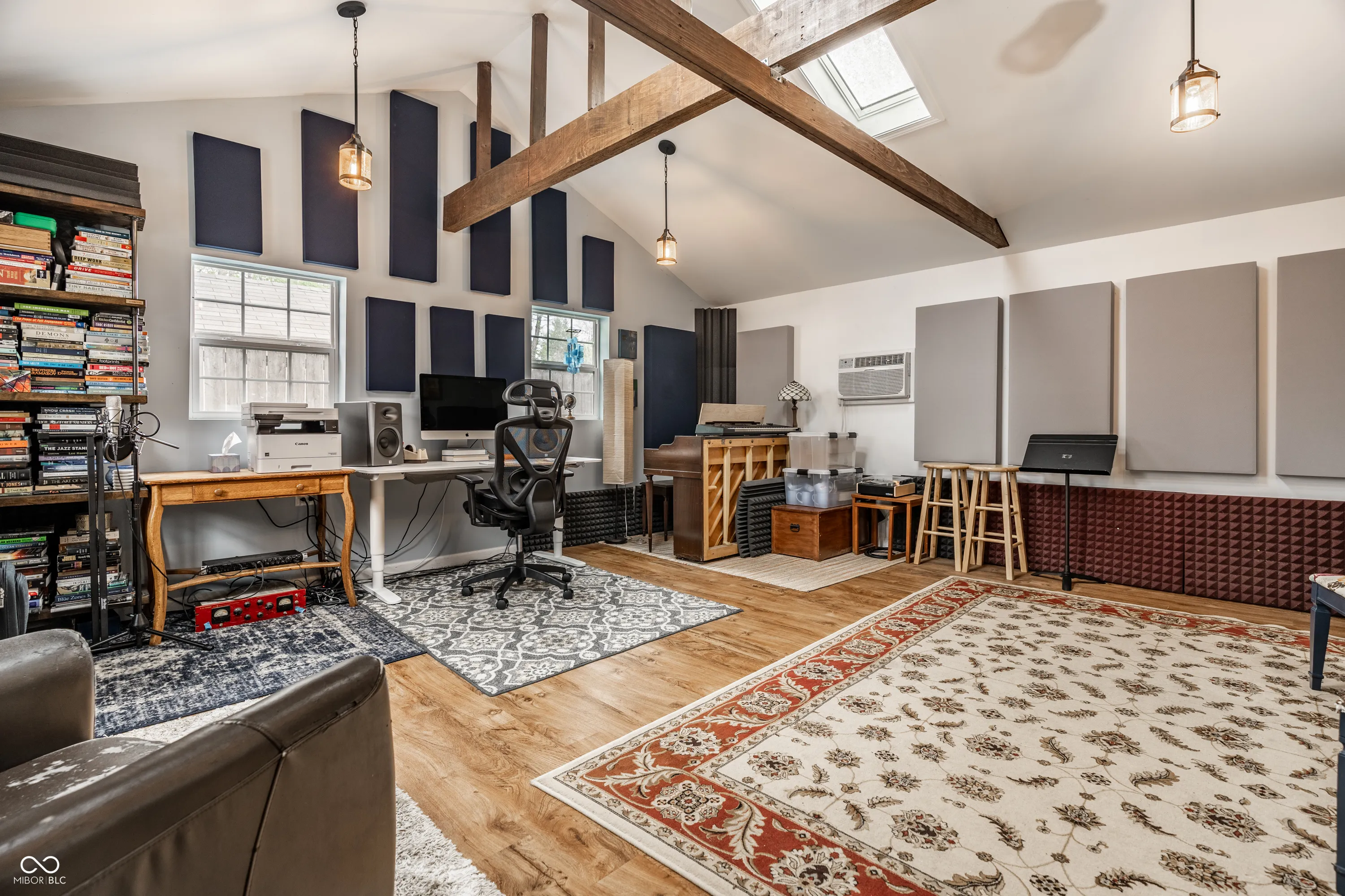 This one is special in so many ways: 2 baths on 1st floor. Super-sized kitchen with lots of cabinet and counter space — plenty of room to work or store. 1st floor laundry. The plum: A separate studio/man cave/rec room/art studio/workshop with cathedral ceiling and skylights, 8 yrs new, HVAC. Sound-proofed as a recording studio for prominent jazz musician but can serve many purposes. Well done. Hardwoods in living room. Brand new roof. Thermal windows. One car garage. Large front porch for summer sitting. Raised beds already in garden. 7 blocks from Monon Trail. Studio SF is included in 1st floor SF. Close: Gold Leaf popular cafe, Arsenal and Canterbury parks.