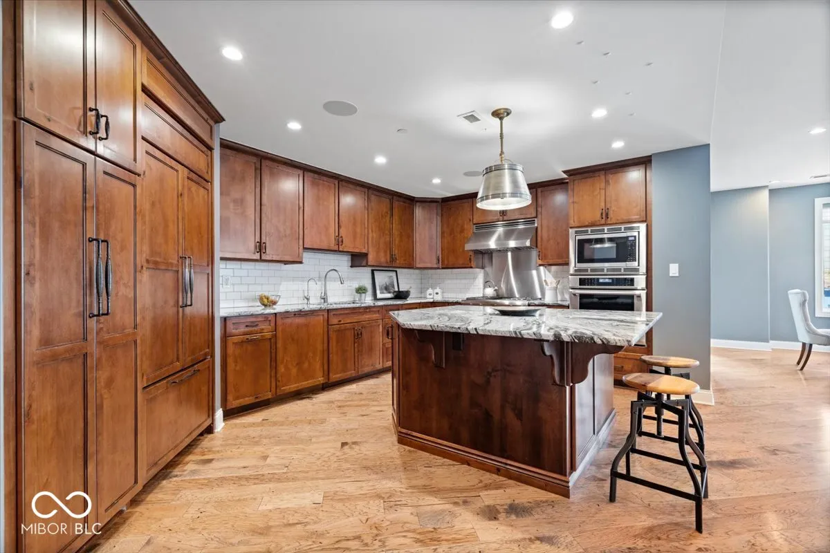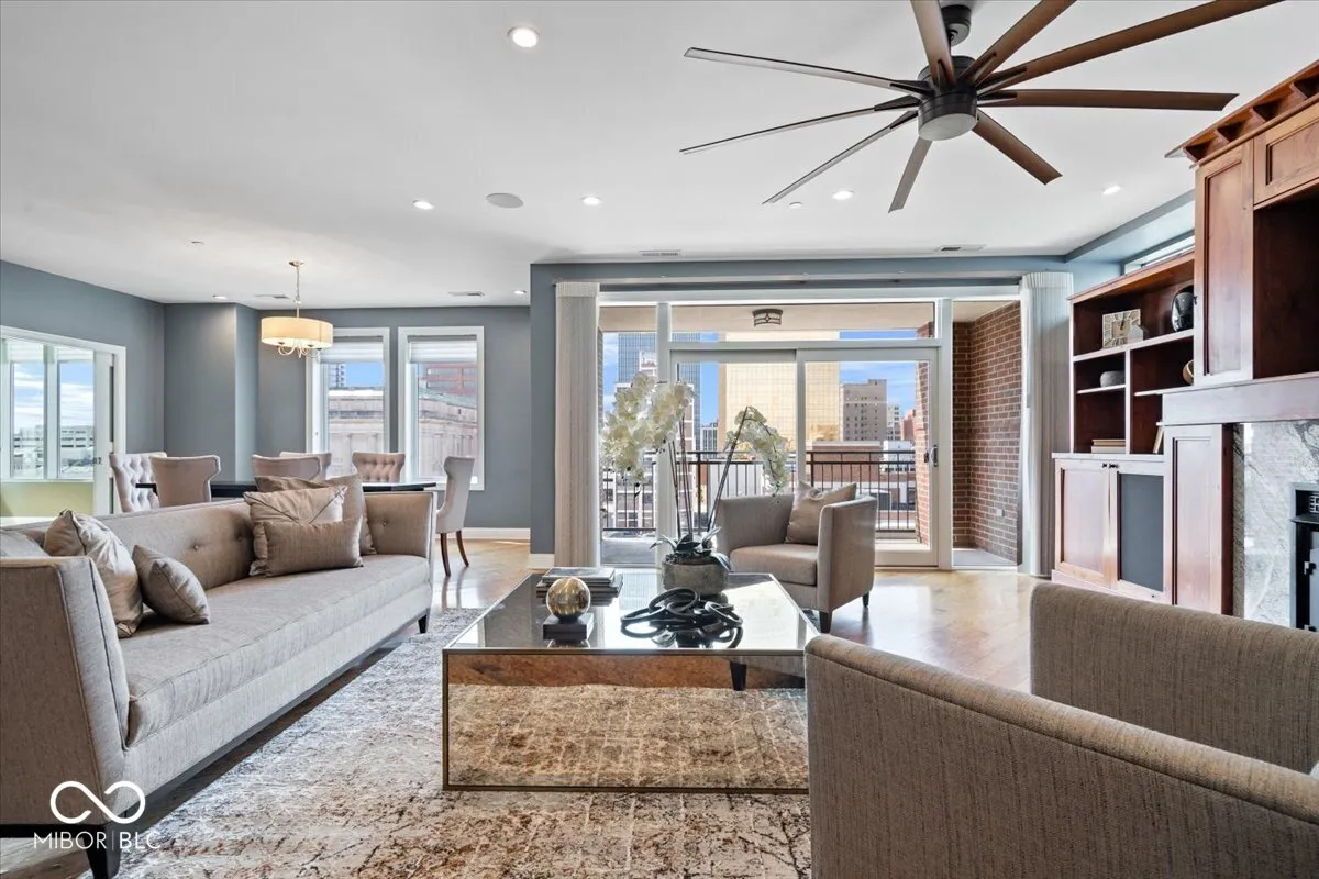 Luxury Living on Historic Mass Ave 2 Beds + Office | 2 Baths | High-Rise Condo | Premium Upgrades Throughout Experience the best of downtown living in this elegant high-rise condo located on iconic Massachusetts Avenue-Indy’s vibrant hub for dining, shopping, and culture. This meticulously upgraded residence blends refined finishes with effortless urban convenience and thoughtful design. The gourmet kitchen is a chef’s dream, featuring a Sub-Zero refrigerator, Thermador range, oven, microwave, and dishwasher, plus an oversized custom island with built-in Sub-Zero refrigerator and freezer drawers. Custom cabinetry offers generous storage, complemented by stunning hickory flooring that flows seamlessly throughout. The smartly designed floorplan includes a dedicated office-perfect for remote work, creative pursuits, or a quiet reading retreat. Thoughtful upgrades continue throughout the home with sleek built-ins, designer lighting, motorized custom window shades, a reverse osmosis water system, and California Closets. The spacious primary suite is a true sanctuary, featuring direct access to a private balcony and a spa-like bathroom with a luxurious whirlpool tub, separate walk-in shower, and dual vanities. An additional balcony off the main living area includes a gas line for grilling-ideal for hosting or enjoying the city skyline. Residents enjoy premium amenities including a resident-only parking garage, a state-of-the-art fitness center, temperature-controlled wine cellar, and a beautifully landscaped rooftop garden. Downtown Indianapolis living doesn’t get better than this-luxurious, low-maintenance, and walkable to everything Mass Ave has to offer.
