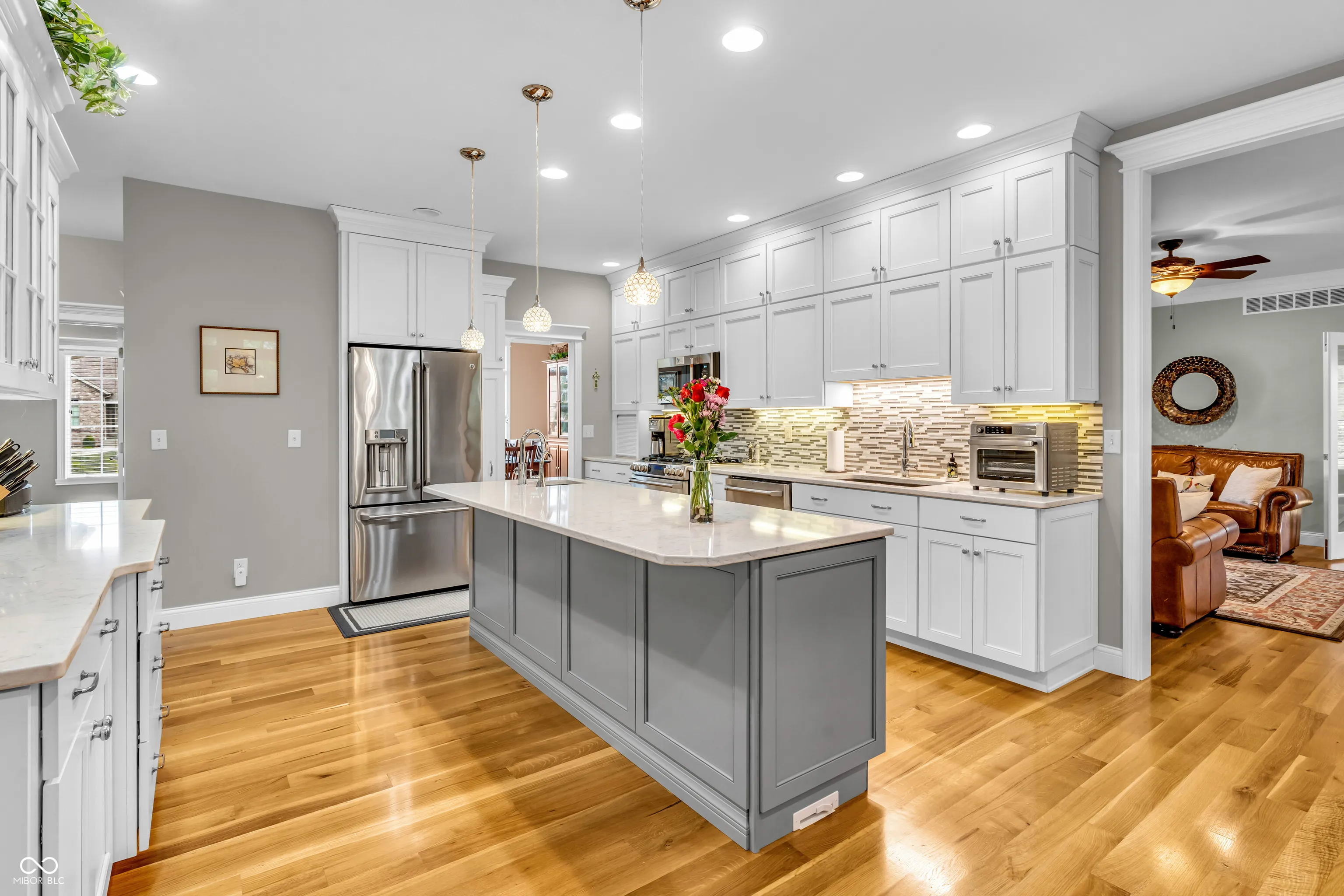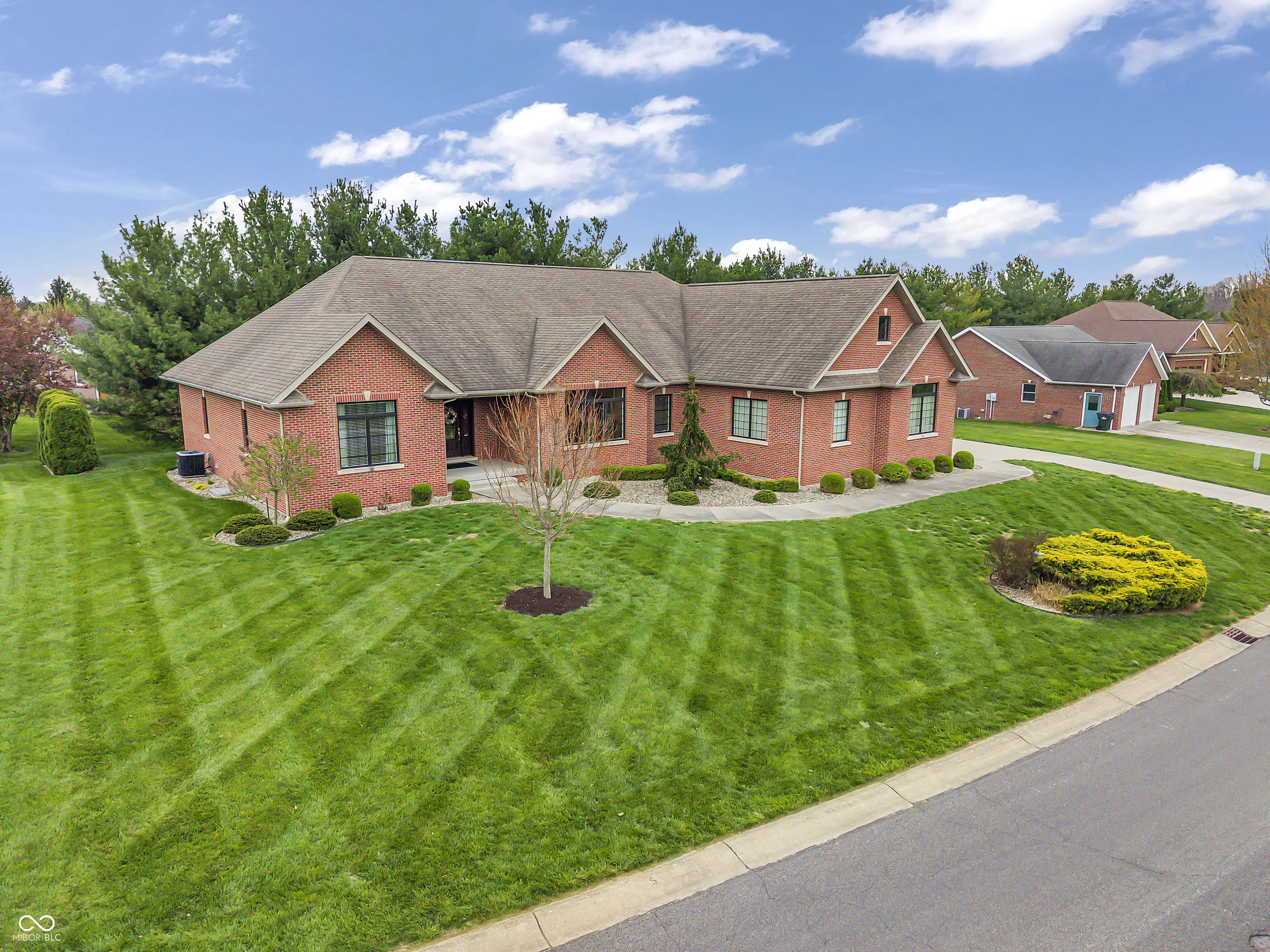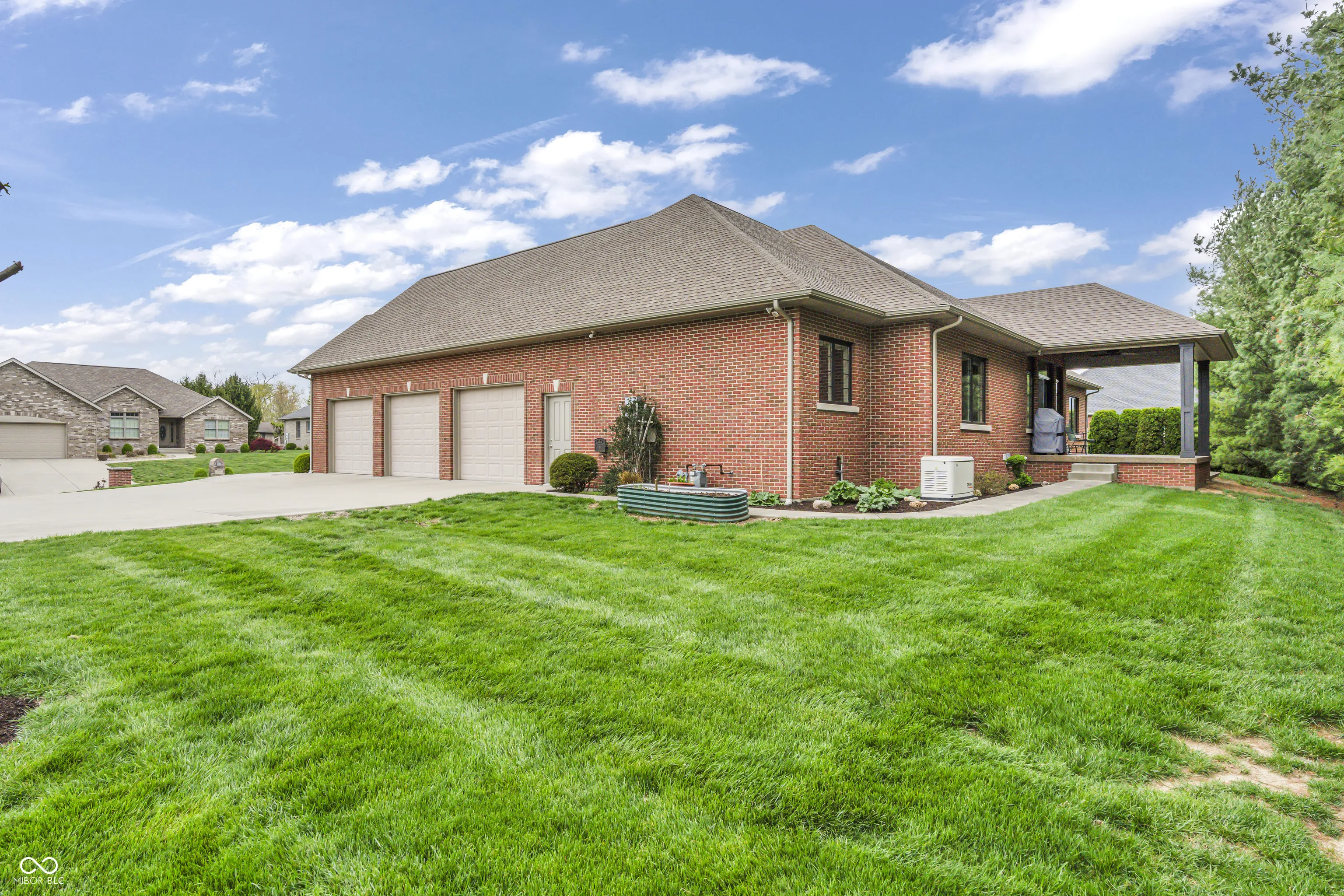 This exceptional all-brick home in Mill Ridge Estates offers the perfect blend of luxury, space & thoughtful design – situated on a rare double lot just minutes from the heart of Greensburg. Built in 2015 with quality craftsmanship throughout, this expansive home features over 3,230sqft on the main level and an additional 2,918sqft in the basement (approx 75% finished). From the moment you step inside, you’re welcomed by soaring 10ft ceilings, abundant natural light & a spacious living room complete w/ a cozy gas fireplace & custom built-ins. The main level showcases a formal dining room & a stunning gourmet kitchen. Enjoy floor-to-ceiling cabinetry, soft-close drawers, pull-out storage, large center island w/ prep sink & double oven w/ gas cooktop. Just off the kitchen, the laundry room offers exceptional storage & workspace. The luxurious primary suite features a soaking tub, walk-in shower & expansive vanity. Two additional bedrooms are located on the main level, w/ one bedroom offering a flexible space with french doors – perfect for a home office or studio. The basement is built for entertaining & versatility, offering a massive living area (entertainment center included), two additional bedrooms, full bath, bonus room/gym & a dedicated area plumbed/wired for a future kitchen. A ventilated safe room adds peace of mind, while the large unfinished storage space includes built-in shelving for optimal organization. Additional highlights: 3-car garage w/ utility sink & boot bench, site laid hardwood floors, 2×6 framing, R20 insulation/spray foam for efficiency, Andersen Windows, generator, R/O system, water softener, humidifier, central vacuum & a Lorex security system. Outdoor living is just as impressive with an aggregate covered patio, additional open patio space, & welcoming covered front porch -perfect for relaxing or entertaining. It’s also conveniently located just 10min from the Country Club, 13min to I-74, & minutes from shopping/restaurants – Welcome Home!