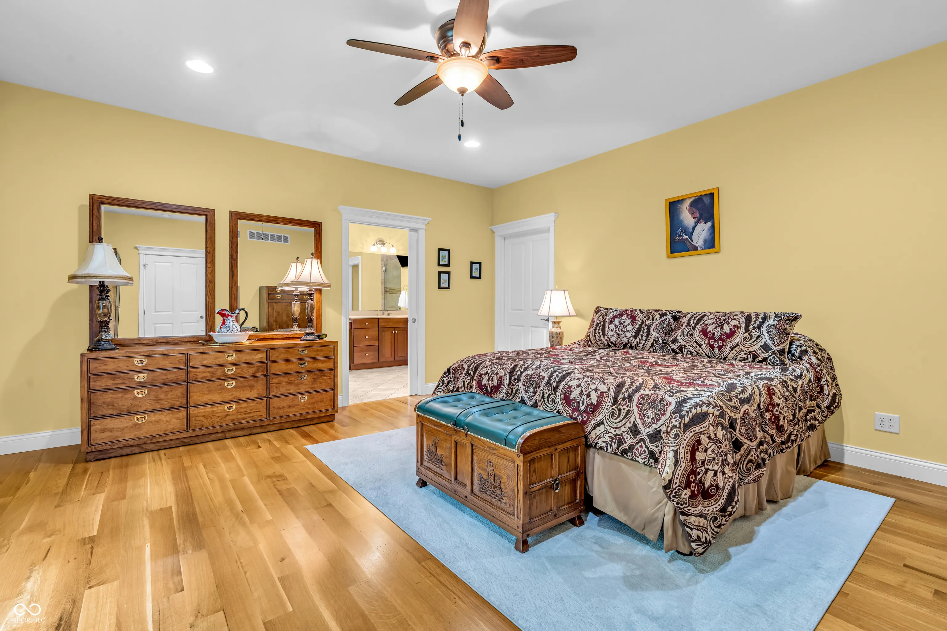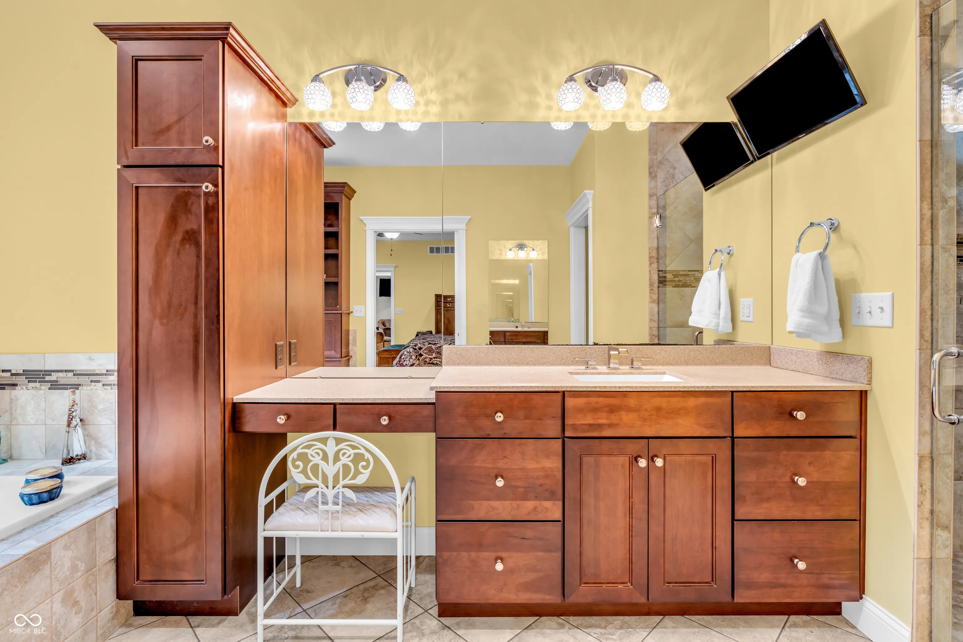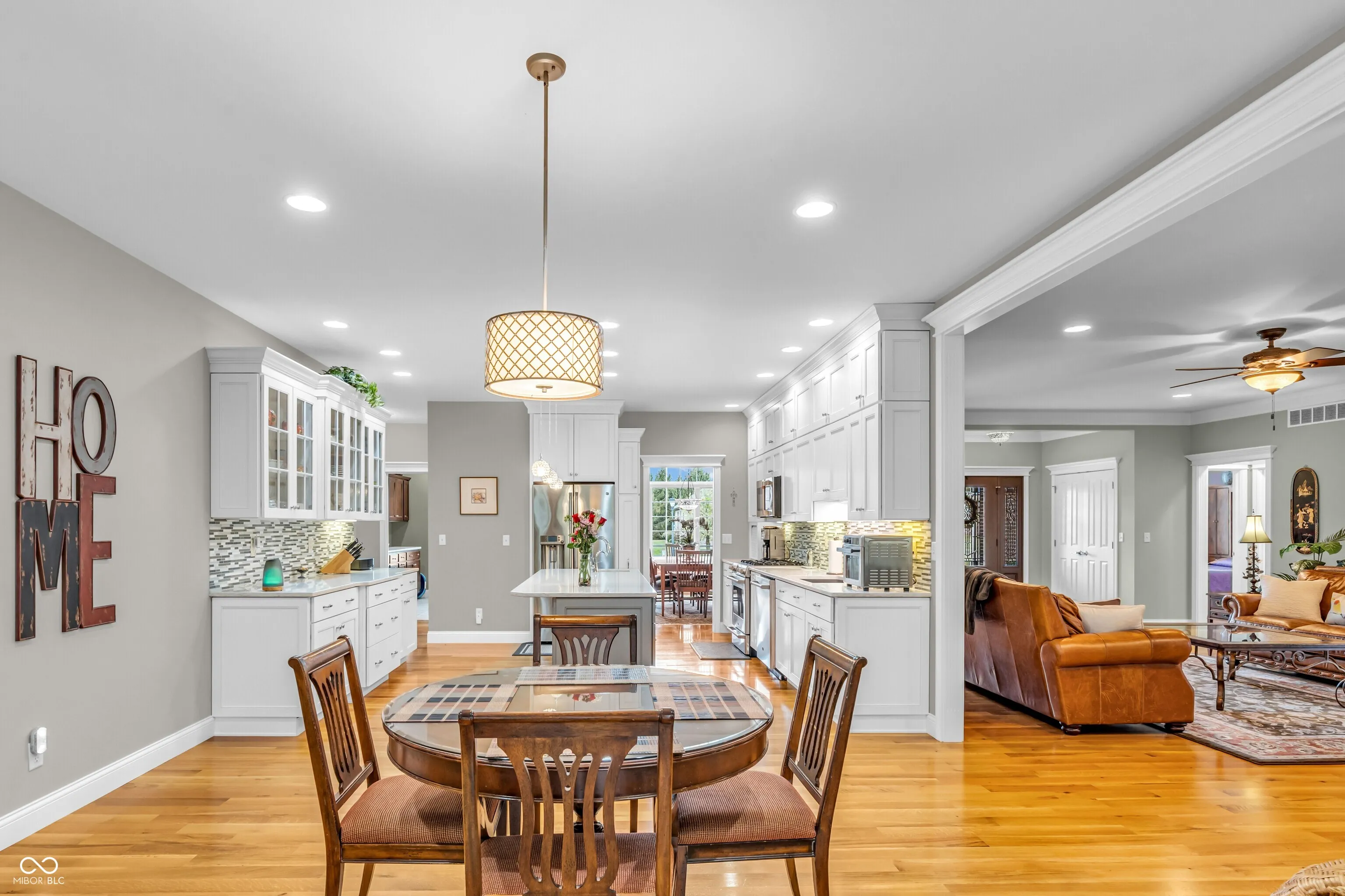 This exceptional all-brick home in Mill Ridge Estates offers the perfect blend of luxury, space & thoughtful design – situated on a rare double lot just minutes from the heart of Greensburg. Built in 2015 with quality craftsmanship throughout, this expansive home features over 3,230sqft on the main level and an additional 2,918sqft in the basement (approx 75% finished). From the moment you step inside, you’re welcomed by soaring 10ft ceilings, abundant natural light & a spacious living room complete w/ a cozy gas fireplace & custom built-ins. The main level showcases a formal dining room & a stunning gourmet kitchen. Enjoy floor-to-ceiling cabinetry, soft-close drawers, pull-out storage, large center island w/ prep sink & double oven w/ gas cooktop. Just off the kitchen, the laundry room offers exceptional storage & workspace. The luxurious primary suite features a soaking tub, walk-in shower & expansive vanity. Two additional bedrooms are located on the main level, w/ one bedroom offering a flexible space with french doors – perfect for a home office or studio. The basement is built for entertaining & versatility, offering a massive living area (entertainment center included), two additional bedrooms, full bath, bonus room/gym & a dedicated area plumbed/wired for a future kitchen. A ventilated safe room adds peace of mind, while the large unfinished storage space includes built-in shelving for optimal organization. Additional highlights: 3-car garage w/ utility sink & boot bench, site laid hardwood floors, 2×6 framing, R20 insulation/spray foam for efficiency, Andersen Windows, generator, R/O system, water softener, humidifier, central vacuum & a Lorex security system. Outdoor living is just as impressive with an aggregate covered patio, additional open patio space, & welcoming covered front porch -perfect for relaxing or entertaining. It’s also conveniently located just 10min from the Country Club, 13min to I-74, & minutes from shopping/restaurants – Welcome Home!