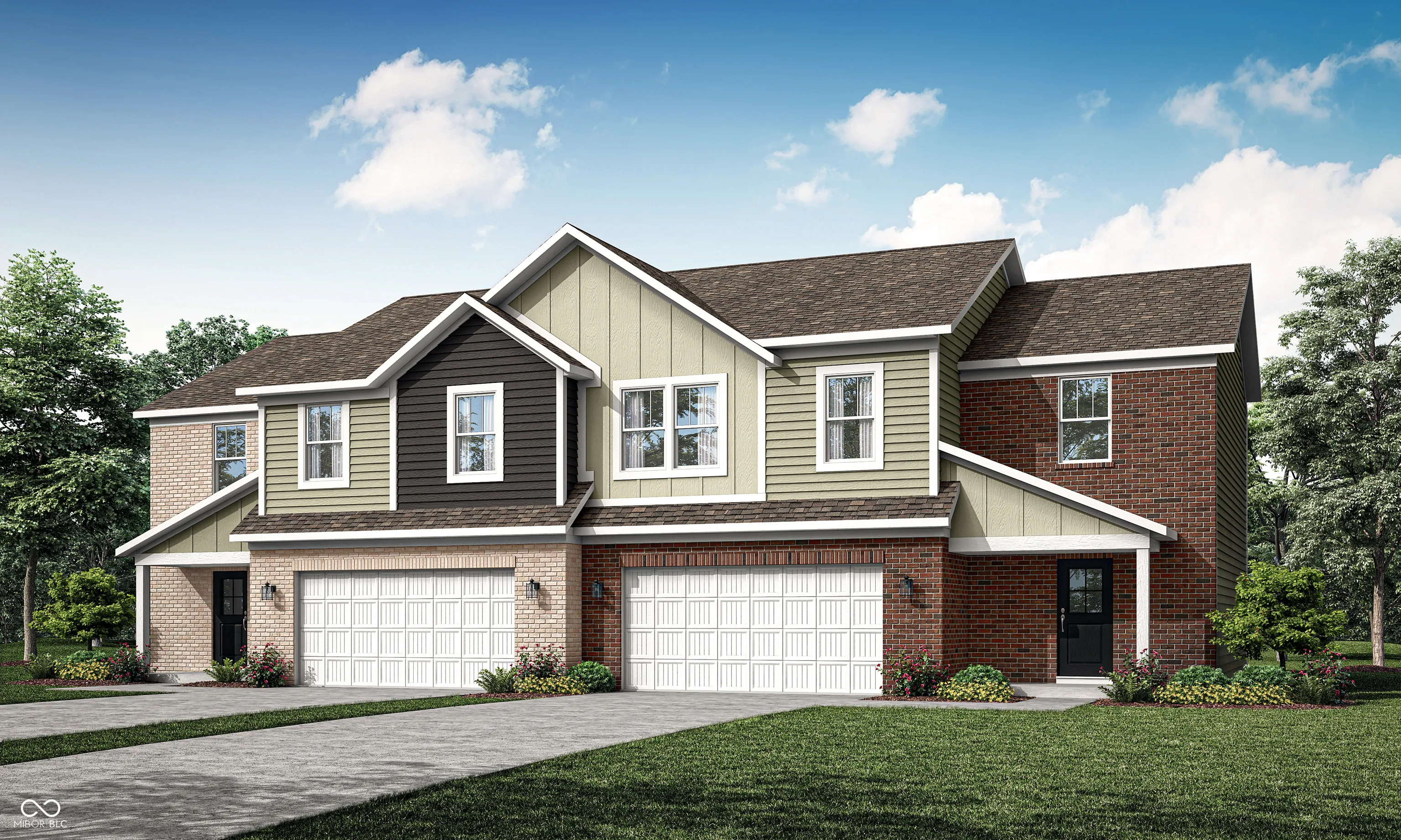 Carriage Duplex is a series of new paired homes for sale at Grand Vista, a master-planned community coming soon to Greenwood, IN. Residents will have access to stunning amenities including a relaxing swimming pool, pool house and playground set. The community offers proximity to Old City Park for outdoor recreation and high-end shopping and dining options at nearby Greenwood Park Mall. The first floor of this two-story home shares an open layout between the kitchen, dining area and Great Room for easy entertaining, along with access to an outdoor space. Upstairs is a luxe owner’s suite with an en-suite bathroom and a spacious walk-in closet, as well as two secondary bedrooms near a versatile loft that serves as a second-floor shared living space. *Photos/Tour of model may show features not selected in home.