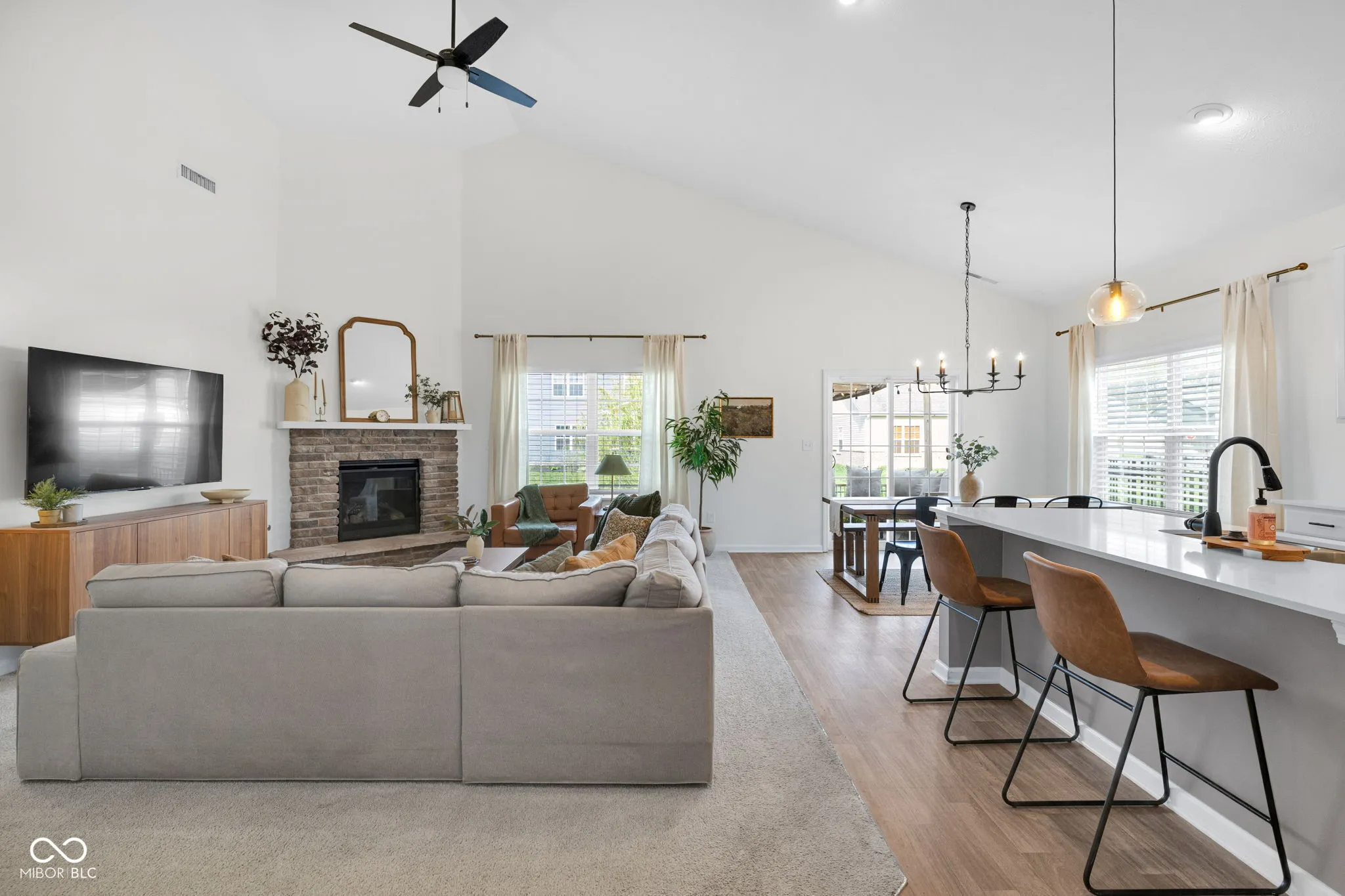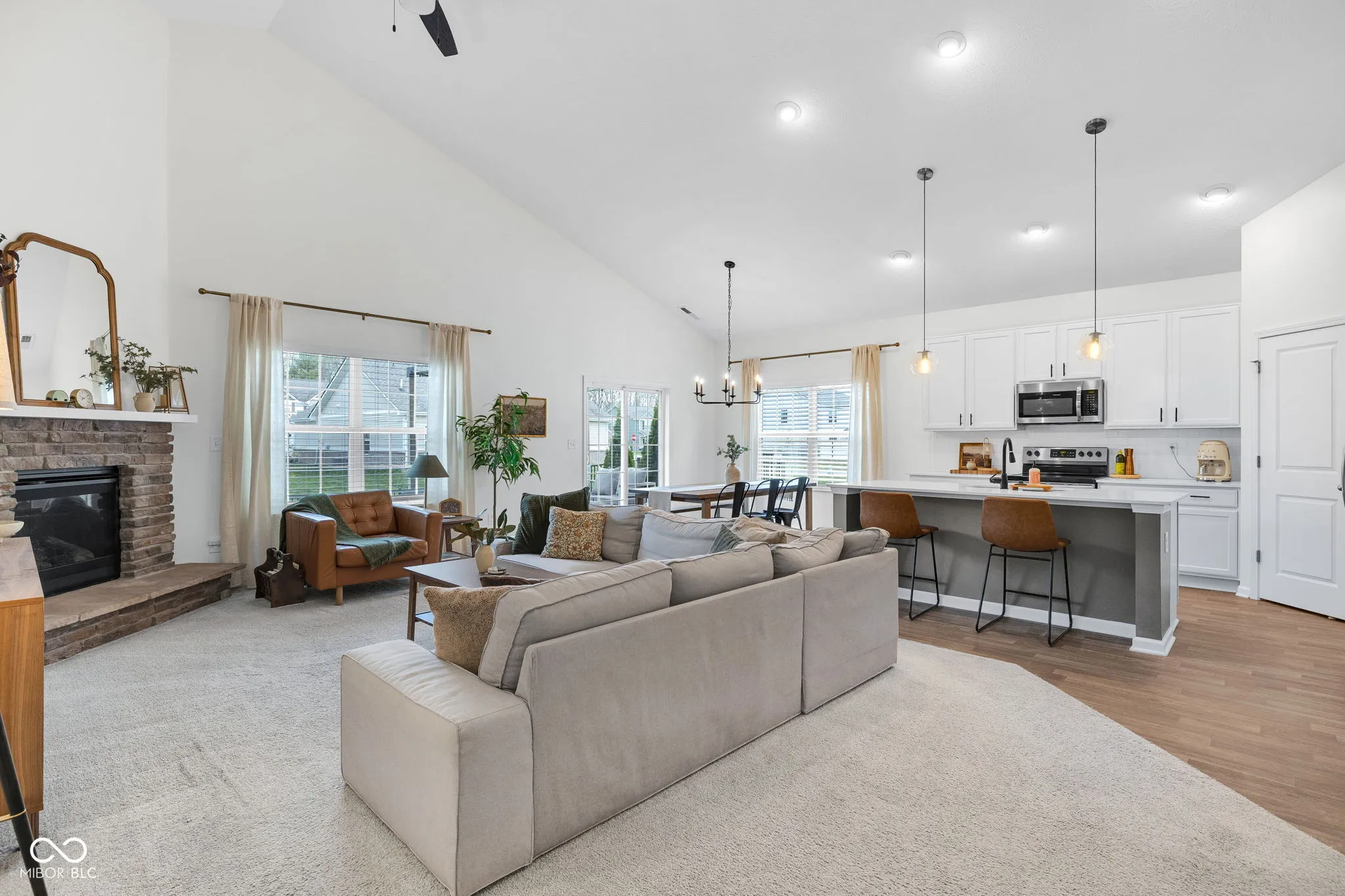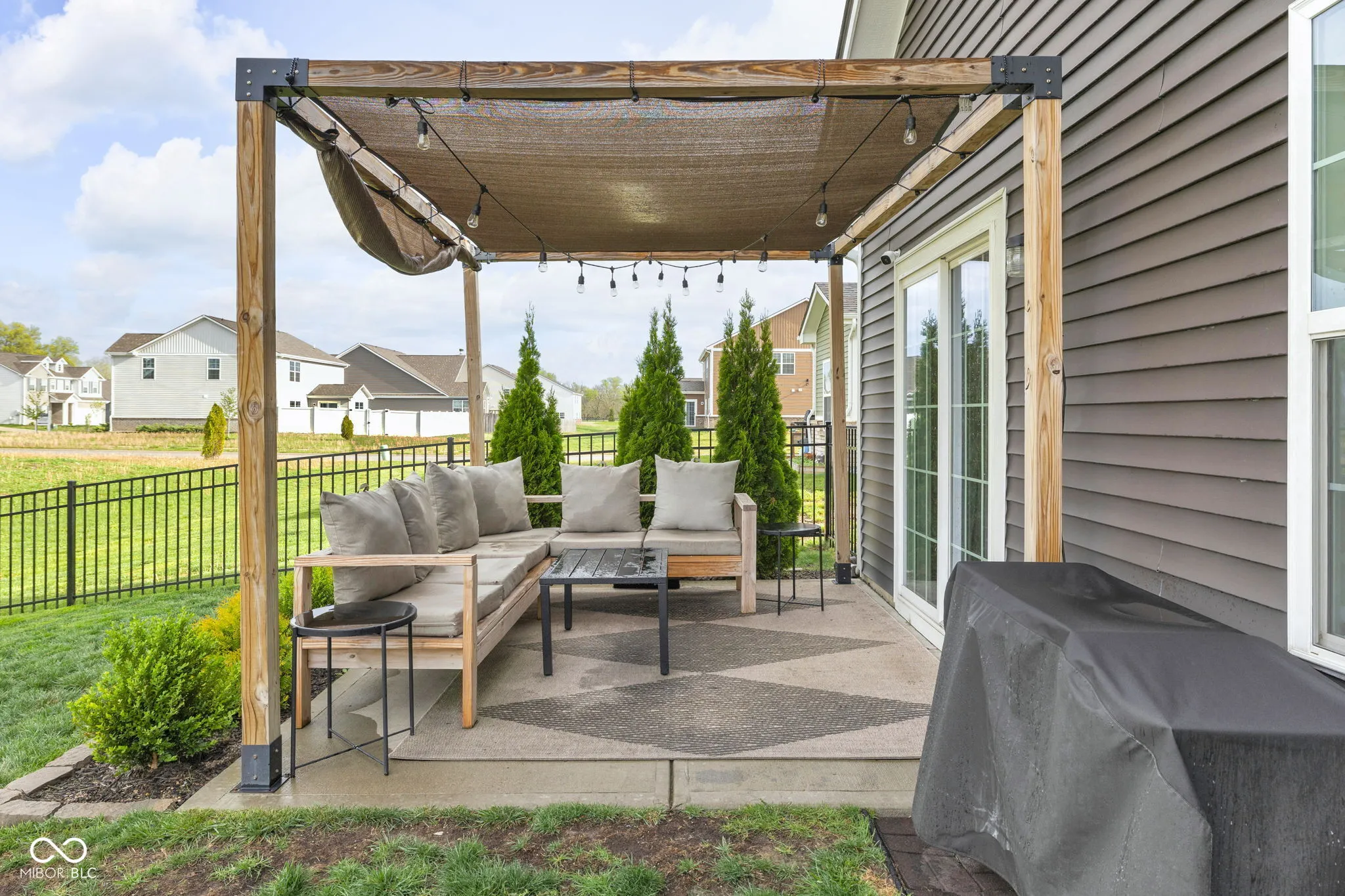 Over 1,800 square feet, a layout that flows perfectly, and a home that just feels good the second you walk in! Built in 2021, this 3 bedroom, 2 bath ranch in Pittsboro blends thoughtful design with warm, inviting spaces throughout. The split bedroom floor plan gives the primary suite its own private wing, while the two additional bedrooms and full bath are tucked on the opposite side of the home. The great room feels spacious yet cozy with a brick gas fireplace-perfect for slow mornings, movie nights, and everyday living-flowing seamlessly into the kitchen and dining area. You’ll find quartz countertops, stainless steel appliances, luxury vinyl plank flooring, and plenty of room for a large table. The primary suite is a standout with a generously sized bedroom, walk in closet, dual sink vanity, tile shower, and tile floors. Thoughtful details like board and batten trim in the entryway and primary bath add so much character throughout. Step outside to a fully fenced backyard with wrought iron fencing and a pergola covered patio-such a cute setup for relaxing or hosting. With its functional layout, inviting spaces, and well done finishes, this home is move in ready and easy to love! Enjoy quiet, peaceful living-while still being less than 10 minutes from Brownsburg and I-74 for an easy commute!