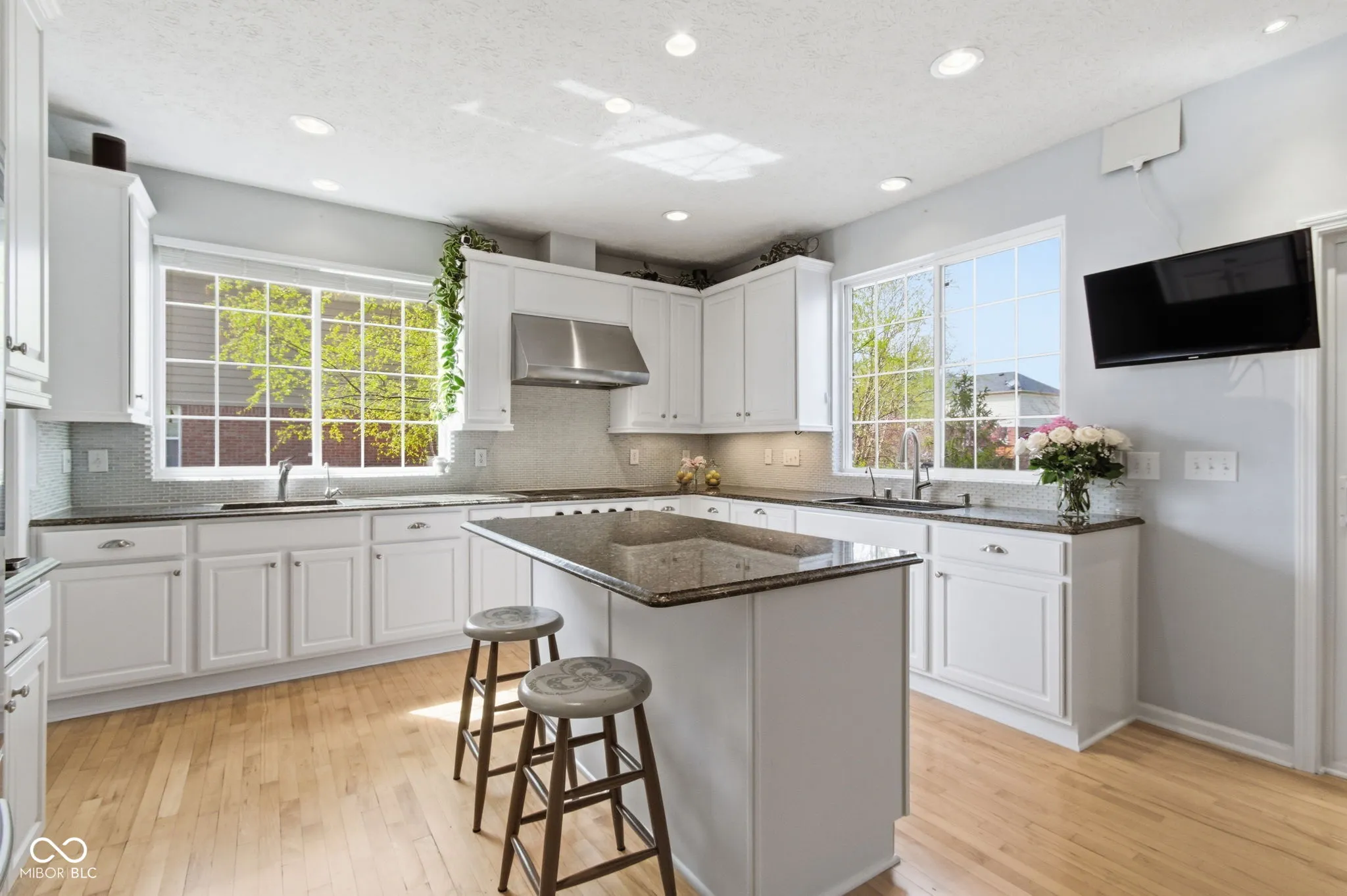Welcome to this beautiful West Carmel home in the highly sought-after Long Branch Estates, offering over 5,000 square feet of refined living space with 5 bedrooms, 4 full baths, and 2 half baths, set on a professionally landscaped lot backing to a private common area. The heart of the home is a stunning, redesigned gourmet kitchen featuring 2 expansive windows, 2 farmhouse sinks, double ovens, stainless steel appliances, and a gas cooktop with exterior-vented hood-perfect for everyday living and entertaining. The bright family room offers abundant natural light and a cozy gas fireplace, while the open-concept layout-enhanced during renovation-creates seamless flow throughout the main living areas. The main level also includes a formal dining room, spacious living room, and a versatile fifth bedroom ideal for guests or a home office. Upstairs, the primary suite features a sitting area and a large walk-in closet with custom built-ins. 3 additional bedrooms, 2 full baths, and a convenient 2nd-floor laundry room complete the upper level. The finished daylight basement provides flexible space for recreation, fitness, or hobbies, along with a private office and full bath. Outdoor is equally impressive, featuring a screened-in porch and an expanded deck overlooking the beautifully maintained yard with an irrigation system-perfect for enjoying quiet mornings or relaxing evenings. Under-deck storage provides valuable space for lawn and garden equipment. Major updates include kitchen renovation (2016), porch and deck (2020), exterior paint (2018), water heater (2024), furnace (2025), and interior paint (2026). Community amenities include a pool, basketball / tennis court, and playground. Ideally located near top-rated Carmel schools, shopping, dining, and commuter routes. Move-in ready and thoughtfully updated, this home offers the perfect blend of comfort, style, and convenience-an opportunity you don’t want to miss!