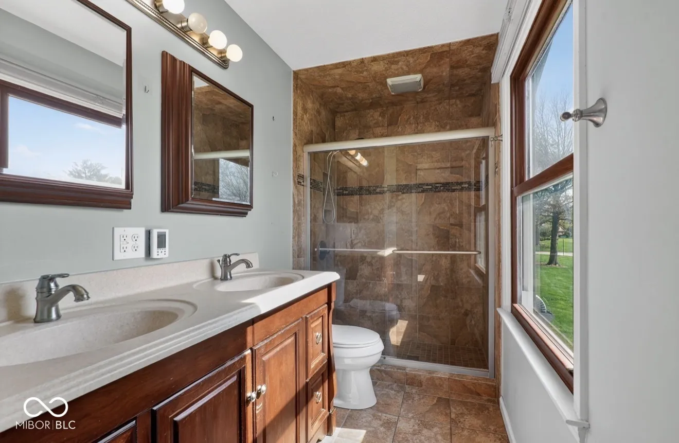 Welcome to one of east Carmel’s most sought after neighborhoods – The Woodlands! Nestled on a gorgeous, park-like lot, this home has been lovingly cared for and updated in all the right ways. From the moment you enter you are greeted with a gorgeous space full of built-in bookshelves perfect for a sitting room, library, den or study. Updated LVP guides you into the spacious chef-style kitchen complete with quartz countertops, gas stove, stainless appliances and nicely sized pantry. This gorgeous kitchens opens to a vaulted ceiling breakfast room complete with exposed beams and access to an oversized deck and screened-in porch overlooking the beautiful yard. Down just a couple steps is a cozy living room with stone-stack fireplace. The main floor bedroom and full bath make it a convenient location for guest and extended family alike. Upstairs you’ll find new carpet throughout the 3 bedrooms. The primary suite offers ample closet space and en-suite bath featuring double sinks and walk in custom tile shower. The third full bathroom has tons of space – no stepping on each other while trying to get ready in the mornings! An unfinished basement is perfect for storage or ready for you to make it your own! This is the perfect house in the perfect neighborhood just waiting for you to call it HOME!!