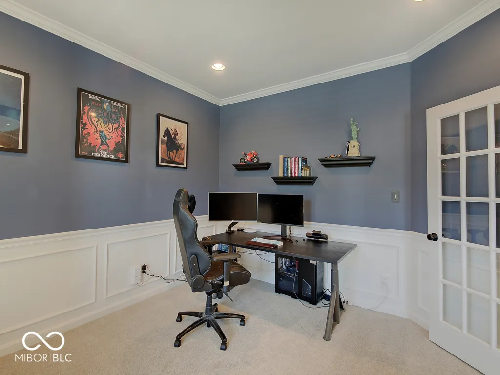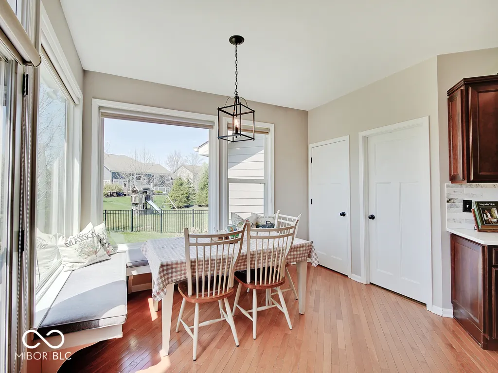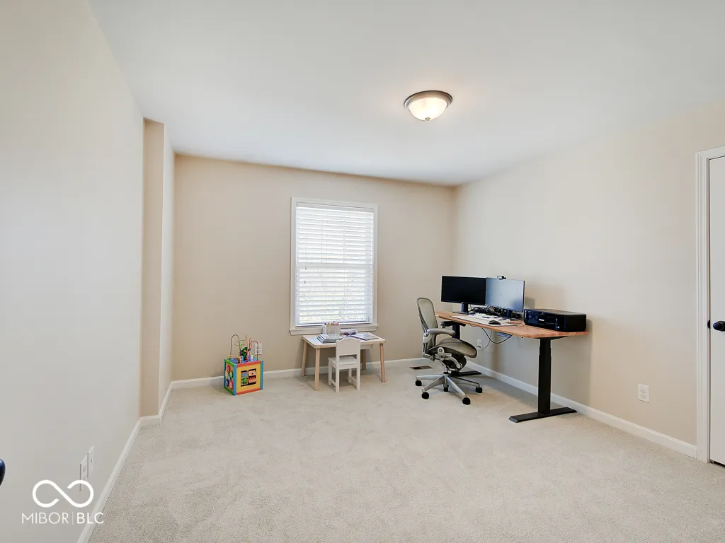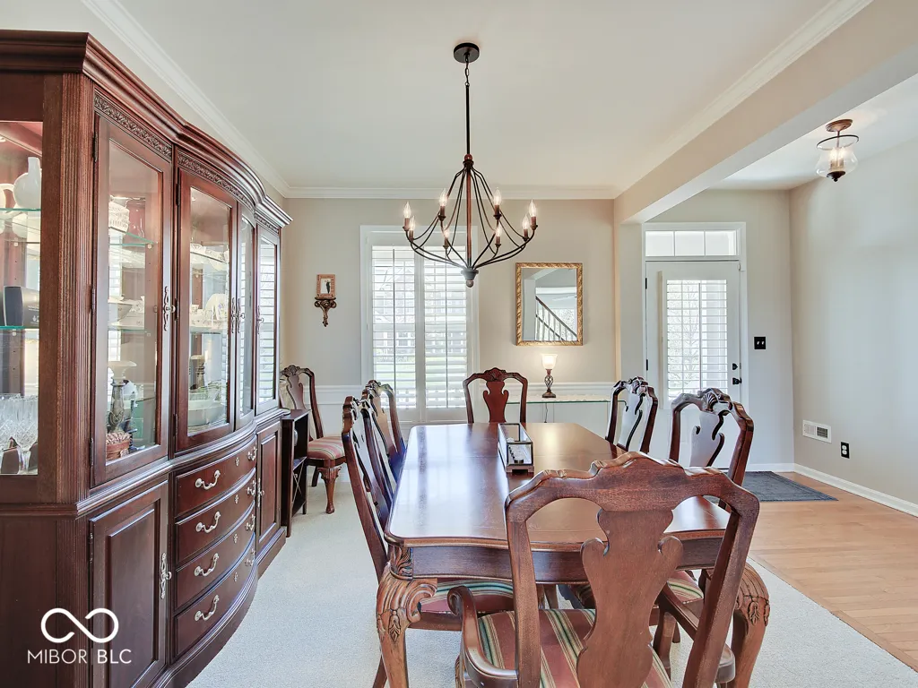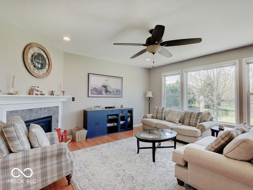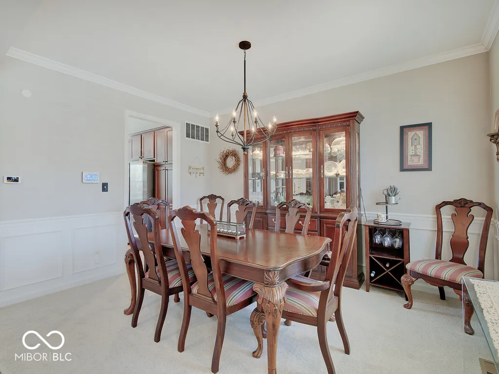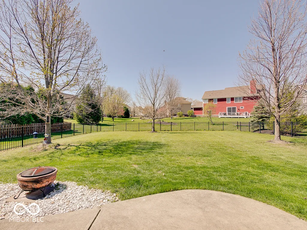 Step inside to a view reaching the back wall of windows, filling the home w/ warmth, cheer & the scent of brand new carpet throughout! Up front, find a dedicated home office w/ glass French doors, wainscoting & crown molding, opposite a formal dining rm perfect for entertaining & family gatherings. The great rm features large windows, hardwood flooring, ceiling fan & corner gas fireplace; a large adjacent wall accommodates a massive TV & allows for easy furniture placement. This space is wide open to the kitchen featuring a large center island w/ classy wood panels vs standard drywall. Kitchen boasts staggered height cabinets, quartz counters, tile backsplash, walk-in pantry & SS appliances incl. a slide-in gas range w/ air-fry feature! The adorable breakfast area offers built-in bench seating & gorgeous views of the huge backyard. Entry from the 3-car tandem garage provides plenty of cabinet storage & built-in hooks for coats & backpacks. Upstairs find a huge loft perfect for play, gaming, or a 2nd living space! No shortage of space in the primary bedrm w/ tray ceiling, fan & French doors to a large tile bath w/ quartz vanities, under-mount sinks, garden tub, tile shower & walk-in closet. Each additional bedrm is large. The finished bsmt w/ LVP flooring offers a family rm area w/ stylish wet bar & built-in electric fireplace for cozy movie nights. Bsmt also includes a separate space for play/games, a dedicated workout rm w/ rubber flooring & a 5th bedrm w/ full bath. Outside is a large patio for grilling & chilling & a huge fully fenced yard for kids & pets. Saxony offers parks, common spaces, walking trails, Saxony beach w/ 20-acre lake & 300′ of beach, Saxony Hall community center & a pool within walking distance! Saxony Pizzeria has great pizza & a bar! Close to hospitals & around the corner from Hamilton Town Center & Ruoff Music Center. Clean, neutral & move-in ready!