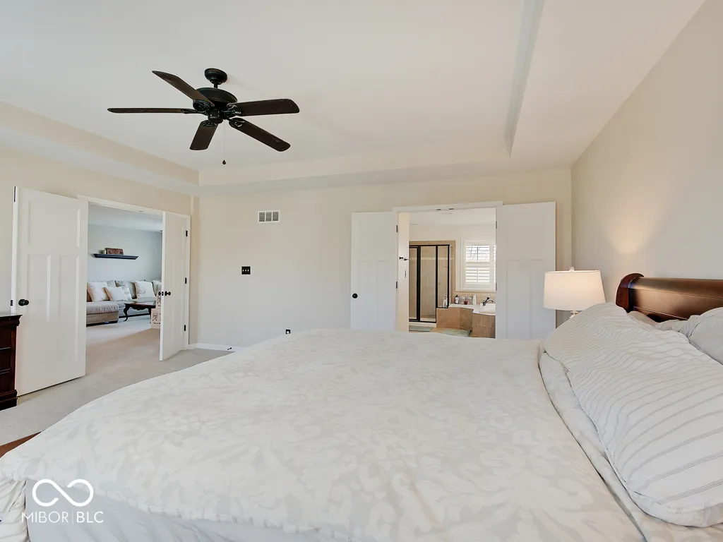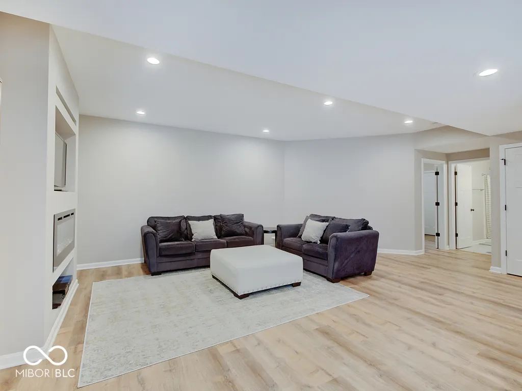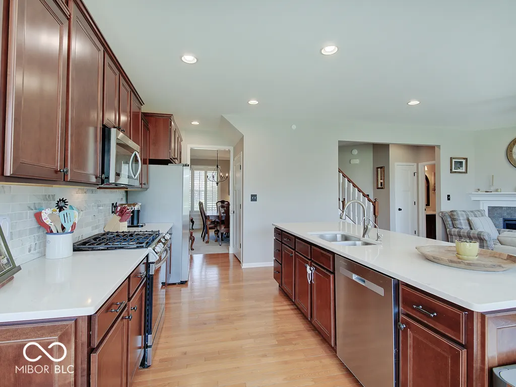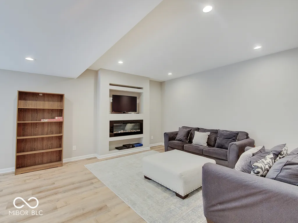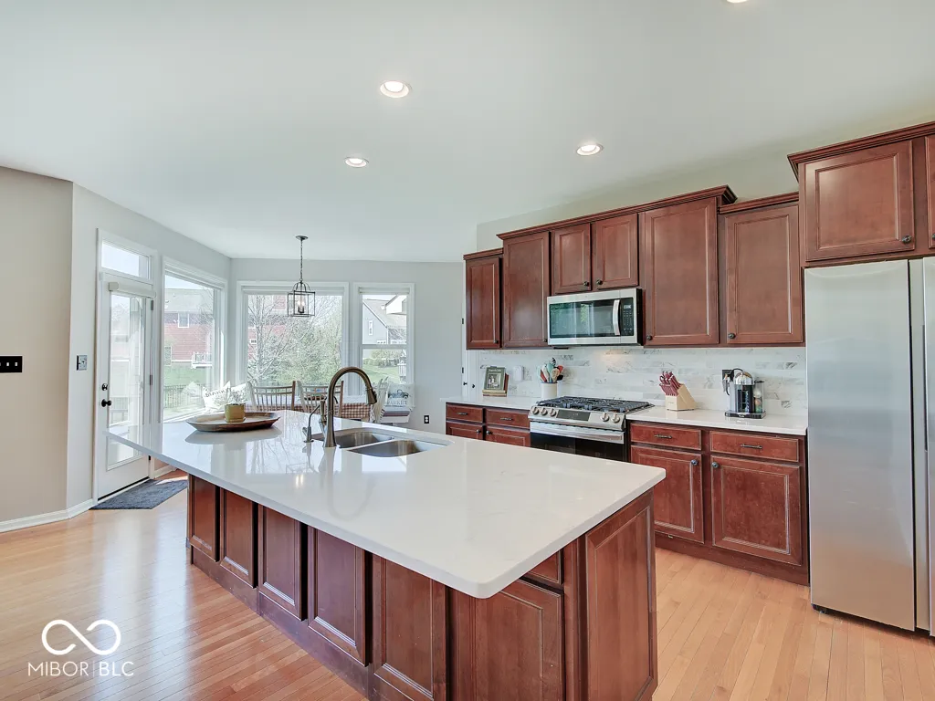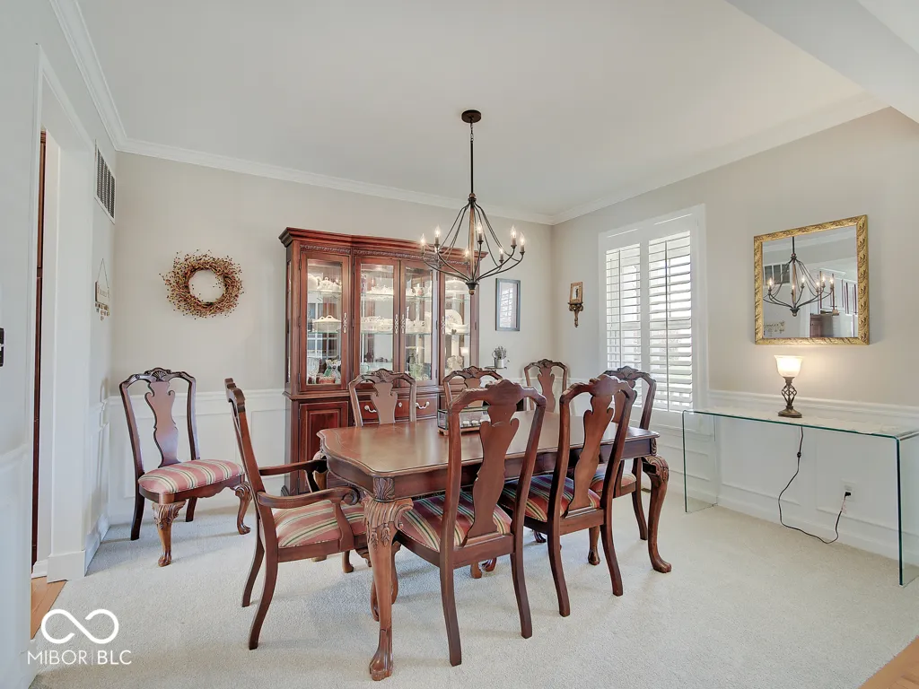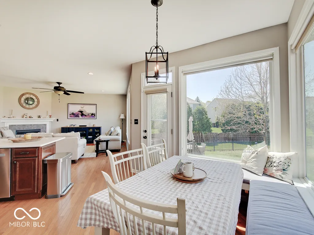 Step inside to a view reaching the back wall of windows, filling the home w/ warmth, cheer & the scent of brand new carpet throughout! Up front, find a dedicated home office w/ glass French doors, wainscoting & crown molding, opposite a formal dining rm perfect for entertaining & family gatherings. The great rm features large windows, hardwood flooring, ceiling fan & corner gas fireplace; a large adjacent wall accommodates a massive TV & allows for easy furniture placement. This space is wide open to the kitchen featuring a large center island w/ classy wood panels vs standard drywall. Kitchen boasts staggered height cabinets, quartz counters, tile backsplash, walk-in pantry & SS appliances incl. a slide-in gas range w/ air-fry feature! The adorable breakfast area offers built-in bench seating & gorgeous views of the huge backyard. Entry from the 3-car tandem garage provides plenty of cabinet storage & built-in hooks for coats & backpacks. Upstairs find a huge loft perfect for play, gaming, or a 2nd living space! No shortage of space in the primary bedrm w/ tray ceiling, fan & French doors to a large tile bath w/ quartz vanities, under-mount sinks, garden tub, tile shower & walk-in closet. Each additional bedrm is large. The finished bsmt w/ LVP flooring offers a family rm area w/ stylish wet bar & built-in electric fireplace for cozy movie nights. Bsmt also includes a separate space for play/games, a dedicated workout rm w/ rubber flooring & a 5th bedrm w/ full bath. Outside is a large patio for grilling & chilling & a huge fully fenced yard for kids & pets. Saxony offers parks, common spaces, walking trails, Saxony beach w/ 20-acre lake & 300′ of beach, Saxony Hall community center & a pool within walking distance! Saxony Pizzeria has great pizza & a bar! Close to hospitals & around the corner from Hamilton Town Center & Ruoff Music Center. Clean, neutral & move-in ready!