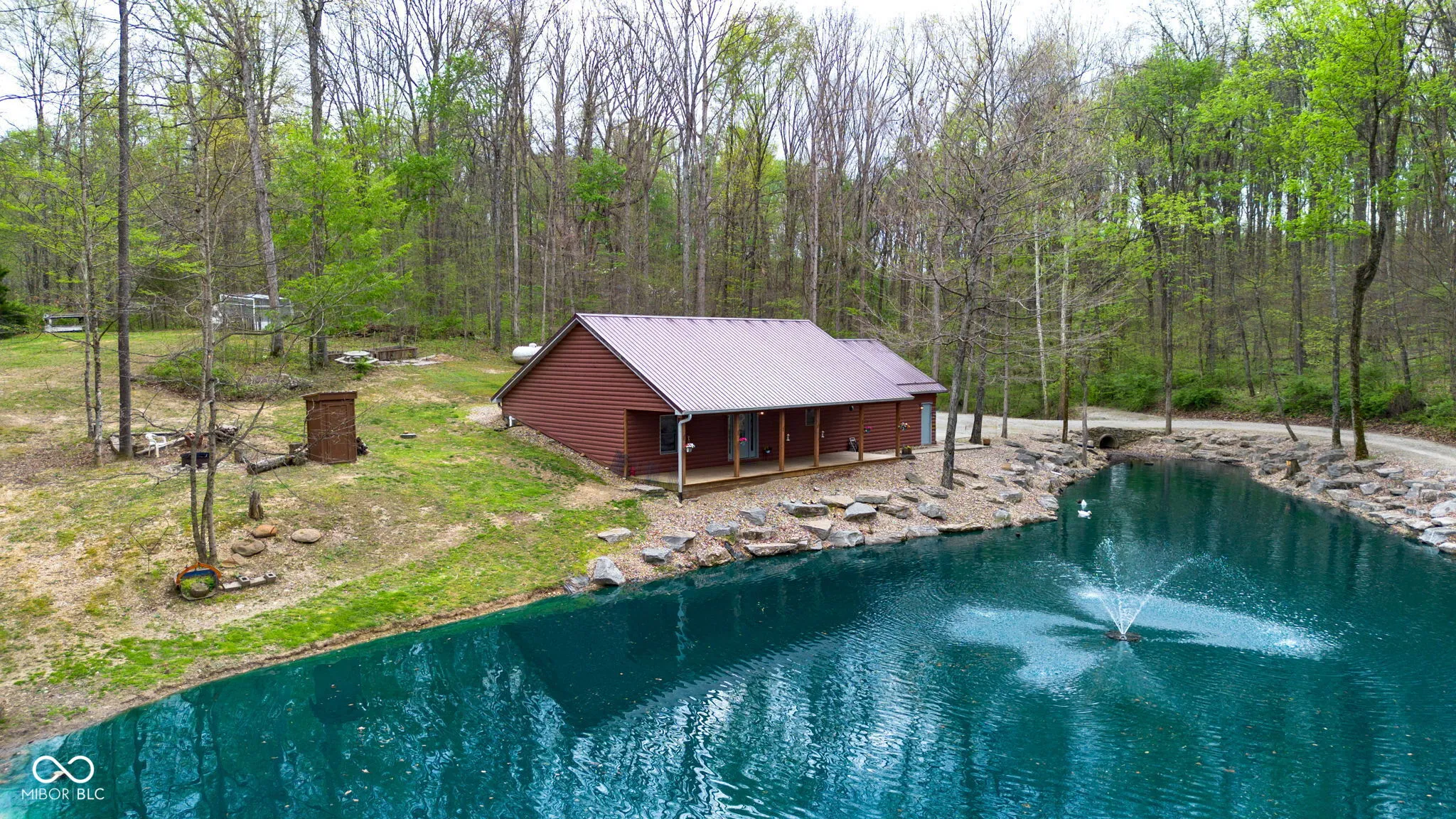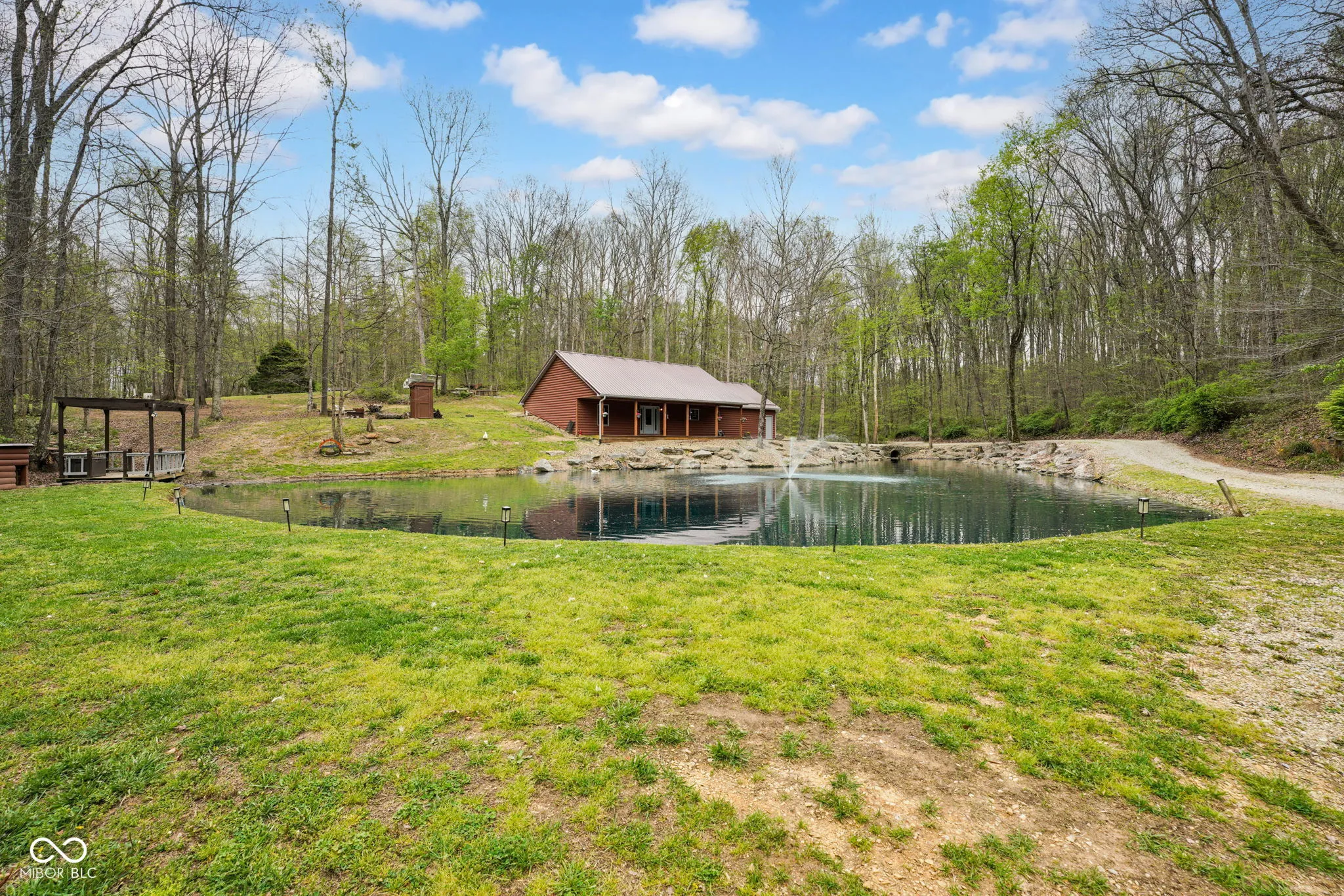 A hidden paradise, custom cabin sitting on a little over 10 acres with a 14ft deep center stocked pond, 42ft long covered front porch, two pole barns, and a lean-to. Cabin features 1 bedroom, 1 bonus room, 1.5 bath, 5×6 tile spacious shower with rainfall shower head, electric fire place, two car attached garage, and laundry room. Additional offerings with a finished must see 25×50 pole barn with electric, water, Hvac, water heater, wood burning stove, full bathroom, washer and dryer hook ups! A second 32×32 pole barn offers a 14ft sliding door and an ample amount of space for storage or events! Whole home generator, new septic, new plumbing, chicken coop and more. One of a kind and homestead ready!