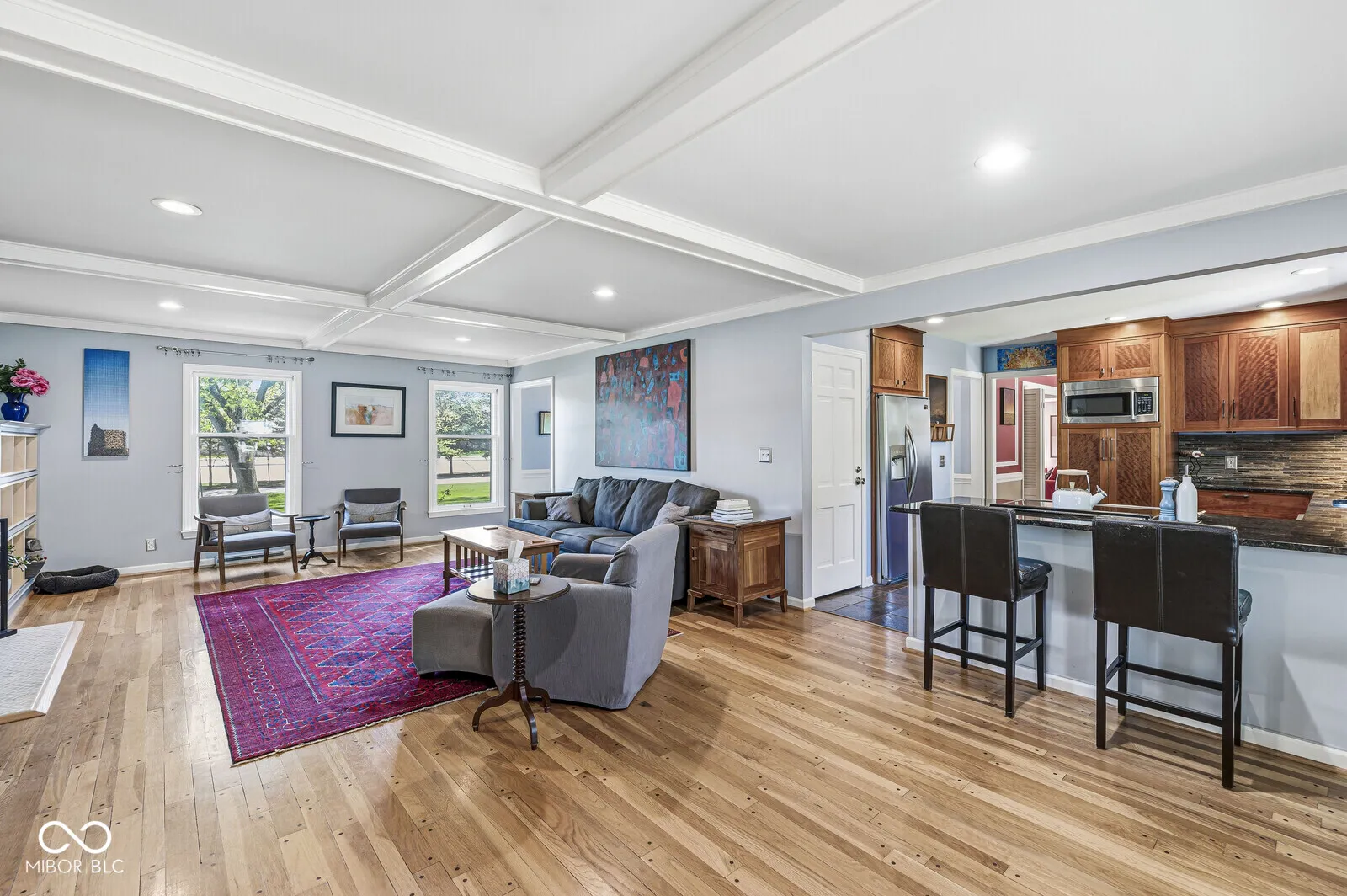 With approximately 3,000 square feet of living space and a basement, this updated Four Bedroom Garrison Colonial finds itself in a prime Washington Township location just off 83rd & Spring Mill Road. The updates are endless: New HVAC (2026), Garage Doors (2026), Roof/Gutter Guards (2020), New Storms (2020), Composition siding (2020), Refinished Upstairs Hardwoods (2025), Both upstairs Bathrooms Renovated (2017), and Landscaping (2024). The kitchen features stainless appliances, granite counters, a large and convenient breakfast bar/island, and custom cabinetry with perfectly matched block mottled makore (African Cherry)! The two full bathrooms have been completely renovated with great care. The unfinished partial but large basement awaits a possible use as another finished space. The back lawn is ideal for entertaining or simply escaping the world. A large semi-walled patio is just off the dining room while a fire pit awaits its next gathering of friends and family. It enjoys a prime location just 5-10 minutes to Nora, Keystone at the Crossing, and Broad Ripple while just a short walk to Spring Mill School.