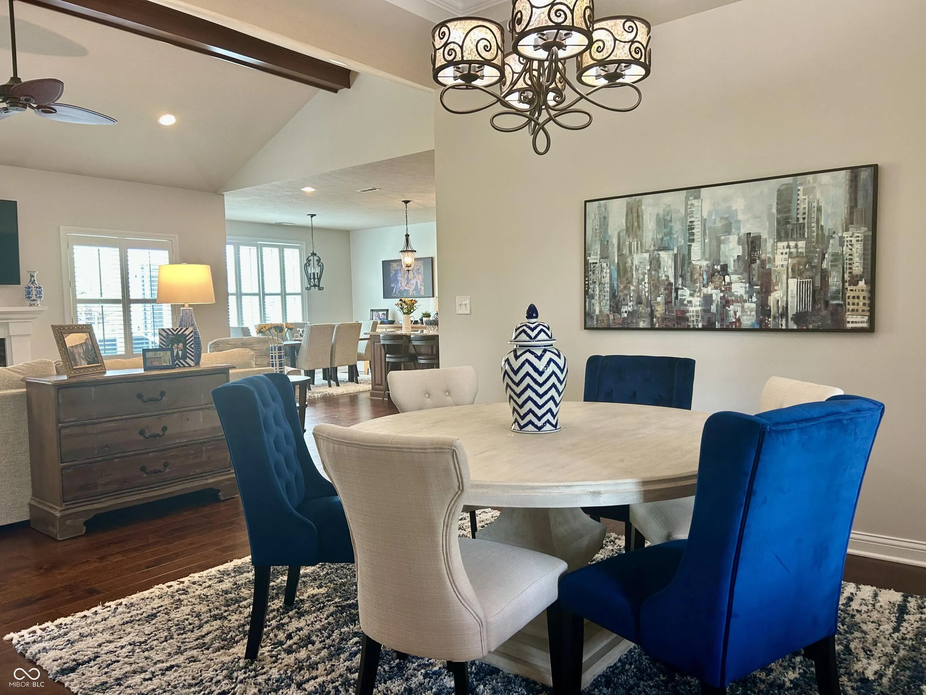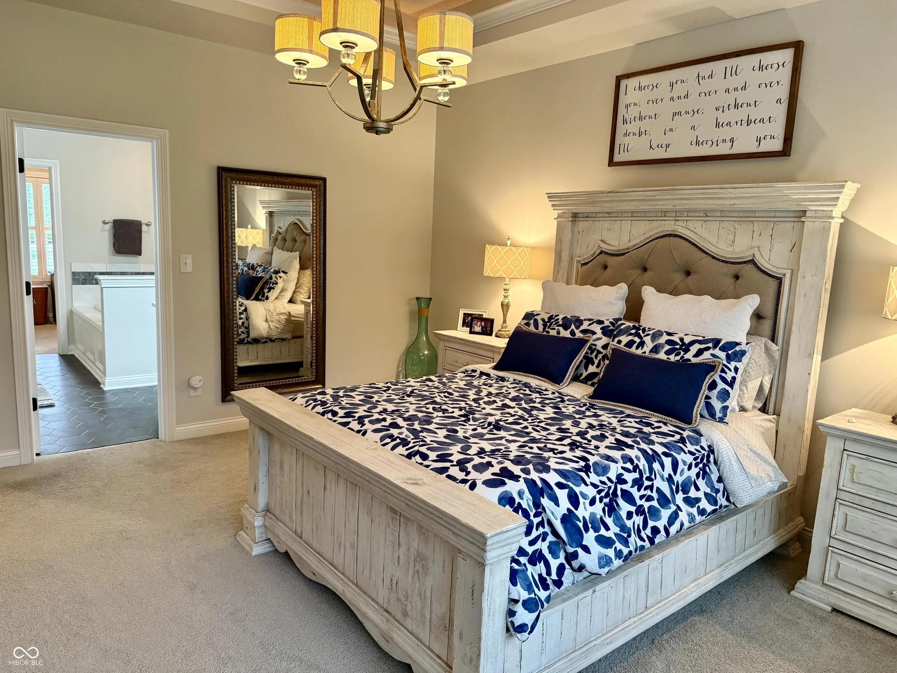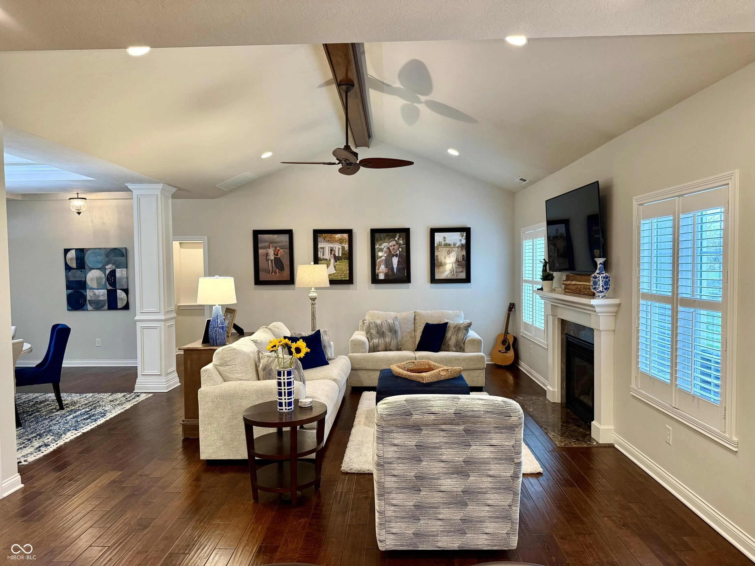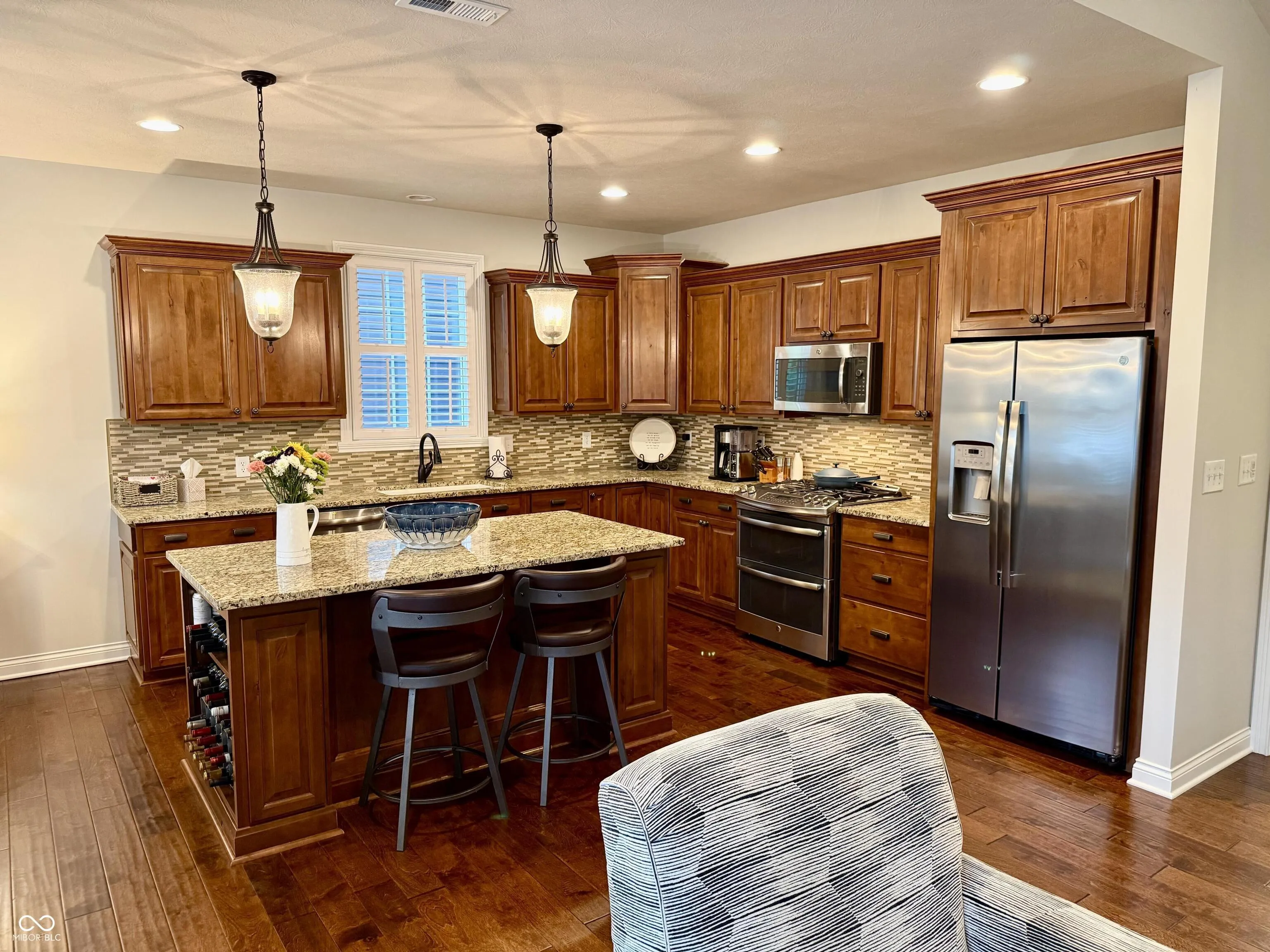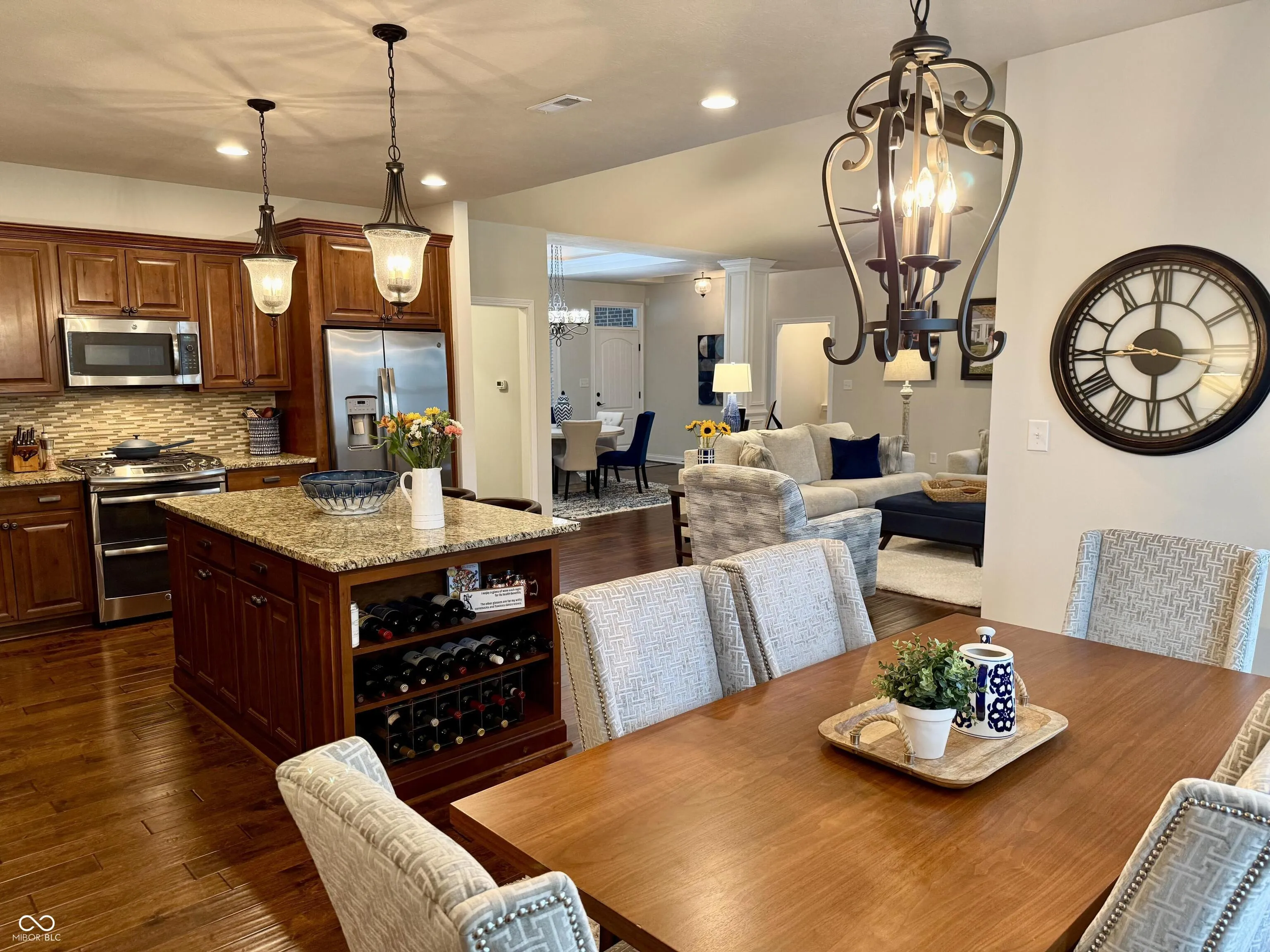 Welcome home to 15435 Mission Hills Dr. in the Villas at Bridgewater Lakes! This lovely custom home built in 2014 is 2868 square feet of extremely functional living space. It has 3 bedrooms, 2.5 baths, a den/office, cozy flex room upstairs, and a spacious 3 car garage with plenty of room for the golf cart! The primary master bedroom suite is located on the main level which allows for ample privacy with the two guest bedrooms located at opposite ends of the second level and also a full bath. The master features a newly remodeled bath with large walk-in closet. As you enter the home, you are greeted by the open floor plan on the main level which is fantastic for entertaining and includes great room with fireplace, dining room, kitchen and an additional dining area off of the kitchen. Living in Bridgewater you immediately become a social member with purchase of new home. Monthly dues to the club are $330 which includes everything but the championship golf course. Amenities include tennis courts, pickleball courts, indoor and outdoor pool, state of the art fitness center, dining, pro shop, golf simulators, locker room, driving range, 20 acre short game practice area, and access to the par 3 executive golf course. There is a communal park and playground close by and miles of walking/biking trails throughout the community. All yard maintenance including mowing, mulching, edging, trimming and blowing is included in your HOA plus snow removal!
