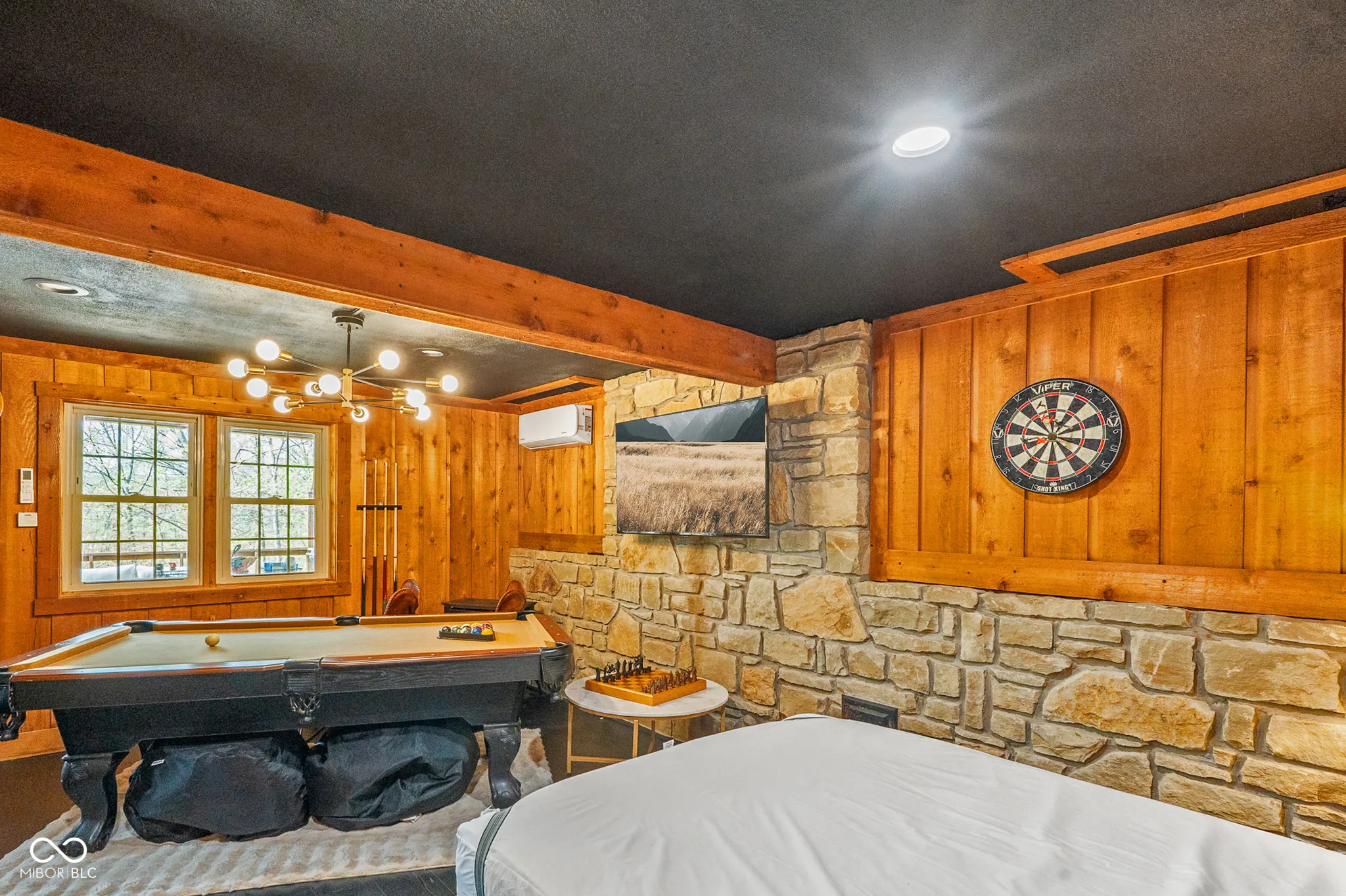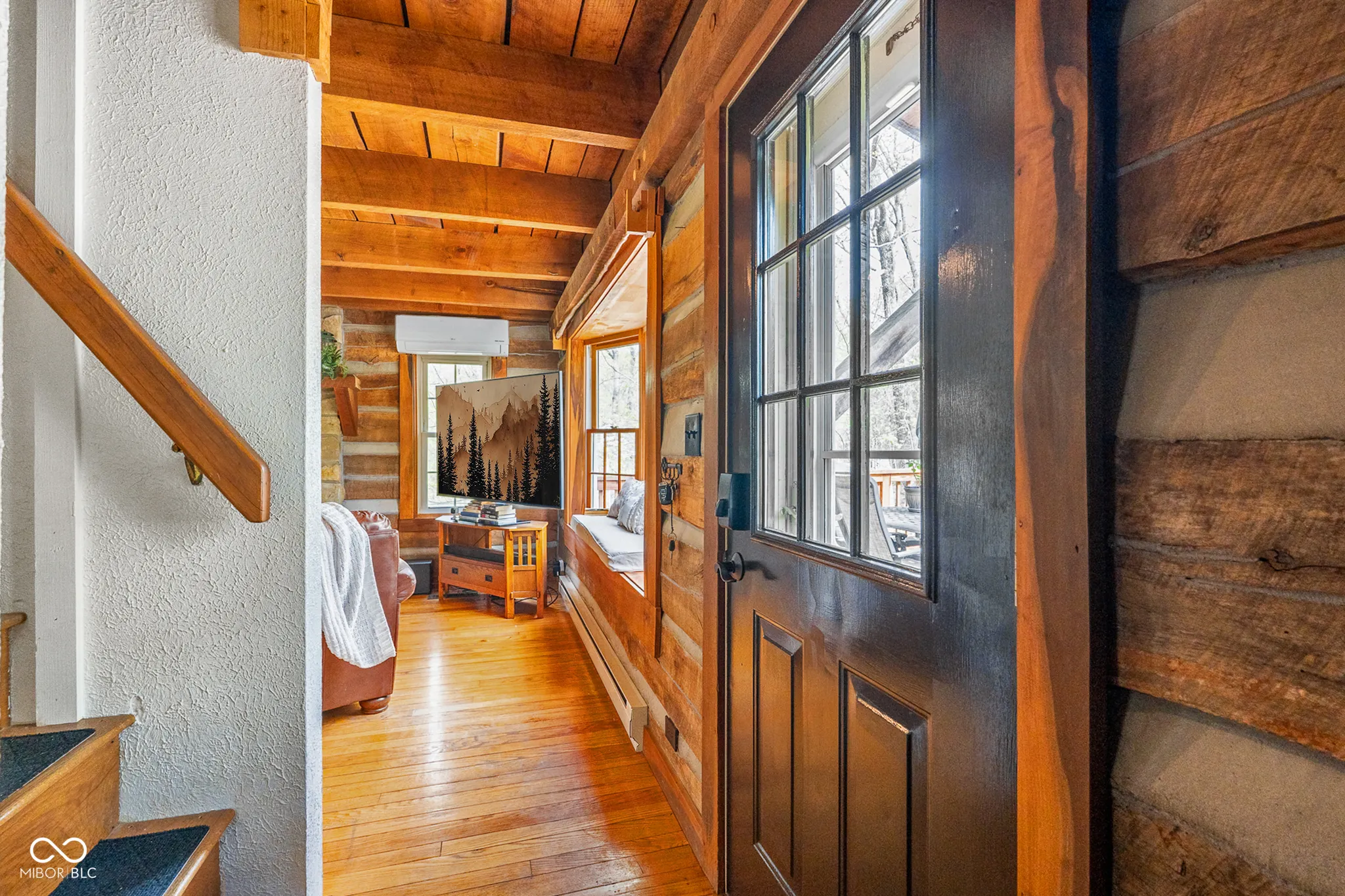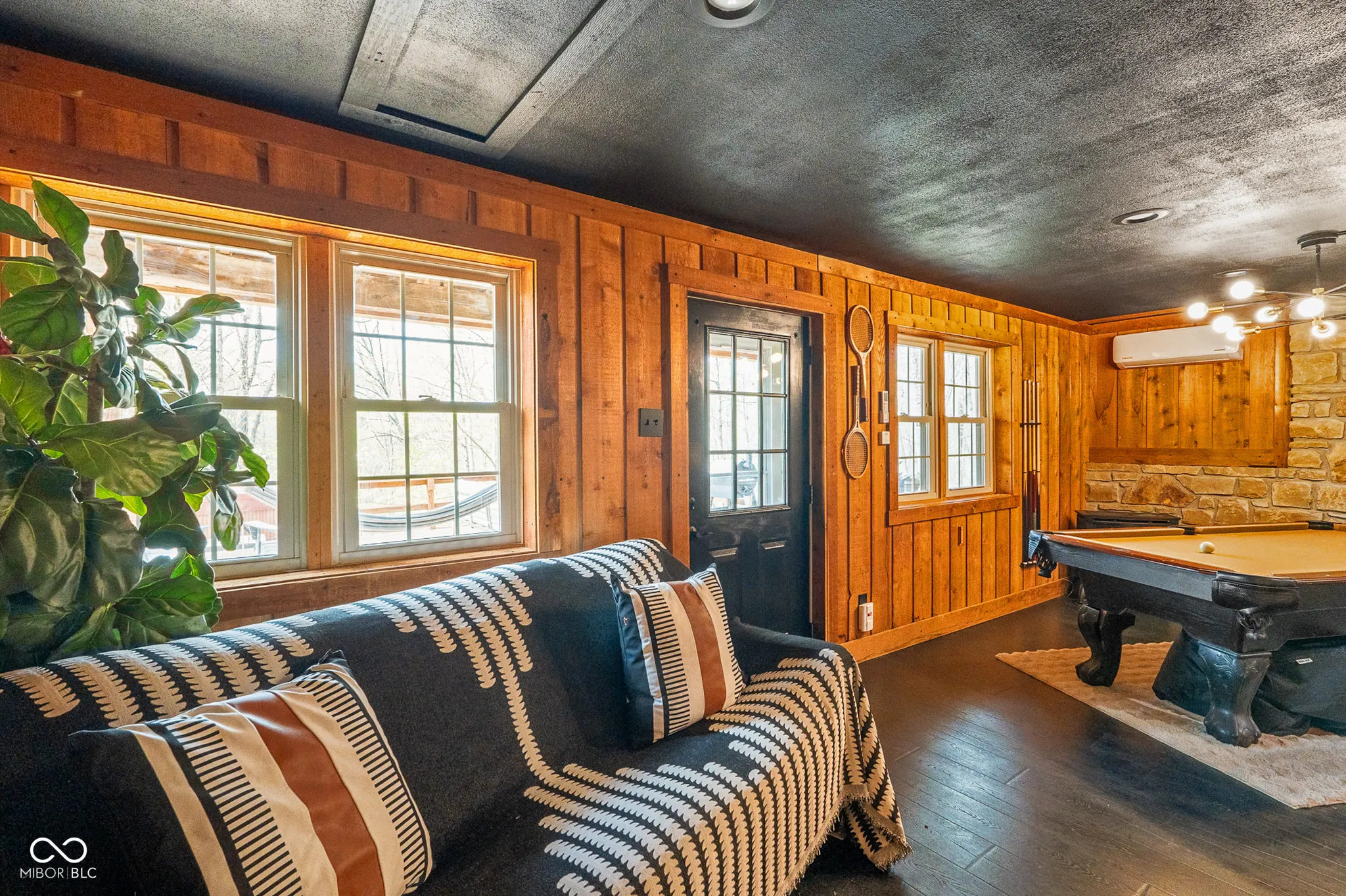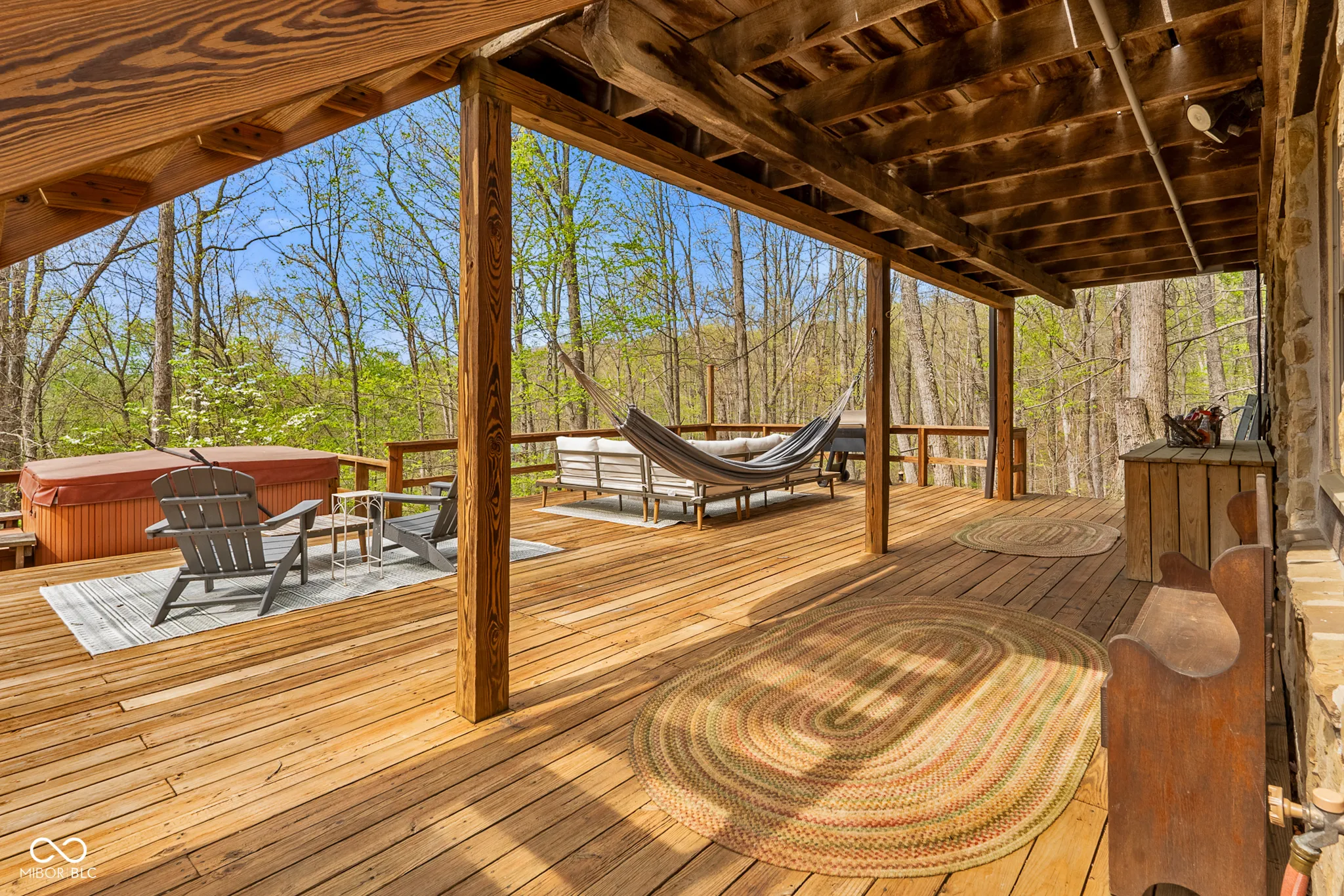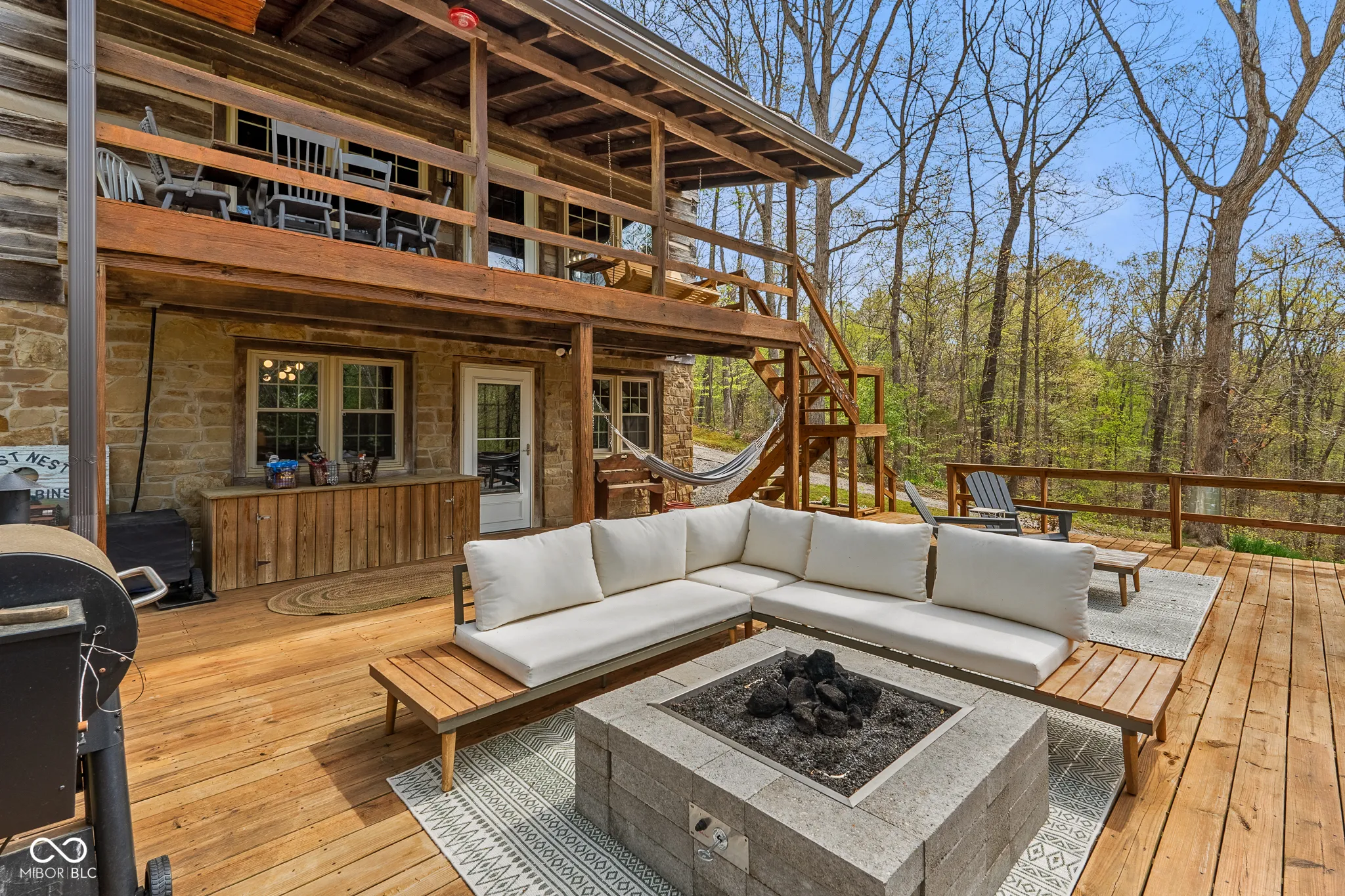 Lost & Found Cabin offers a rare opportunity to own a true Brown County log home with a Tourist Rental Exception already in place. Although it has not been used as a short-term rental since 2019, the exception remains, and the current owners hold a valid permit-allowing you to begin renting immediately. Set on 5 private wooded acres, this custom-built log cabin blends rustic charm with modern updates. Enjoy peaceful views from every window, relax on multiple decks, or unwind in the hot tub surrounded by nature. Inside, you’ll find hardwood floors, exposed beam ceilings, poplar hardwood doors and trim, mortise locks and hardware, custom hardwood countertops, and two gas log fireplaces-one in the living room and one in the primary bedroom. The finished basement expands the home’s functionality and entertainment space, featuring a pool table along with additional sleeping options including a Murphy bed and sleeper sofa-ideal for guests or short-term rental flexibility. The home is being sold fully furnished, including all kitchen dishes, cookware, and essentials, making it truly turnkey. Recent updates include a beautifully renovated kitchen, new stainless steel appliances, new mini-split heating and cooling units throughout the home (including the garage), and updated basement flooring. Outdoor living is just as inviting, with both a gas fire pit and a wood-burning fire pit for year-round enjoyment. The 30′ x 40′ detached garage offers excellent versatility with new windows, an upper-level storage area, and a 30′ x 15′ finished room perfect for a workshop, studio, gym, or hobby space. A low-maintenance metal roof adds peace of mind, and additional inclusions such as a generator, extra freezer in the garage, and Traeger grill further enhance the value. If you’ve been dreaming of a private cabin in the woods with income potential, modern comforts, and authentic Brown County character, Lost & Found Cabin is a must-see.