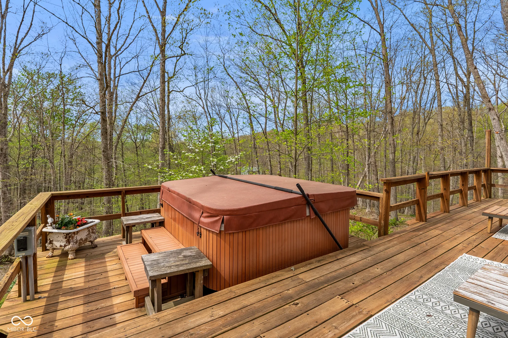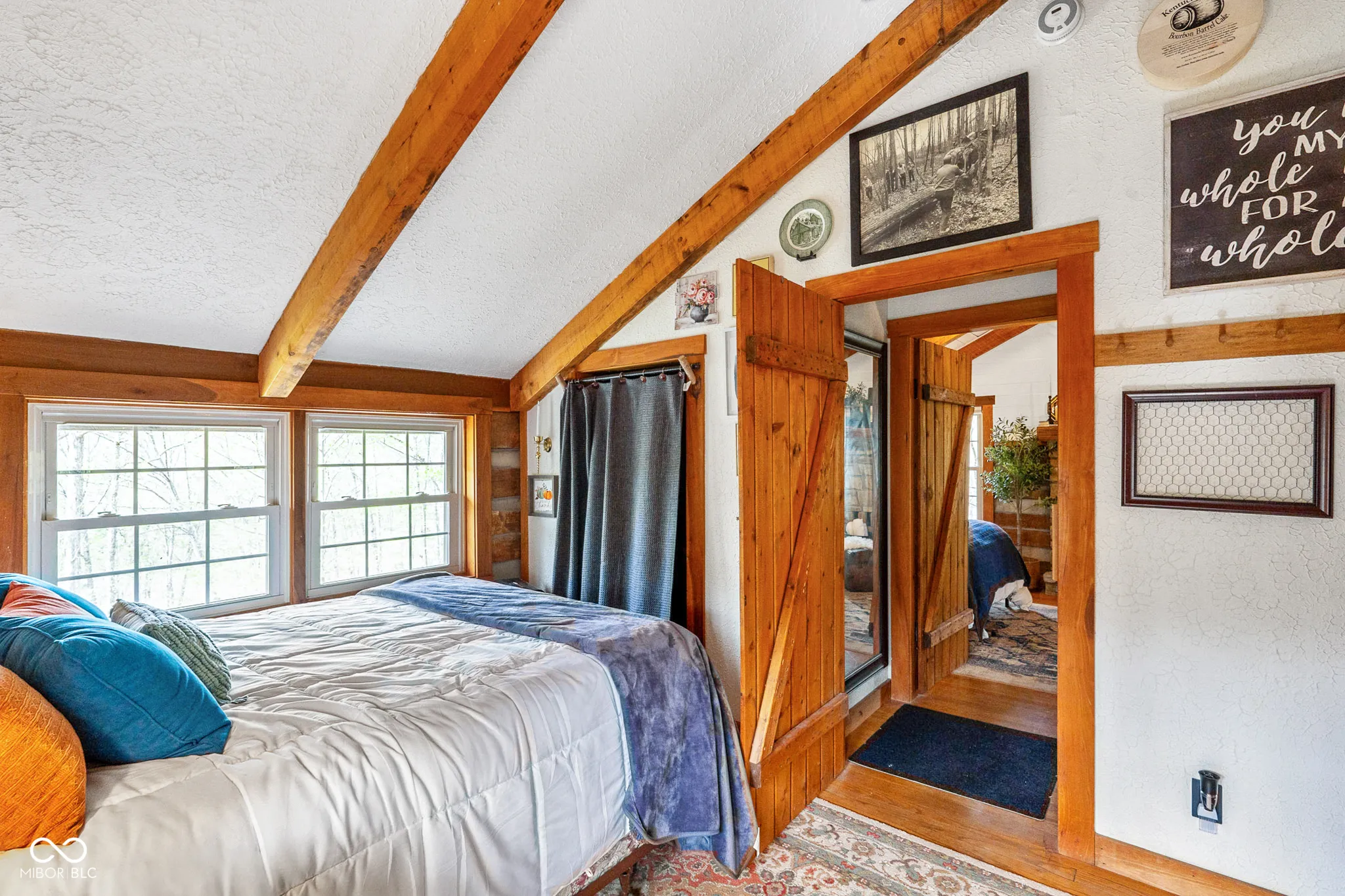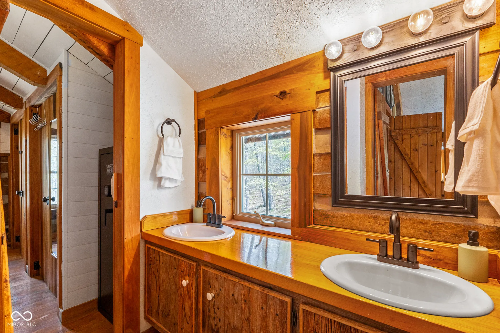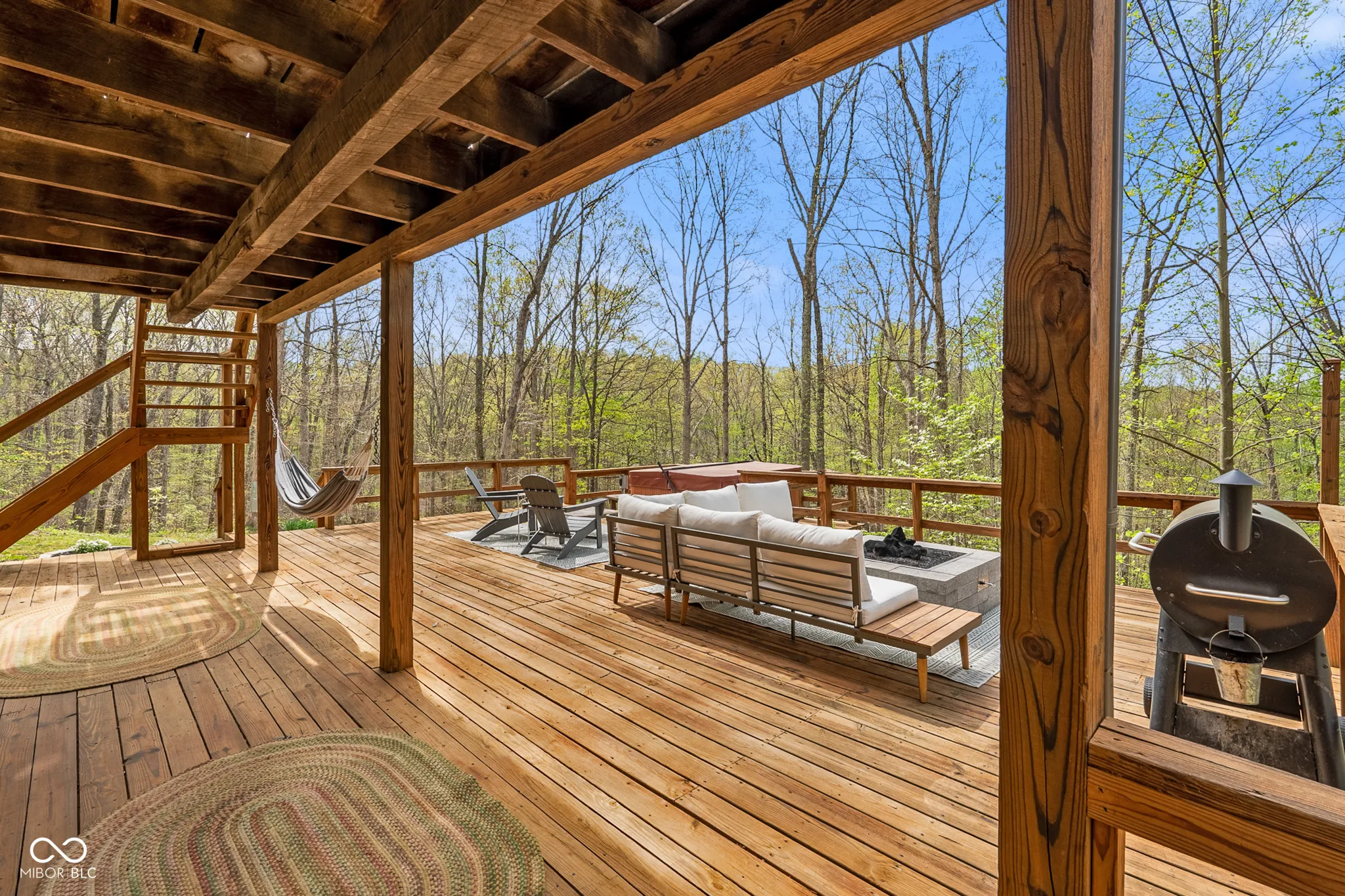 Lost & Found Cabin offers a rare opportunity to own a true Brown County log home with a Tourist Rental Exception already in place. Although it has not been used as a short-term rental since 2019, the exception remains, and the current owners hold a valid permit-allowing you to begin renting immediately. Set on 5 private wooded acres, this custom-built log cabin blends rustic charm with modern updates. Enjoy peaceful views from every window, relax on multiple decks, or unwind in the hot tub surrounded by nature. Inside, you’ll find hardwood floors, exposed beam ceilings, poplar hardwood doors and trim, mortise locks and hardware, custom hardwood countertops, and two gas log fireplaces-one in the living room and one in the primary bedroom. The finished basement expands the home’s functionality and entertainment space, featuring a pool table along with additional sleeping options including a Murphy bed and sleeper sofa-ideal for guests or short-term rental flexibility. The home is being sold fully furnished, including all kitchen dishes, cookware, and essentials, making it truly turnkey. Recent updates include a beautifully renovated kitchen, new stainless steel appliances, new mini-split heating and cooling units throughout the home (including the garage), and updated basement flooring. Outdoor living is just as inviting, with both a gas fire pit and a wood-burning fire pit for year-round enjoyment. The 30′ x 40′ detached garage offers excellent versatility with new windows, an upper-level storage area, and a 30′ x 15′ finished room perfect for a workshop, studio, gym, or hobby space. A low-maintenance metal roof adds peace of mind, and additional inclusions such as a generator, extra freezer in the garage, and Traeger grill further enhance the value. If you’ve been dreaming of a private cabin in the woods with income potential, modern comforts, and authentic Brown County character, Lost & Found Cabin is a must-see.