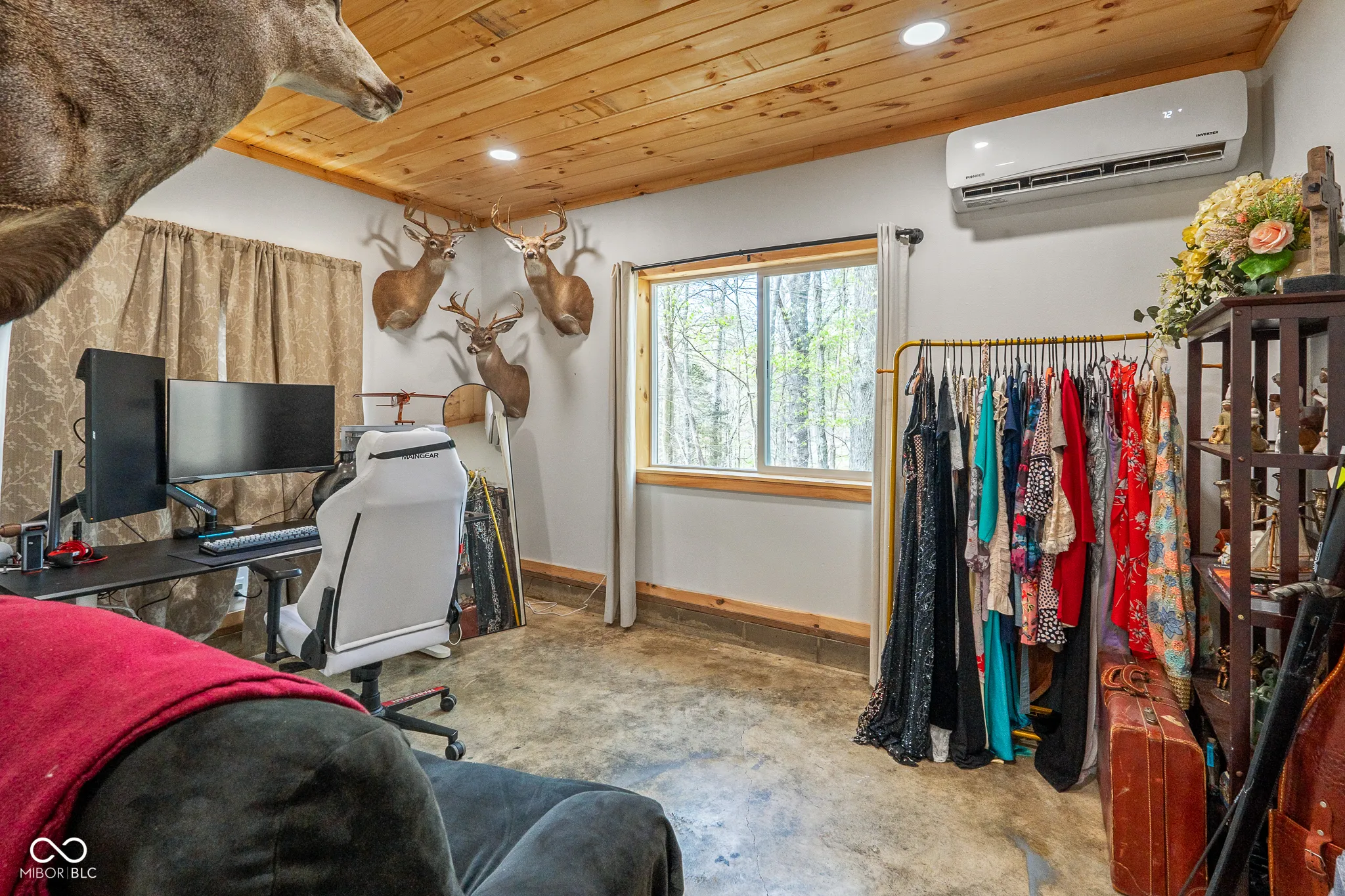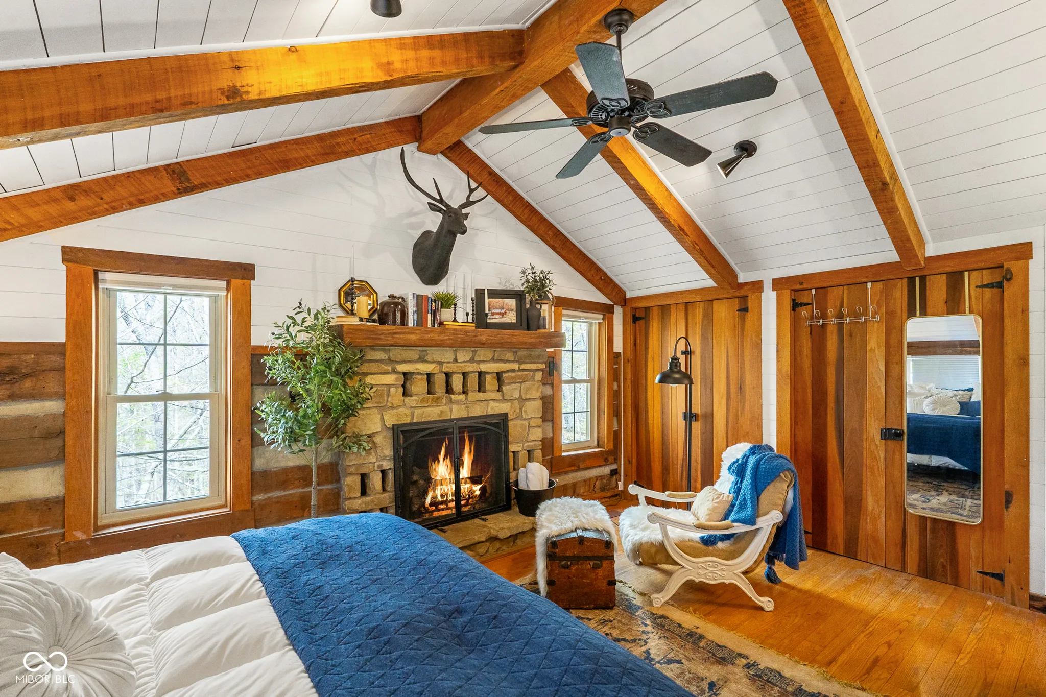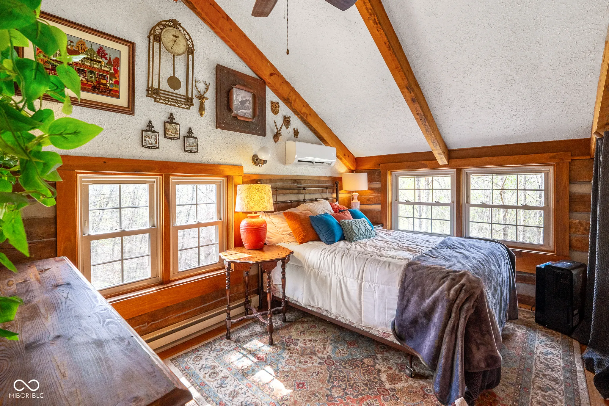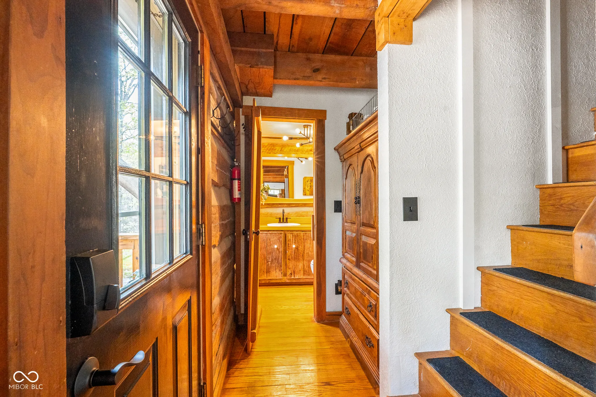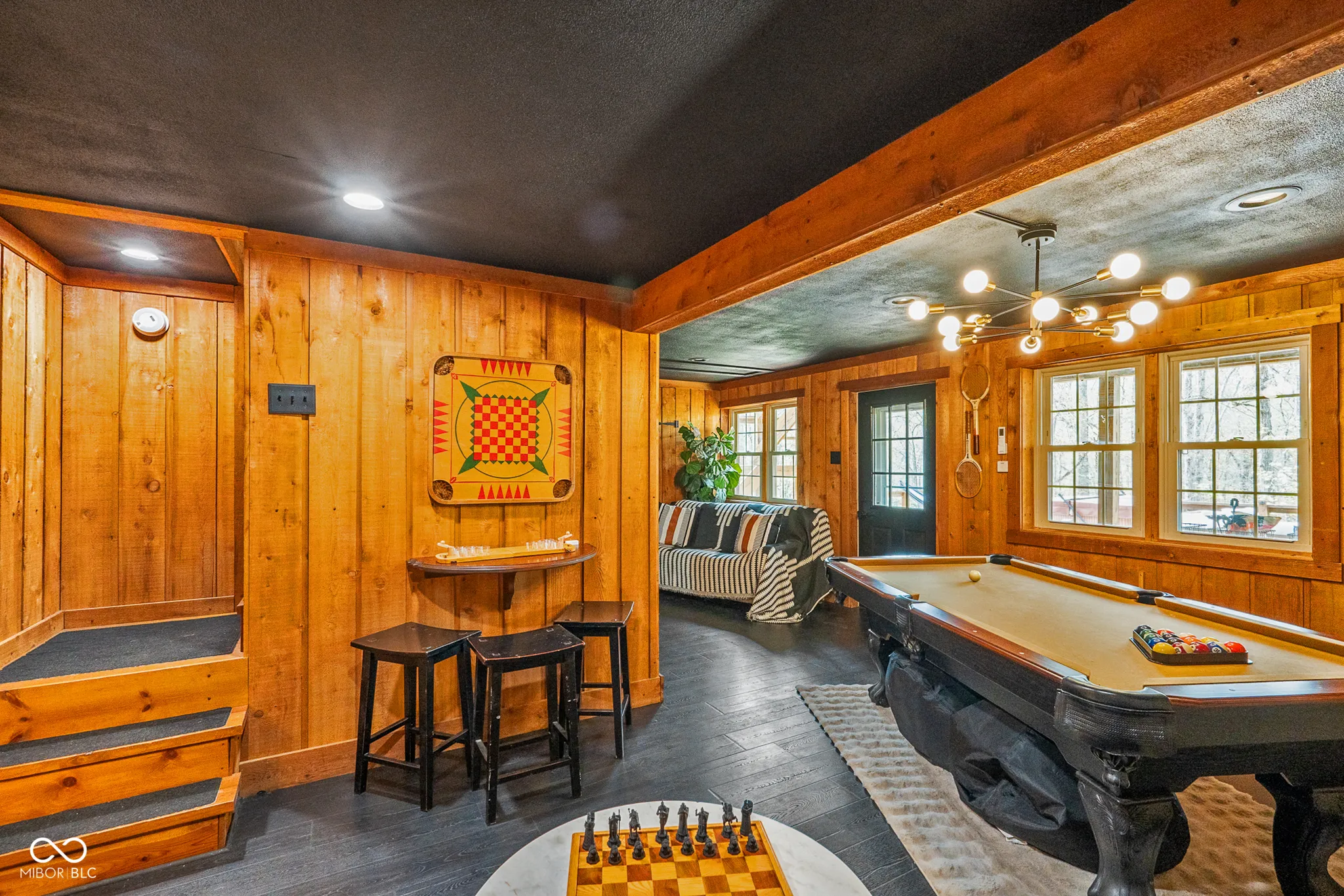 Lost & Found Cabin offers a rare opportunity to own a true Brown County log home with a Tourist Rental Exception already in place. Although it has not been used as a short-term rental since 2019, the exception remains, and the current owners hold a valid permit-allowing you to begin renting immediately. Set on 5 private wooded acres, this custom-built log cabin blends rustic charm with modern updates. Enjoy peaceful views from every window, relax on multiple decks, or unwind in the hot tub surrounded by nature. Inside, you’ll find hardwood floors, exposed beam ceilings, poplar hardwood doors and trim, mortise locks and hardware, custom hardwood countertops, and two gas log fireplaces-one in the living room and one in the primary bedroom. The finished basement expands the home’s functionality and entertainment space, featuring a pool table along with additional sleeping options including a Murphy bed and sleeper sofa-ideal for guests or short-term rental flexibility. The home is being sold fully furnished, including all kitchen dishes, cookware, and essentials, making it truly turnkey. Recent updates include a beautifully renovated kitchen, new stainless steel appliances, new mini-split heating and cooling units throughout the home (including the garage), and updated basement flooring. Outdoor living is just as inviting, with both a gas fire pit and a wood-burning fire pit for year-round enjoyment. The 30′ x 40′ detached garage offers excellent versatility with new windows, an upper-level storage area, and a 30′ x 15′ finished room perfect for a workshop, studio, gym, or hobby space. A low-maintenance metal roof adds peace of mind, and additional inclusions such as a generator, extra freezer in the garage, and Traeger grill further enhance the value. If you’ve been dreaming of a private cabin in the woods with income potential, modern comforts, and authentic Brown County character, Lost & Found Cabin is a must-see.