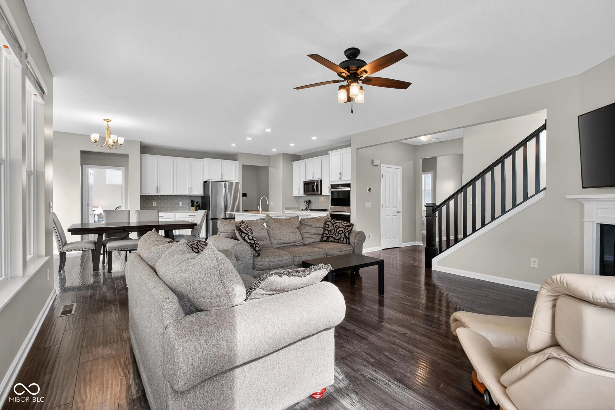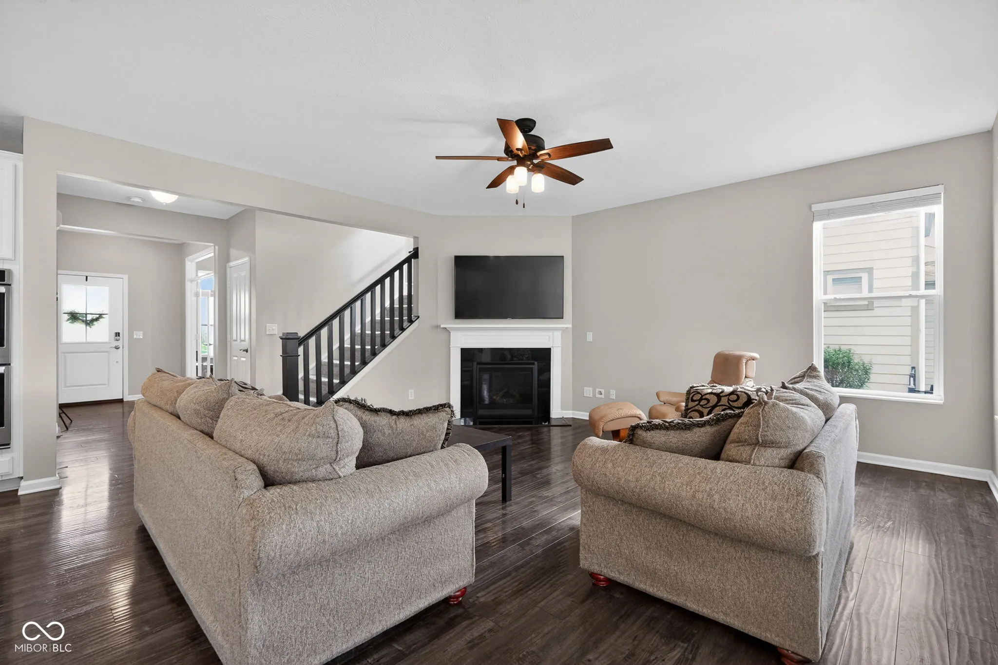 Nestled in Noblesville’s Turnberry subdivision, this expansive 3876-square-foot home blends modern luxury with everyday convenience. A welcoming facade opens to a thoughtfully designed interior featuring five bedrooms and 2.5 baths, with a versatile fifth bedroom on the main level ideal for guests. The main level also has an office with a glass doors, perfect for remote work, while upstairs features a loft that’s the perfect flex space or bonus room. The heart of the home is a gourmet kitchen, complete with a center island, walk-in pantry, and stainless appliances, flowing into a generous great room with a gas fireplace. Upstairs, all bedrooms feature walk-in closets, and the primary suite offers double sinks, a tiled shower, and a roomy walk-in closet. A dedicated upstairs laundry adds everyday practicality, and the basement provides an egress window plus rough-in for a full bath, expanding future possibilities. Outside, enjoy a covered patio and a fully fenced backyard, with community amenities including a pool and park, all within the HSE school district.