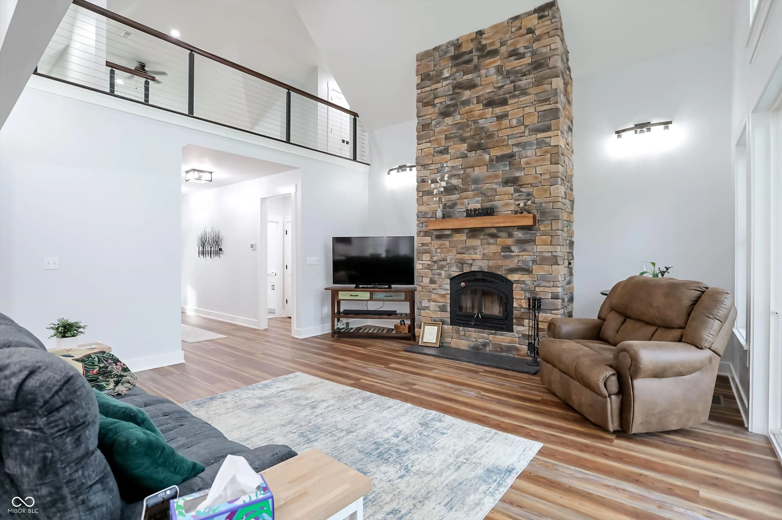 Beautifully maintained 3BR/3BA home on 21 wooded, park-like acres offering privacy, serenity, and modern comfort. Built just 3 years ago, the home features a desirable main-level primary suite with adjoining bath. The family room showcases a wood-burning fireplace with blower that efficiently heats both the family room and primary bedroom. The upper level includes a spacious loft, two additional bedrooms, and a full bath – ideal for guests or family living. Numerous upgrades throughout include 400-amp electrical service with whole-house generator back-up, and an encapsulated crawl space with dedicated dehumidifier for added efficiency and peace of mind. Enjoy the outdoors year-round from the covered concrete front and back porches overlooking the tranquil setting. The 21-acre property offers established trails, scenic creek views, and multiple fire pit areas-perfect for relaxing or entertaining. Additional features include a 42×38 Amish-built pole barn (4 years old), providing excellent space for storage, workshop, or recreational use. A rare opportunity to own a move-in ready home in a peaceful, natural setting with thoughtful upgrades throughout.