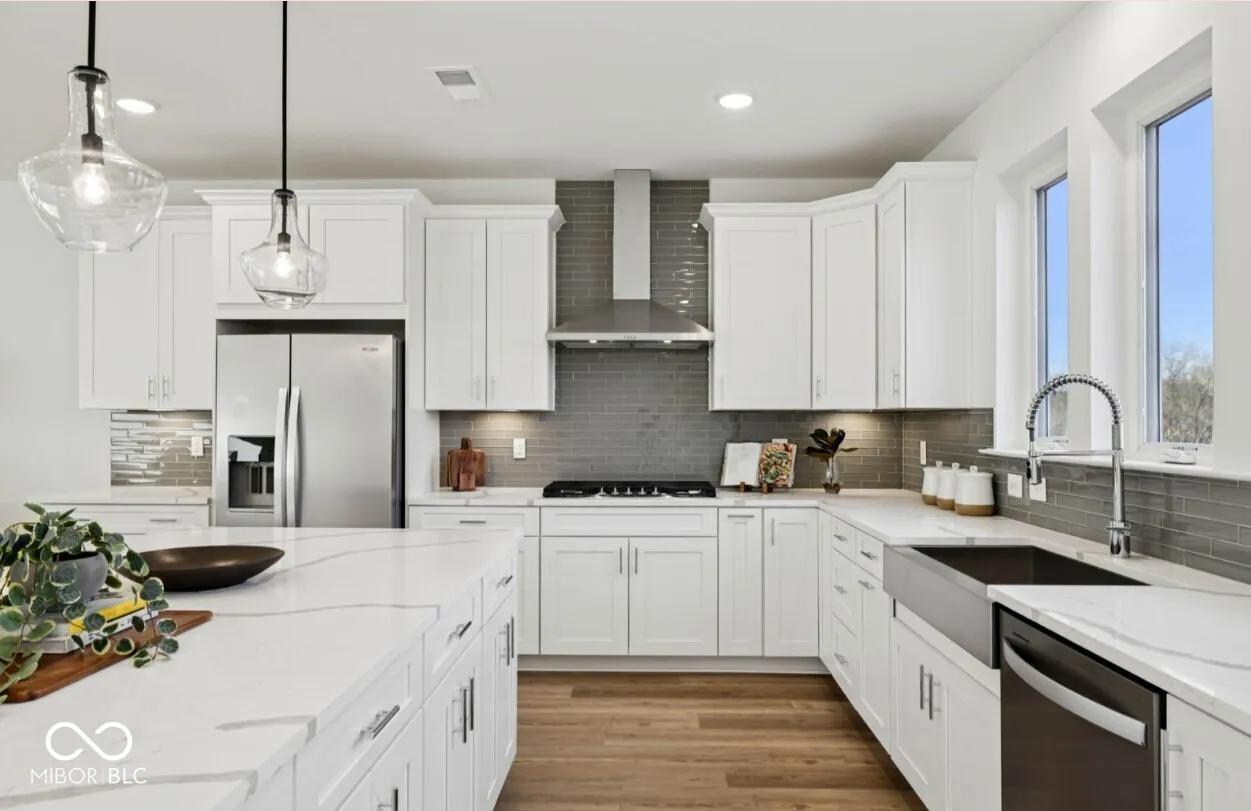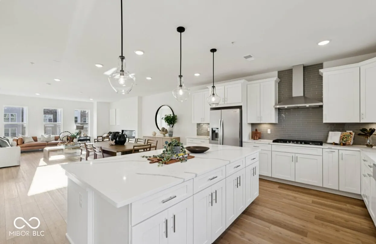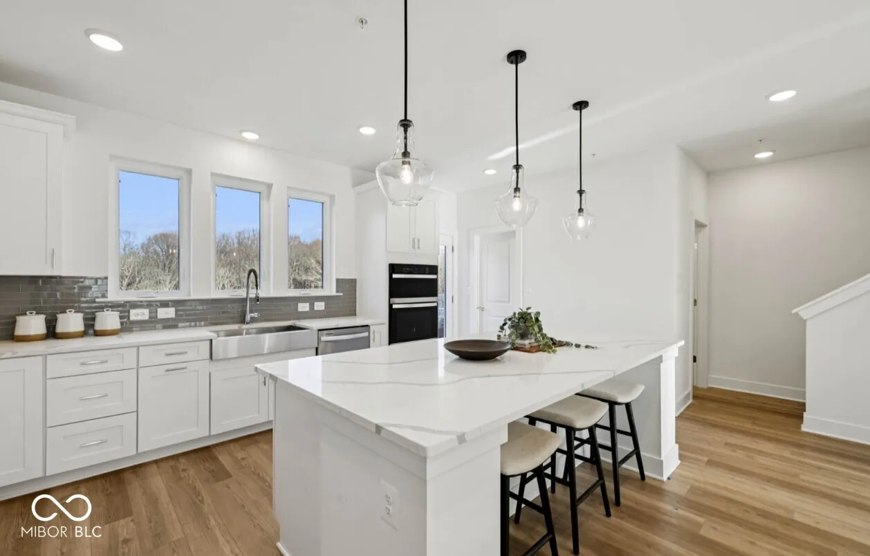 Discover modern END-UNIT living with the stylish and versatile Isleton floor plan, located in the highly desirable Towns at Union. This thoughtfully designed townhome welcomes you with an open main level that seamlessly blends comfort and functionality, perfect for relaxing or entertaining. At the heart of the home is a beautifully appointed kitchen featuring Aruca White quartz countertops, a built-in wall oven and microwave, a 36″ gas cooktop with a 36″ vented hood, and 42″ white cabinetry-offering both style and efficiency. The kitchen flows effortlessly into the cafe dining area and gathering room, creating an inviting space for everyday living. The lower level includes a spacious game room. Upstairs, the expansive owner’s suite provides a true retreat with a double sink vanity, walk-in shower with built-in seat, private water closet, and a spacious walk-in closet. Two additional bedrooms and a convenient laundry room-complete with washer and dryer-round out the upper level. Located in the heart of Westfield, this neighborhood offers an unbeatable blend of convenience and lifestyle. Enjoy walking or biking access to Downtown Westfield, where dining, entertainment, and local charm await. Just steps away, Grand Junction Plaza serves as a vibrant 6-acre civic space featuring scenic trails, landscaped green spaces, a cafe, amphitheater, playground, and even an ice rink-perfect for year-round enjoyment. Commuting is easy with proximity to US-32 and US-31, and outdoor enthusiasts will appreciate quick access to the Monon Trail, only a half mile away. Residents are also near popular dining and retail options along Park Avenue and Main Street, and surrounded by top-tier recreation. Photos of Similar Model.