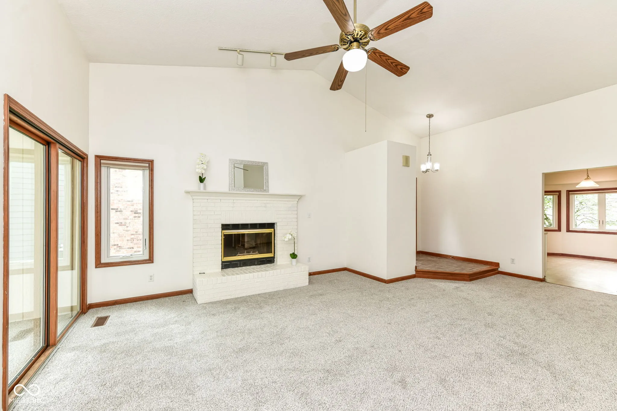 Enjoy effortless, low-maintenance living in this inviting 2-bedroom, 2-bath end-unit condominium in popular Foxchase. Move in ready with new flooring and fresh paint – your only task is to relax and take in the peaceful 3-season sun room views. Ideally located just minutes from Geist Reservoir, Ft. Harrison State Park, and Indian Creek Country Club, plus the Fall Creek Trail is right behind the neighborhood and it’s an easy commute to downtown Indy. Inside, the light-filled great room features soaring cathedral ceilings and a cozy brick gas-log fireplace, creating a warm yet open gathering space. The spacious primary suite offers its own cathedral ceiling, skylight, walk-in closet, and ensuite bath with double sinks, soaking tub, and separate shower. Additional highlights include a two-car garage with built in shelving units. Improvements include Skylight (’25), Roof (’25) and Brand New Carpet & Brand New Paint (’26) It’s true low-maintenance living, with lawn care and exterior upkeep handled by the HOA. Spend your time enjoying nearby trails, golf, Geist Reservoir, and local favorites like Sundae’s and AJ’s. A rare opportunity for easy, single-level living in a prime location-schedule your showing today.