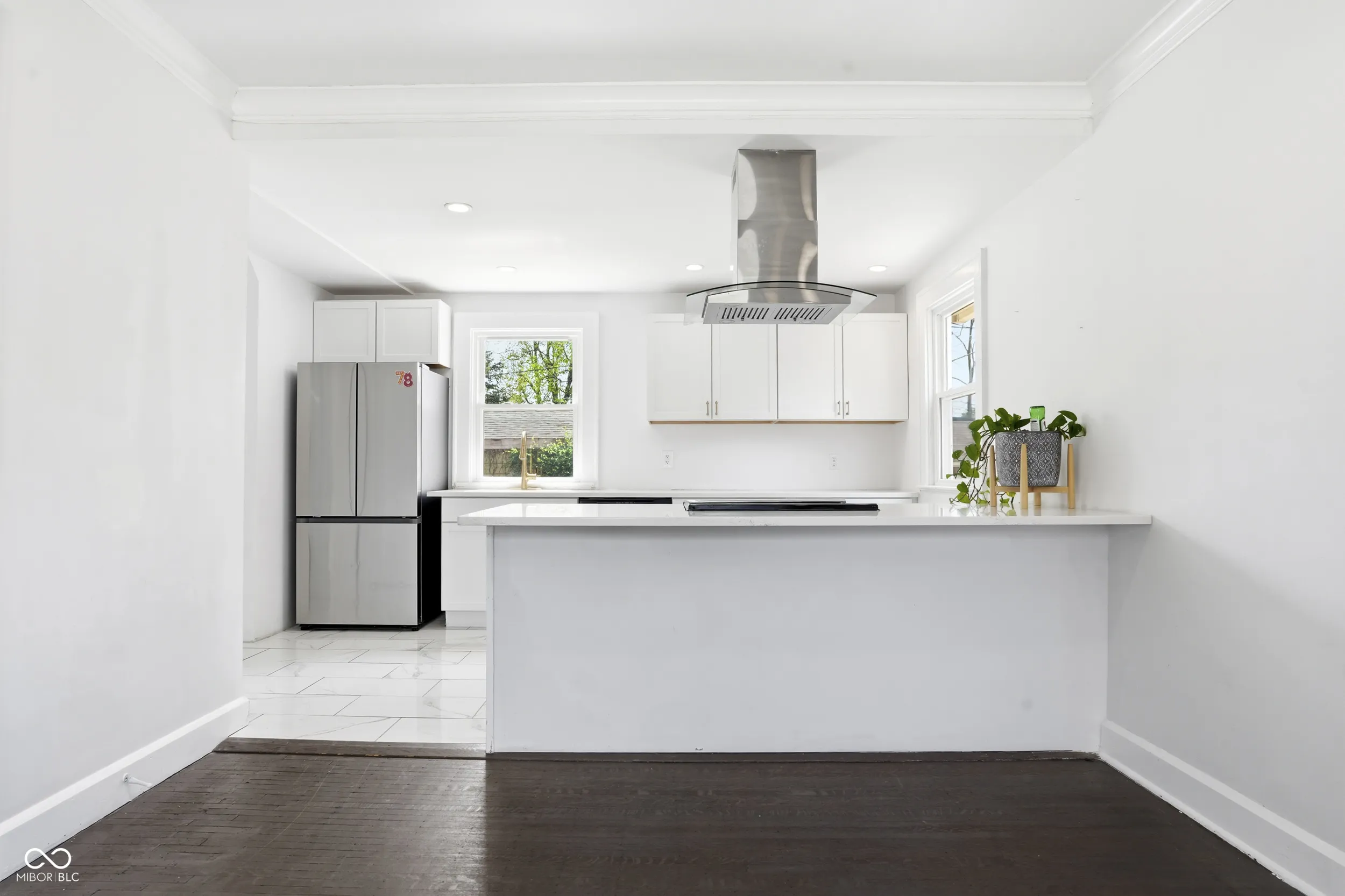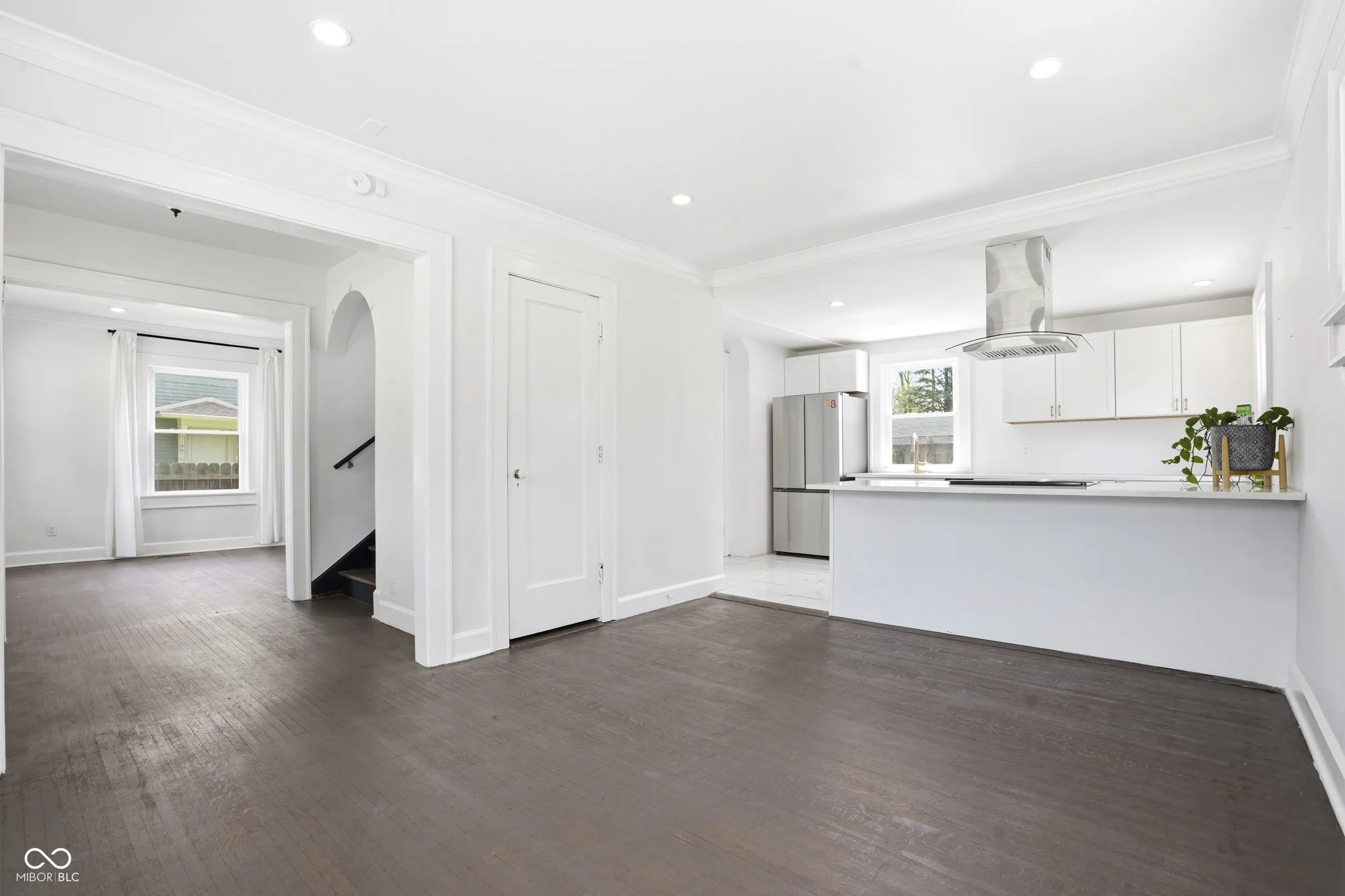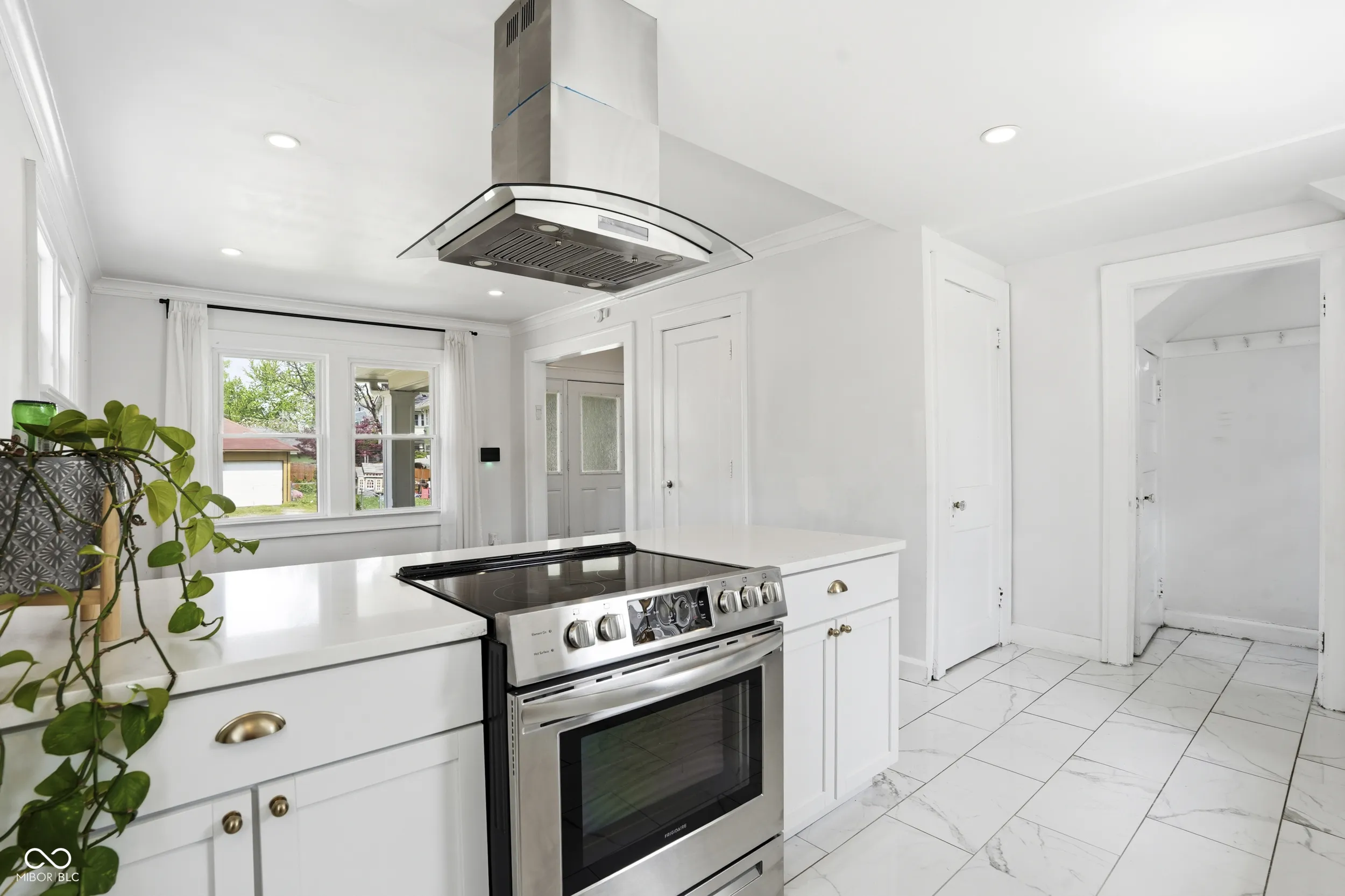 Located at 821 E 36th St, this updated 1922 home offers a thoughtful blend of classic character and modern functionality in a highly connected Indianapolis location. Inside, the living room provides a warm and inviting space centered around a fireplace and detailed with crown molding. The kitchen is both practical and well designed, featuring shaker cabinetry, stone countertops, a peninsula for seating, and a statement range hood. Large windows throughout the home bring in an abundance of natural light, creating a bright and comfortable feel from morning through evening. The home includes three bedrooms, two full bathrooms, and one half bath. A tiled walk-in shower adds a clean, modern touch, while the layout offers a balance of open flow and defined spaces that make everyday living easy. Outdoor areas include a covered front porch and rear patio, along with additional usable space connected to the alley. The location offers convenient access to the Monon Trail, Fall Creek Greenway, local coffee shops, public library, and nearby parks. With 1,488 square feet on the main and upper levels and a distinctive gambrel roofline, this home delivers a solid combination of character, updates, and location.
