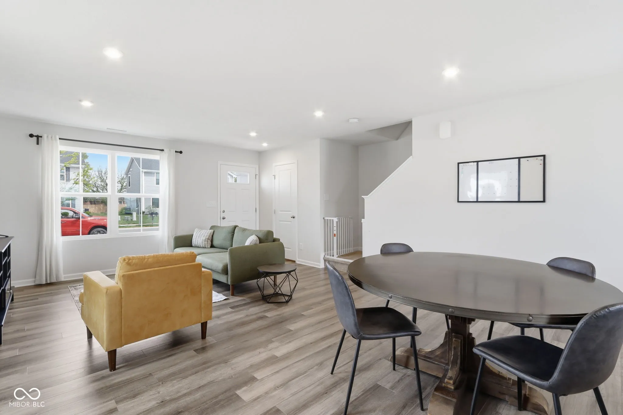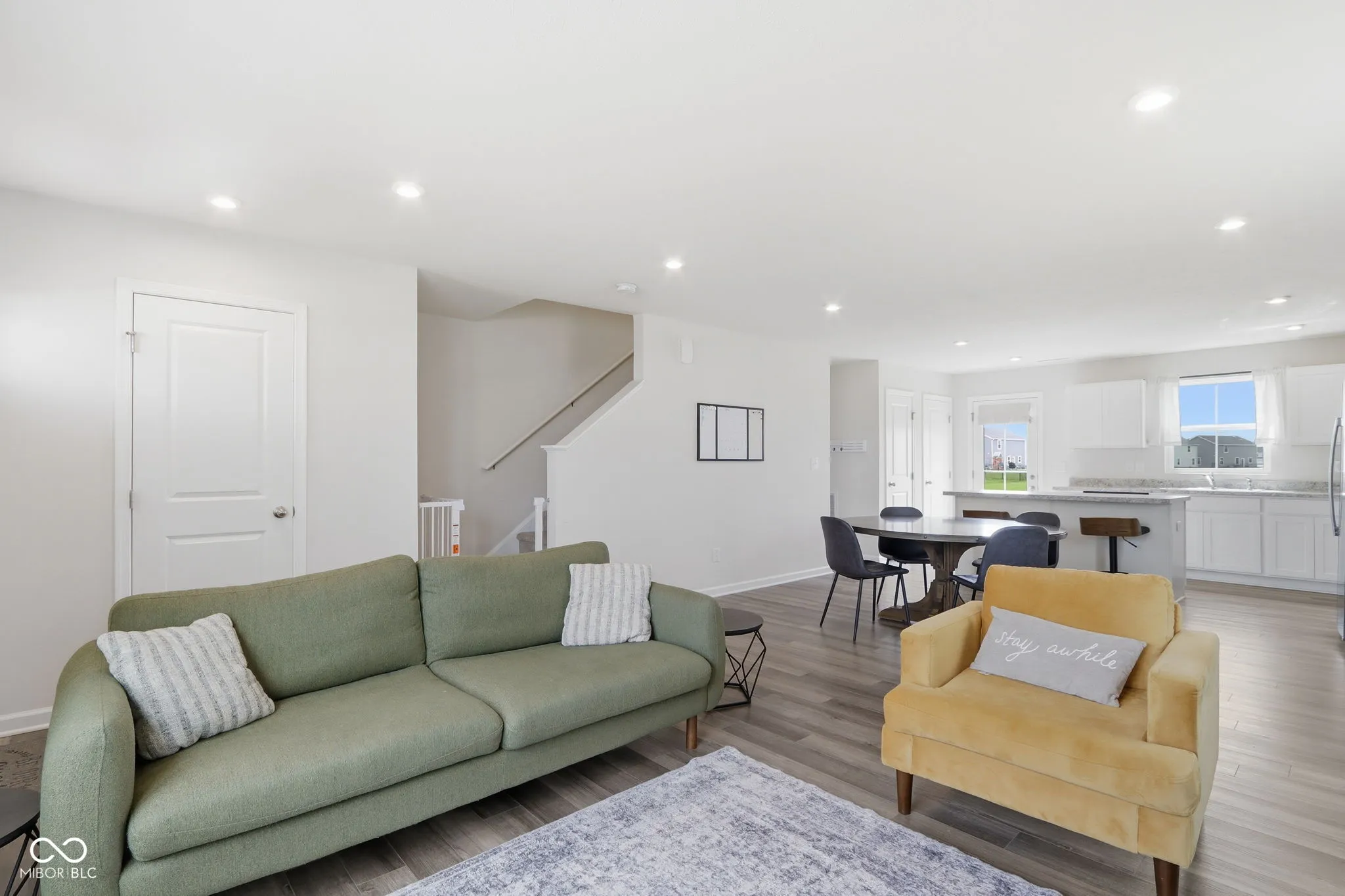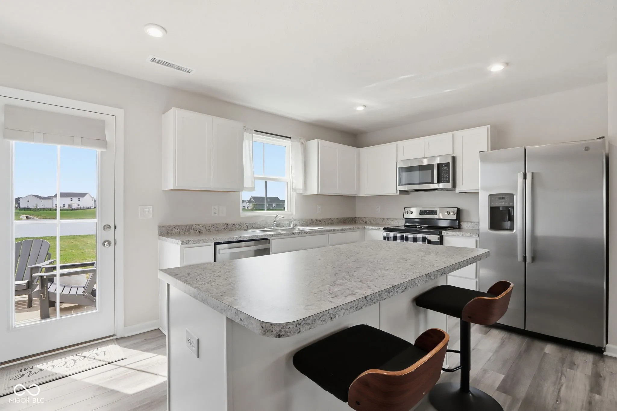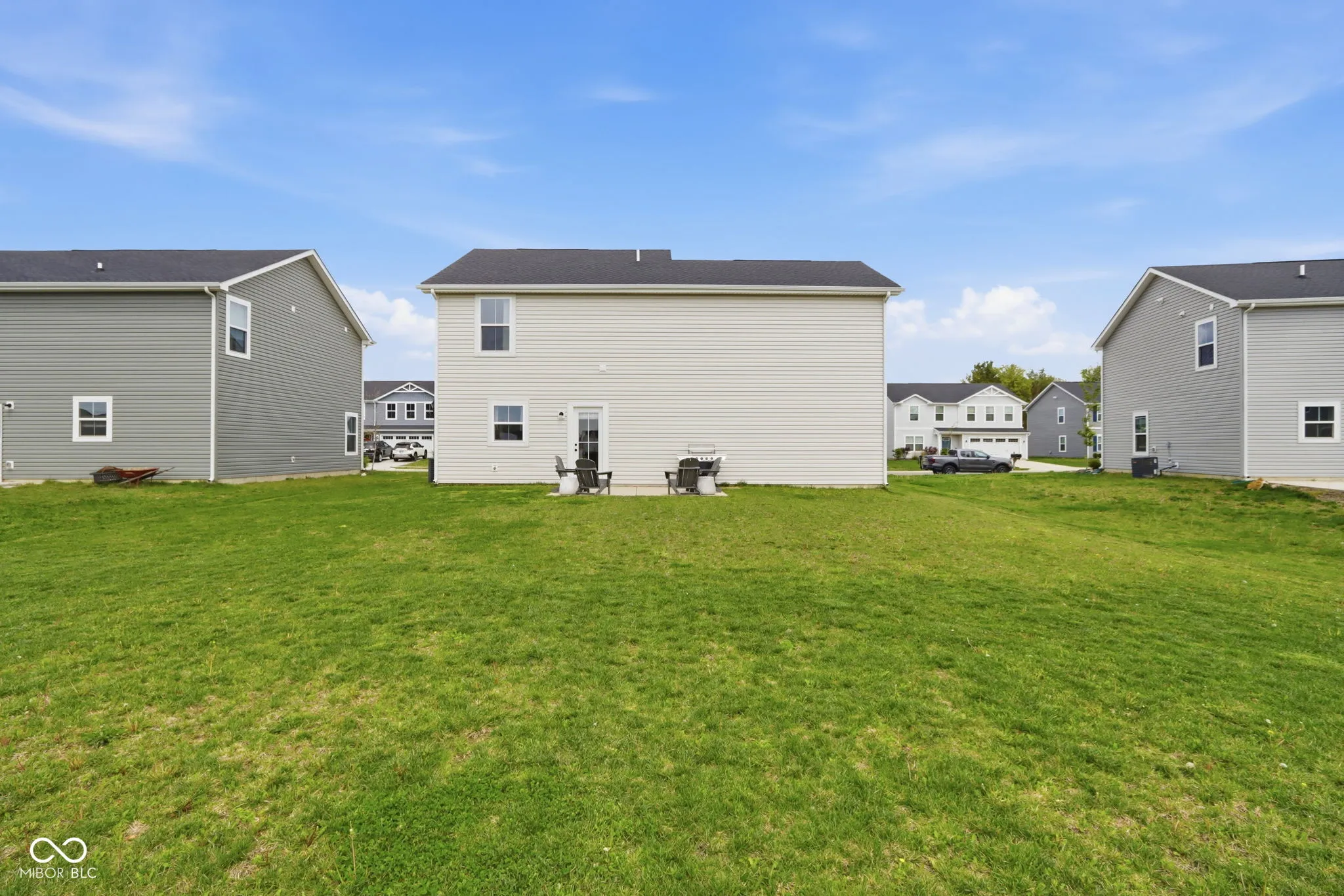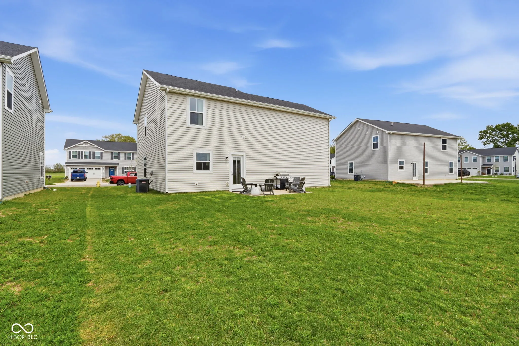The heart of the home features a bright, open-concept main level where the expansive great room flows seamlessly into a kitchen equipped with stainless steel appliances that are included, crisp white cabinetry, and a large center island. This level is designed for convenience, offering a welcoming foyer, a discrete half bath, and direct access to a two-car garage. Transition easily from the dining area to your private outdoor retreat, which includes a 10 x 14 concrete patio perfect for summer BBQs and offers a view of a pond. The upper floor features four bedrooms, three of which have walk-in closets. The primary suite offers a private en-suite bath with a double-sink vanity. For ultimate convenience, a dedicated laundry room is located on this level, eliminating the need to carry baskets up and down the stairs. In addition to the kitchen appliances staying, the washer, dryer and deep freezer will also be included! This home is conveniently located close to all that Greenfield has to offer and is ready for new owners!
