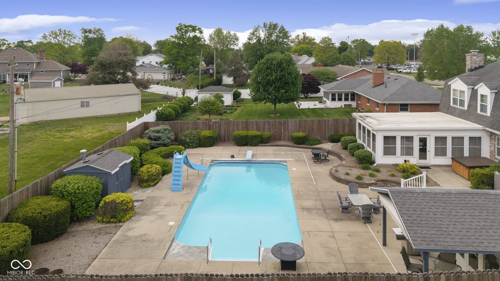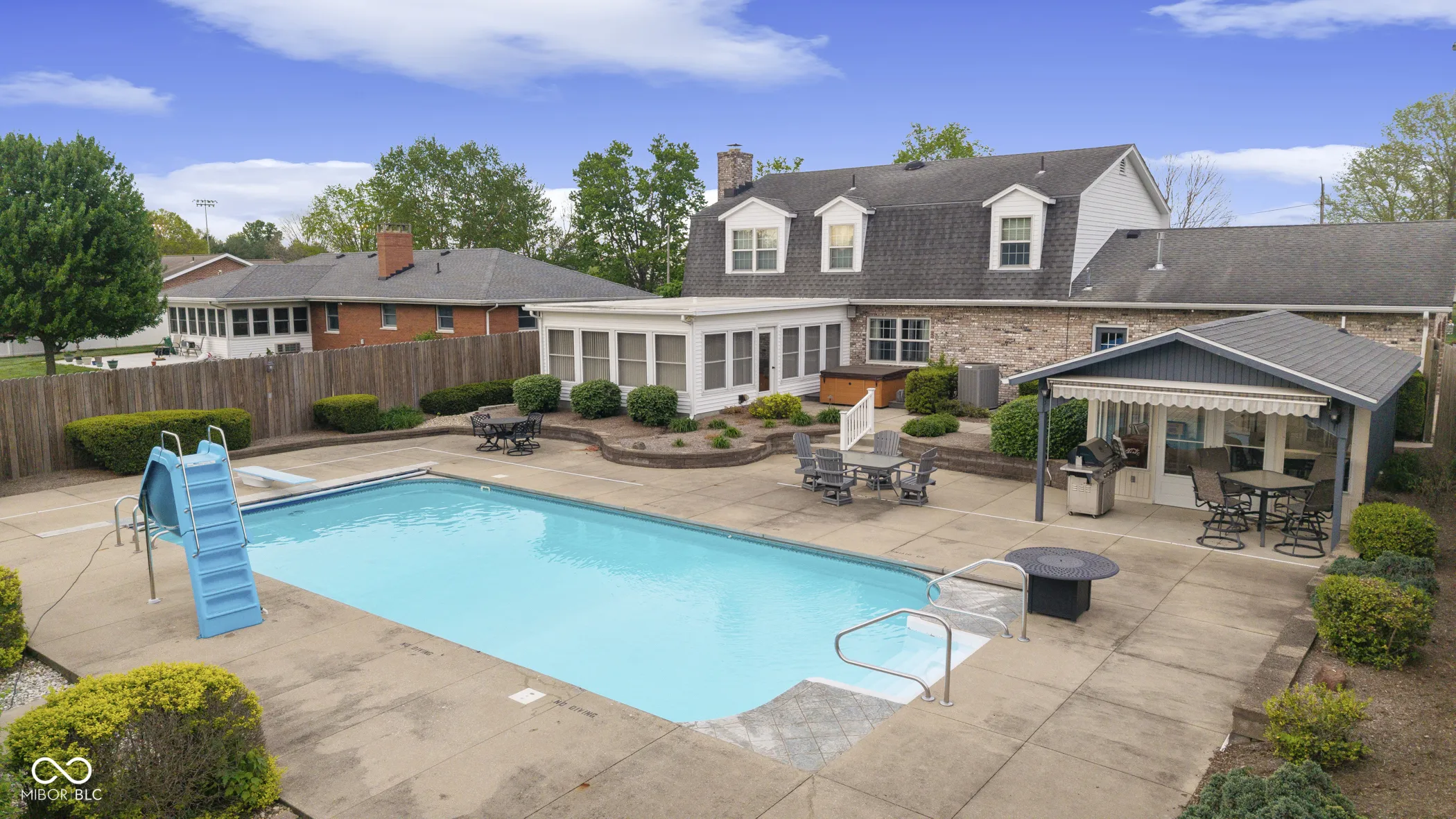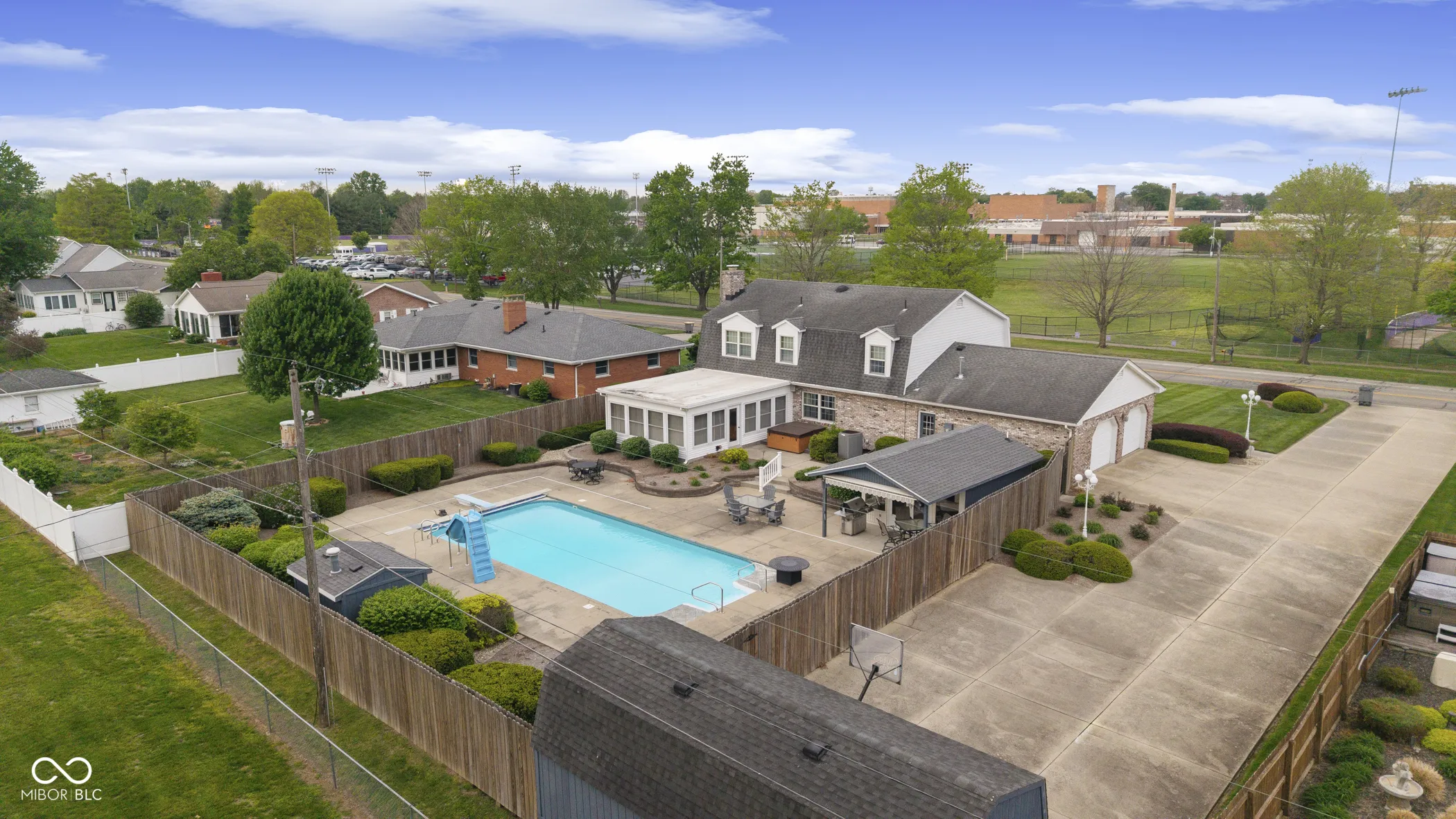 Step into comfort with this meticulously and lovingly maintained 3,000 sq. ft. Dutch Colonial Revival home, located within walking distance of Seymour High School and just a stroll away from the football stadium. The home boasts an extensive, professionally landscaped front and rear yard, complete with an irrigation system for easy upkeep. Enjoy a long, expansive double concrete driveway and a large three-car garage, perfect for all your vehicles and toys, as well as two utility sheds. Dive into your own paradise with a resort-style backyard featuring a heated in-ground pool (20 x 40) with a slide and an automatic cover. Relax in the pool house equipped with a bar, full bath with sink, shower, and toilet-all of this is surrounded by a 7-foot privacy fence for ultimate seclusion. Unwind in the hot tub under the stars or entertain friends and family in the beautifully landscaped backyard-an oasis designed for unforgettable memories. Inside, you’ll find an updated kitchen with granite countertops and modern stainless appliances, alongside a cozy family room complete with a brick fireplace, built-in bookshelves, and elegant wood beams. The main level also features a formal living room and a spacious multipurpose rec room/sunroom, offering endless possibilities for relaxation and entertainment. Retreat to the upper floor, where four spacious bedrooms await. Enjoy elegant crown molding, solid six-panel wood doors and trim, built-in shelving, and cedar-lined closets that add both style and functionality. The primary Bedroom is 18×13 and features a private bathroom and walk-in closet. Don’t miss your chance to own this piece of paradise! This home is perfect for families, entertainers, and anyone seeking a tranquil retreat. Schedule your private tour today!