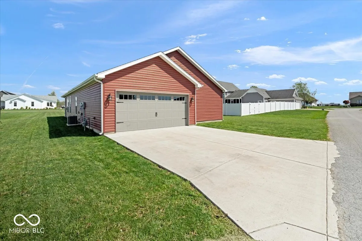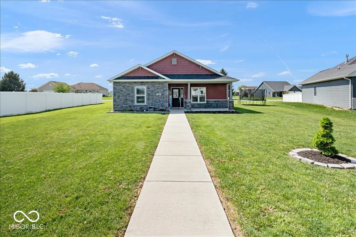 Welcome home to this newer built, beautiful, immaculate 3 bedroom, 2 bath ranch offering 1,764 square feet of stylish and functional living space. From the moment you walk in, you will appreciate the open layout and split bedroom floor plan that provides both comfort and privacy. The spacious primary suite is a true retreat featuring a vaulted ceiling, double sinks, walk-in tile shower, walk-in closet, and a large linen closet. The kitchen is designed for everyday living and entertaining with a large center island, stainless steel appliances, tile backsplash, and a desirable corner pantry, all flowing seamlessly into the main living areas. Additional living space includes a spacious sitting room that can be used as a den or office, filled with natural light from large windows. You will also appreciate the large laundry room complete with built-in cabinetry, offering excellent functionality and organization. Throughout the home, you’ll find an abundance of storage with multiple closets, thoughtfully designed cabinetry, and additional attic space. This home has been meticulously cared for and is truly move-in ready. Additional highlights include an in-ground sprinkler system, gas furnace, and gas water heater for added efficiency and convenience. Step outside to enjoy the beautiful front porch, perfect for relaxing or entertaining. Located in the desirable Buttonwood Field community with easy access to local amenities, this home also offers the charm and appeal of living in Tipton, a welcoming small town known for its strong sense of community, excellent schools, local shops, and slower pace of life while still being conveniently located within reach of larger city conveniences.