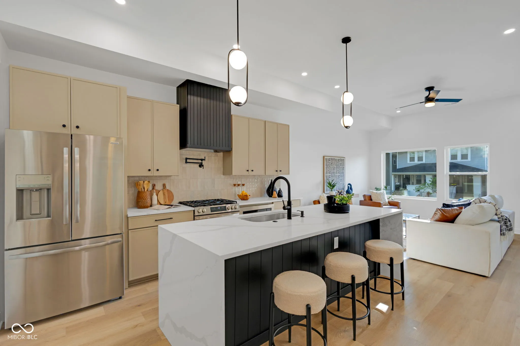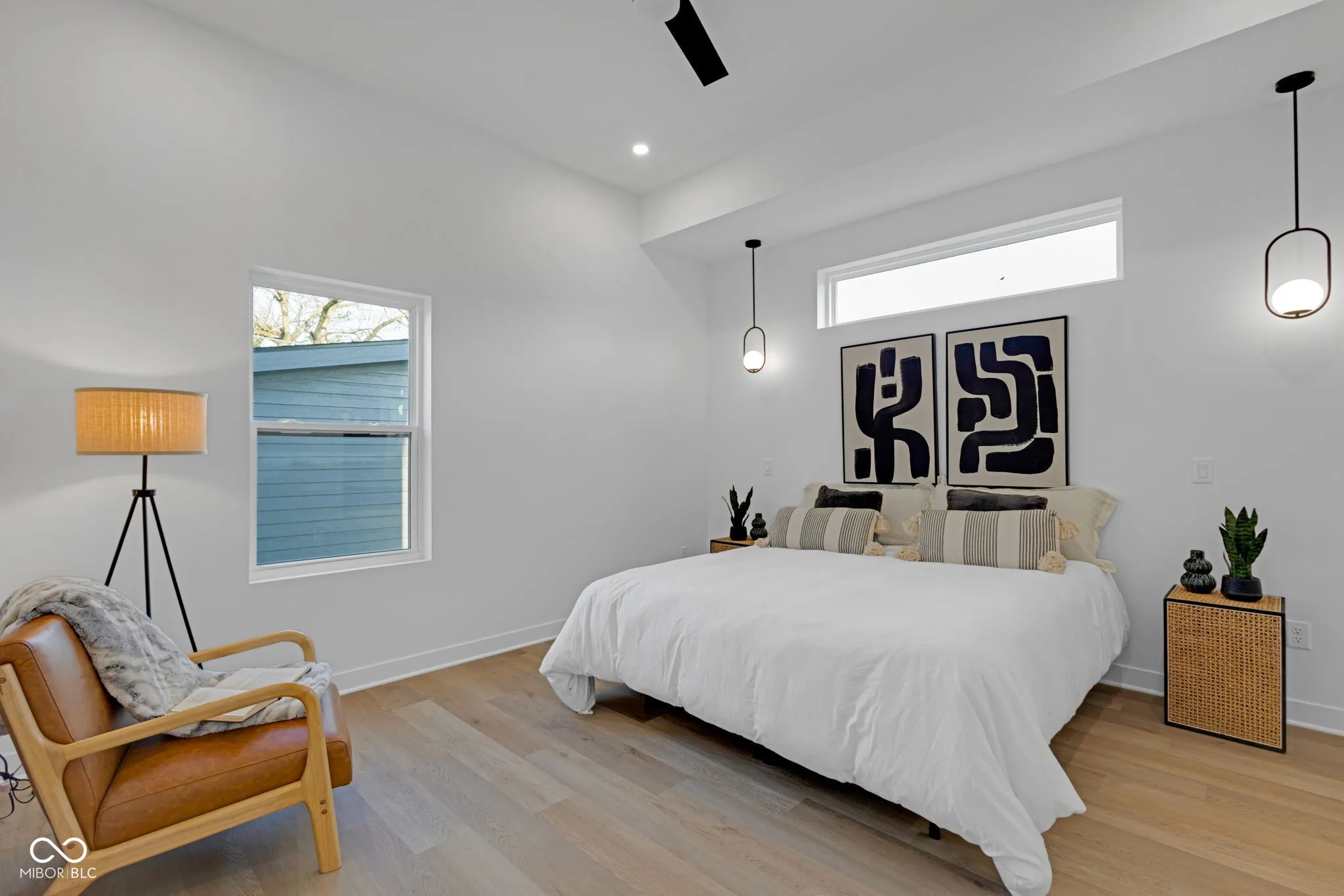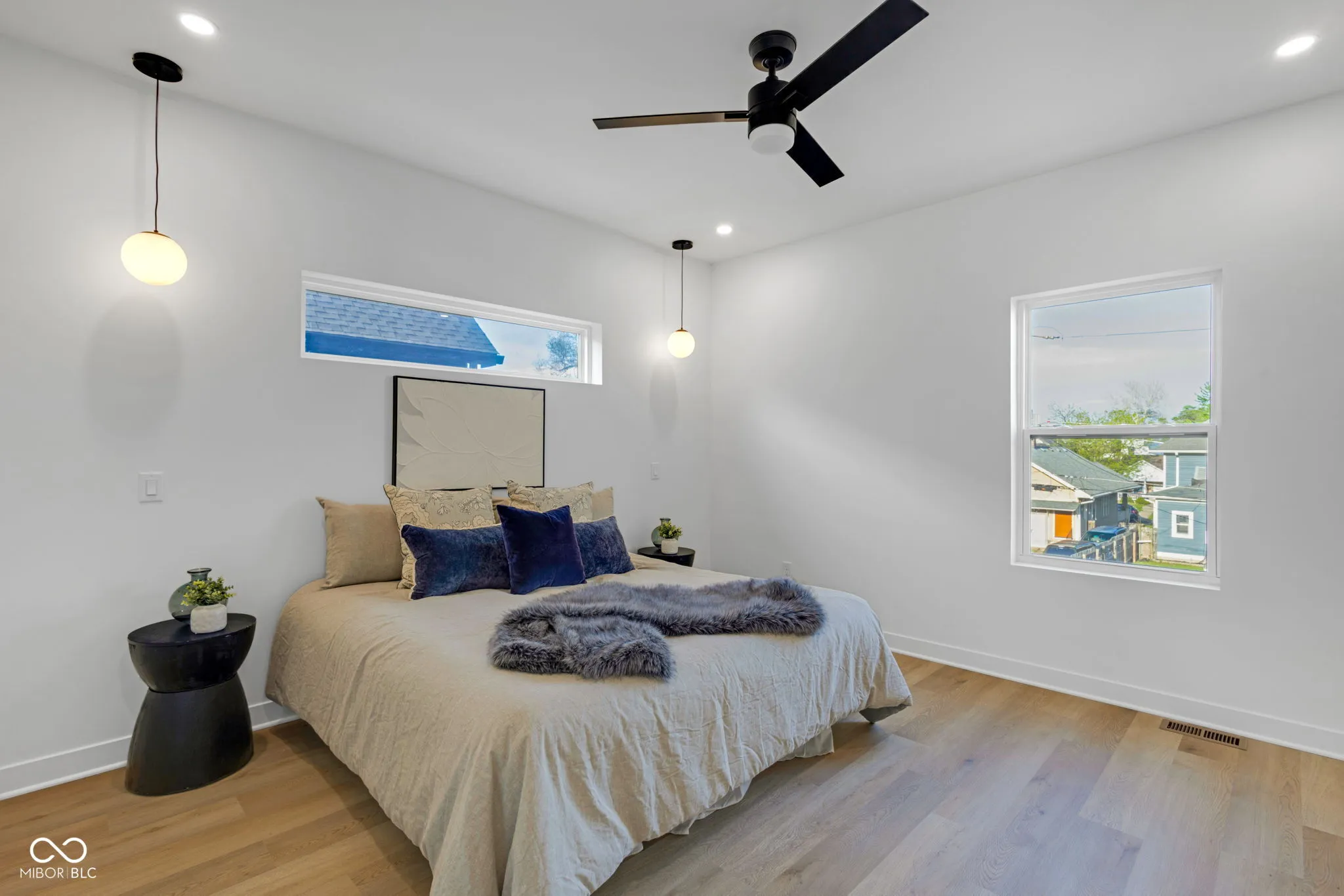 New construction 4BR/3.5BA in a high-growth pocket just minutes from Fountain Square, Downtown Indy, and Garfield Park. Modern exterior with clean lines, covered front porch, and upper balcony, offering strong curb appeal with a slightly more streamlined design. Inside, soaring ceilings, oversized black-framed windows, and luxury vinyl plank flooring create a bright, open feel throughout. The chef’s kitchen features custom cabinetry, quartz countertops, gas range with pot filler, statement hood vent, full-height tile backsplash, and a large center island perfect for entertaining. Main-level primary suite includes a custom-tiled shower, dual vanity, and walk-in closet. Upstairs offers a second primary suite, two additional bedrooms, full bath, and a versatile loft/flex space-ideal for a second living area, office, or media space. Fully fenced yard and 2-car detached garage with smart opener. Premium finishes, smart features, and energy efficiency all in one of Indy’s fastest-growing areas. Includes builder warranty for added peace of mind. Adjacent 1021 Churchman Ave also available, package opportunity for investors or multi-generational buyers.