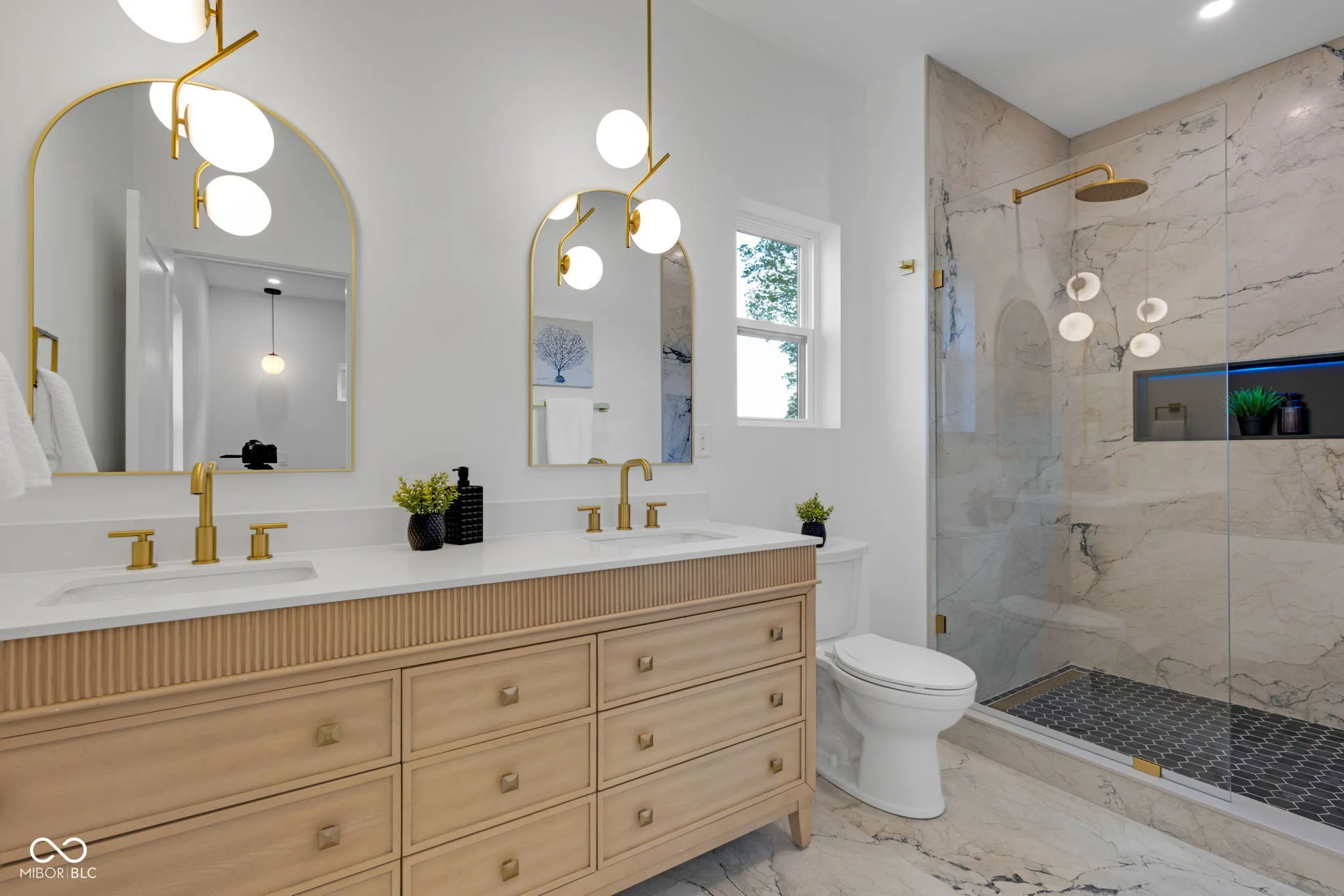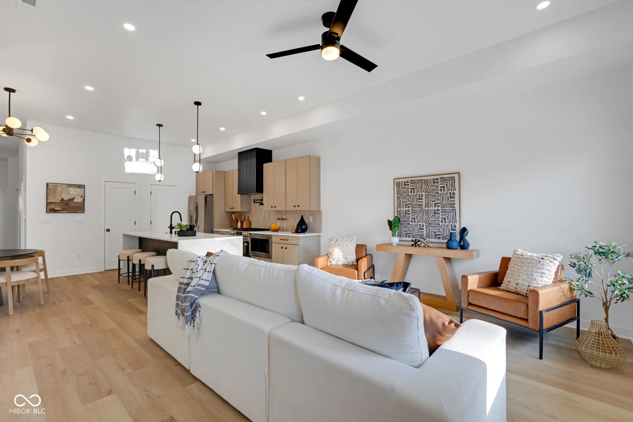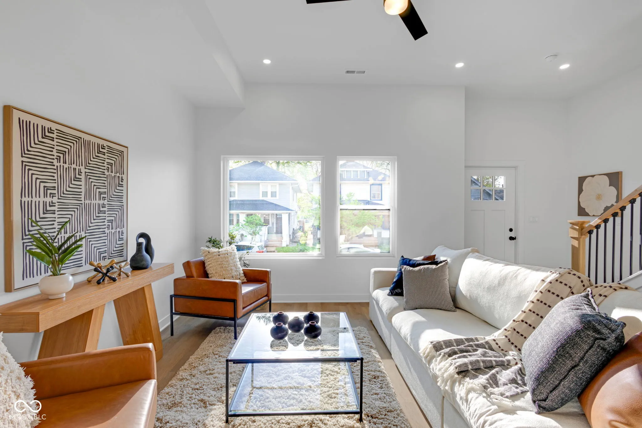 New construction 4BR/3.5BA in a high-growth pocket just minutes from Fountain Square, Downtown Indy, and Garfield Park. Modern exterior with clean lines, covered front porch, and upper balcony, offering strong curb appeal with a slightly more streamlined design. Inside, soaring ceilings, oversized black-framed windows, and luxury vinyl plank flooring create a bright, open feel throughout. The chef’s kitchen features custom cabinetry, quartz countertops, gas range with pot filler, statement hood vent, full-height tile backsplash, and a large center island perfect for entertaining. Main-level primary suite includes a custom-tiled shower, dual vanity, and walk-in closet. Upstairs offers a second primary suite, two additional bedrooms, full bath, and a versatile loft/flex space-ideal for a second living area, office, or media space. Fully fenced yard and 2-car detached garage with smart opener. Premium finishes, smart features, and energy efficiency all in one of Indy’s fastest-growing areas. Includes builder warranty for added peace of mind. Adjacent 1021 Churchman Ave also available, package opportunity for investors or multi-generational buyers.